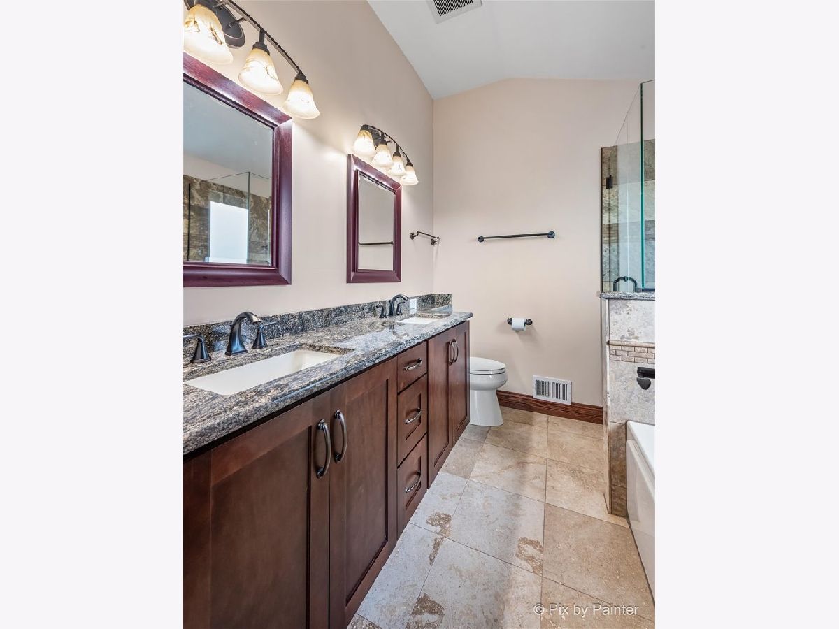 *** MULTIPLE OFFERS RECEIVED - Highest and best offers due by 5pm Sunday September 3rd *** Welcome to a stunning home in the highly sought-after Woodscreek subdivision. This property is turnkey with nothing to do but move in. An entertainer's dream with expansive areas both indoors and out. The home has been completely renovated by the original owners in 2013, showcasing high-end finishes and impeccable maintenance. The 2013 remodel brought everything new, including a new roof, vinyl siding, windows, and doors, and an Anderson patio door, new Furnace & AC system, and an efficient water heater installed in April 2023. Electrical and plumbing upgrades were made to meet current codes. Inside you'll find an open and airy floor plan, with the entry, dining area, powder room, and family room boasting exquisite 3/4" solid wood floors and upgraded 6" trim. The solid oak interior doors and recessed lighting add a touch of elegance throughout. The kitchen is a highlight, with custom solid birch and cherry wood cabinets featuring soft close doors and pull out drawers, spice cabinets, high end lazy susan, full pull out upper corner cabinet, Brazilian black slate floors, LED recessed lighting, granite countertops, and glass tile backsplash. The bar-height kitchen island and smart cabinetry enhance both style and functionality. Quality appliances, including a Samsung Door-in-Door Refrigerator (2021), Kenmore Elite convection stove (2015), and brand new microwave (Aug 2023) complete the package. Recent upgrades include new carpeting throughout with upgraded padding (August 2023) and fresh interior paint (August 2023). Upstairs, find 3 spacious bedrooms with custom closets. The bathrooms offer luxury and convenience with upgrades. The master bathroom features a glass shower surround, granite countertops, travertine tile floor and shower, all sealed. The spacious laundry room is conveniently located on the main level and features a new vanity, new cabinets (April 2023), porcelain tile floors, fresh paint, and washer and dryer (2019). As you enter the basement through a smart design solid wood pocket door, you'll notice tall ceilings, new carpeting, Brazilian black slate smooth cut floors, fresh paint (2022), upgraded blinds, LED lighting, and utility enhancements, making it a perfect place for additional living space, movie nights with full home theater, workout area, and free-standing dry bar for entertainment. It accommodates the high efficiency furnace (2013), central humidifier, hot water heater (April 2023), sump pump (2022), ejector (2020), relocated mechanicals and vents for future bath plans. All granite counters and slate floors have been polished and sealed. Other features include recessed zoned lighting for energy efficiency throughout with dimmable smart switches and all new wiring 2013. All bathrooms feature new high level toilets. The squeaky clean garage offers more storage space and was recently painted in August 2023. Outside, a paver patio, shed (2021), huge 16'x32' deck, screen gazebo with hot tub and Lexan plexiglass inserts for colder months for year round use, fenced yard surrounded by 30 arborvitae flanked by 2 river birch trees, offer great privacy and entertainment spaces. The deck, built in 1999, has fresh railings (2020) and a new floor (July 2023). A Sundance Spas hot tub (2015) with a new circulation pump replaced in June 2023 and versatile gazebo complete the outdoor oasis. This home is more than a place to live - it's an entertainer's dream and a lifestyle upgrade waiting for you. Ideal location! Walking distance to Woods Creek Elementary School, Ken Bird Park, and Woodscreek Park, featuring playground, basketball and tennis courts, SPLASH PAD, large picnic shelter, walk and bike paths, fishing, and walking distance to the highly rated Woods Creek Elementary school. Close to the Randall Road shopping corridor, lively charming downtown area, schools, 3 BEACHES, shopping, dining, Metra TRAIN, and I-90.