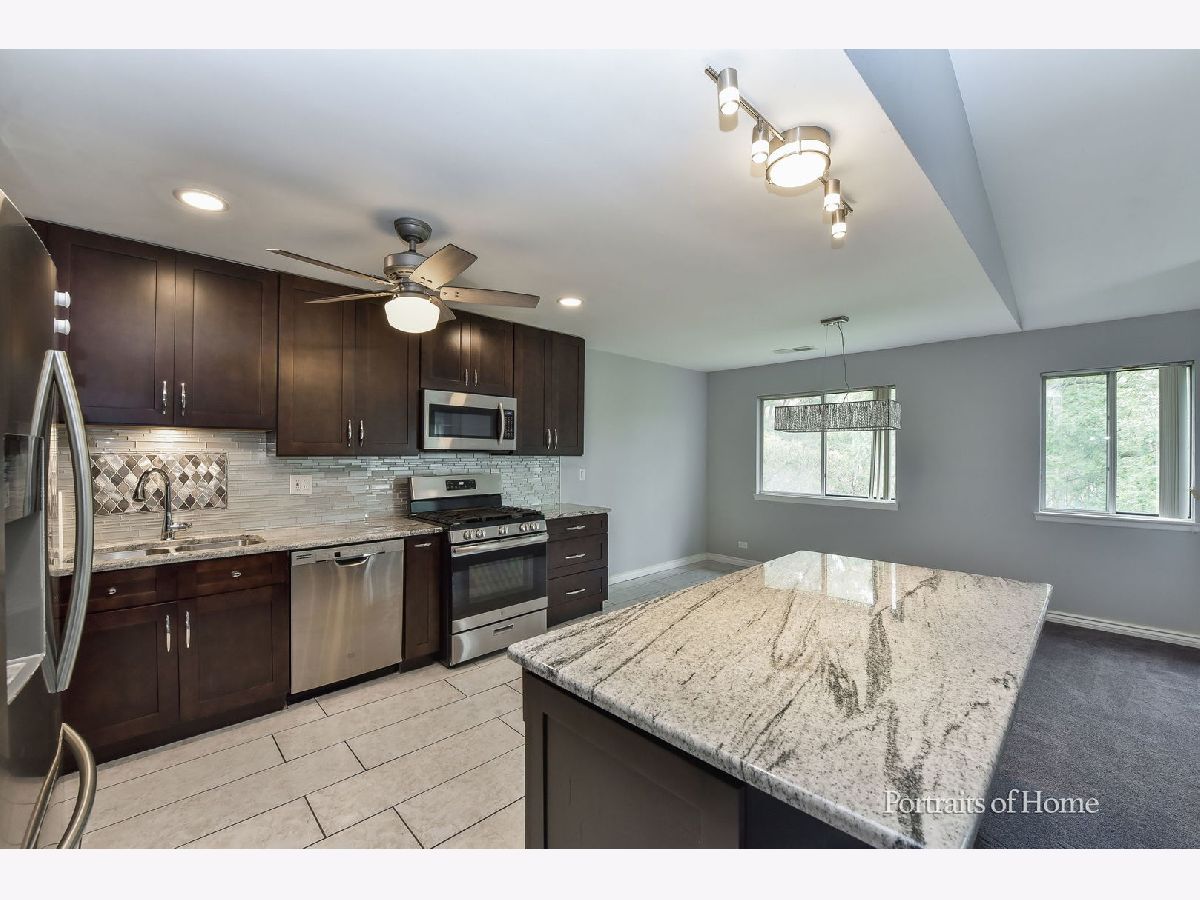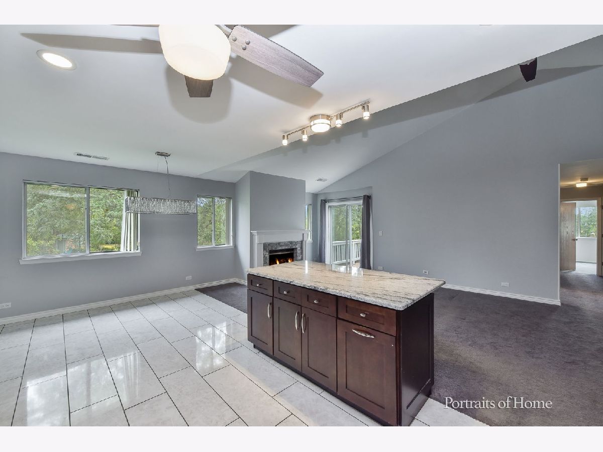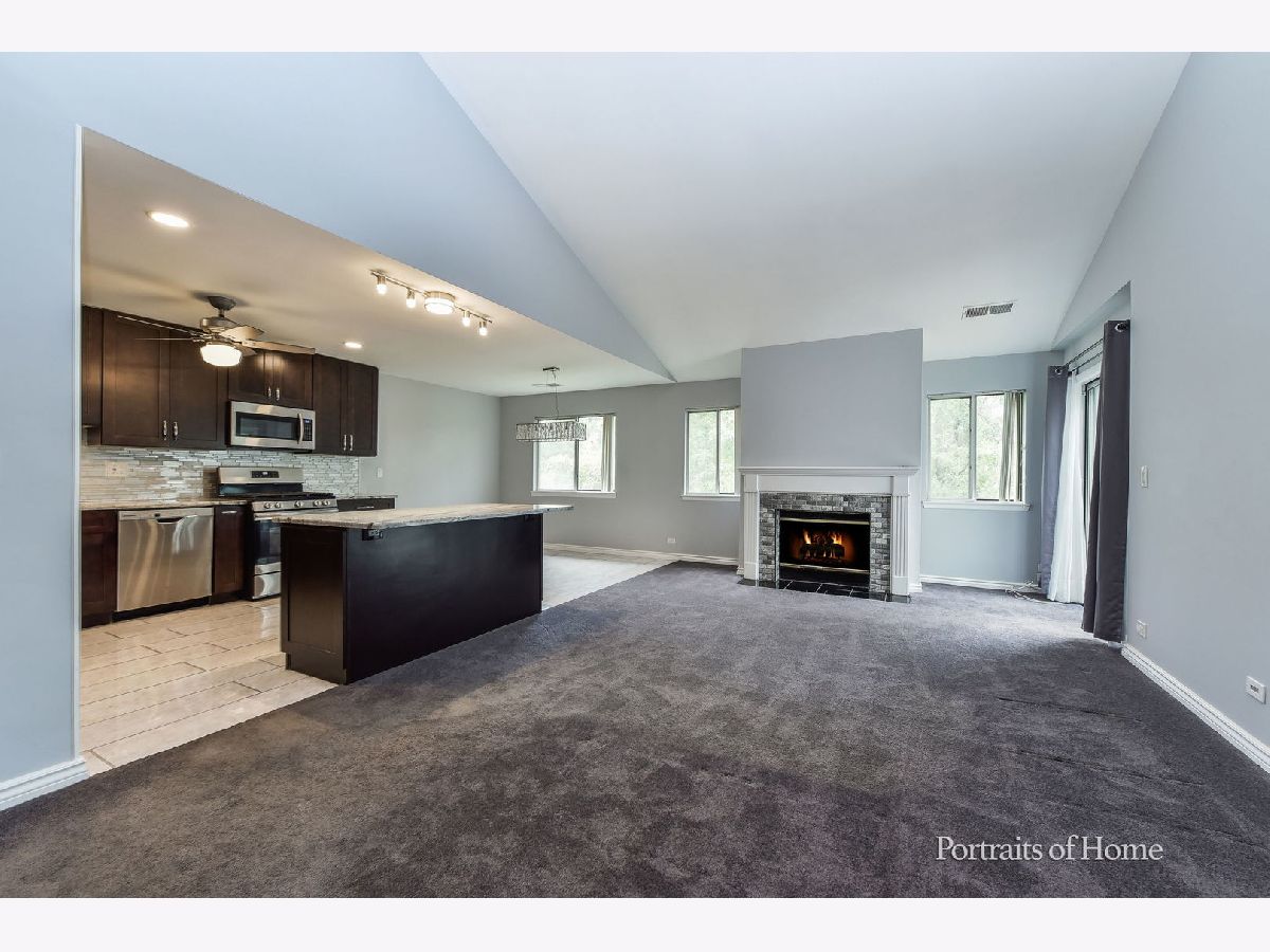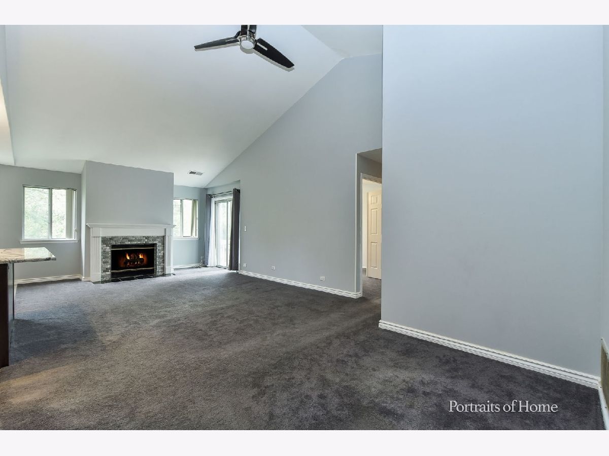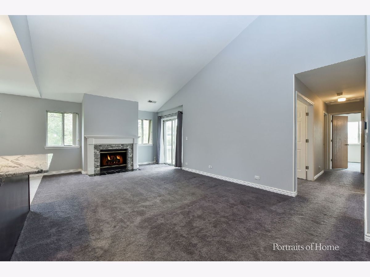Rarely available 2 bedroom with den in private location in Wheaton. You will love the open concept living area with vaulted ceilings and newly remodeled kitchen in this large 1,436 sf unit. Kitchen has an island counter breakfast bar, granite countertops and stainless steel appliances. Gas starter fireplace in living room. French doors to den which can also be used as a 3rd bedroom. Large walk-in closet in primary bedroom. Dressing area off of primary bath and bedroom. Large balcony off of living room. Freshly painted and newer carpet throughout. Separate laundry room in unit. Plenty of storage in this large unit. One car garage with driveway parking.