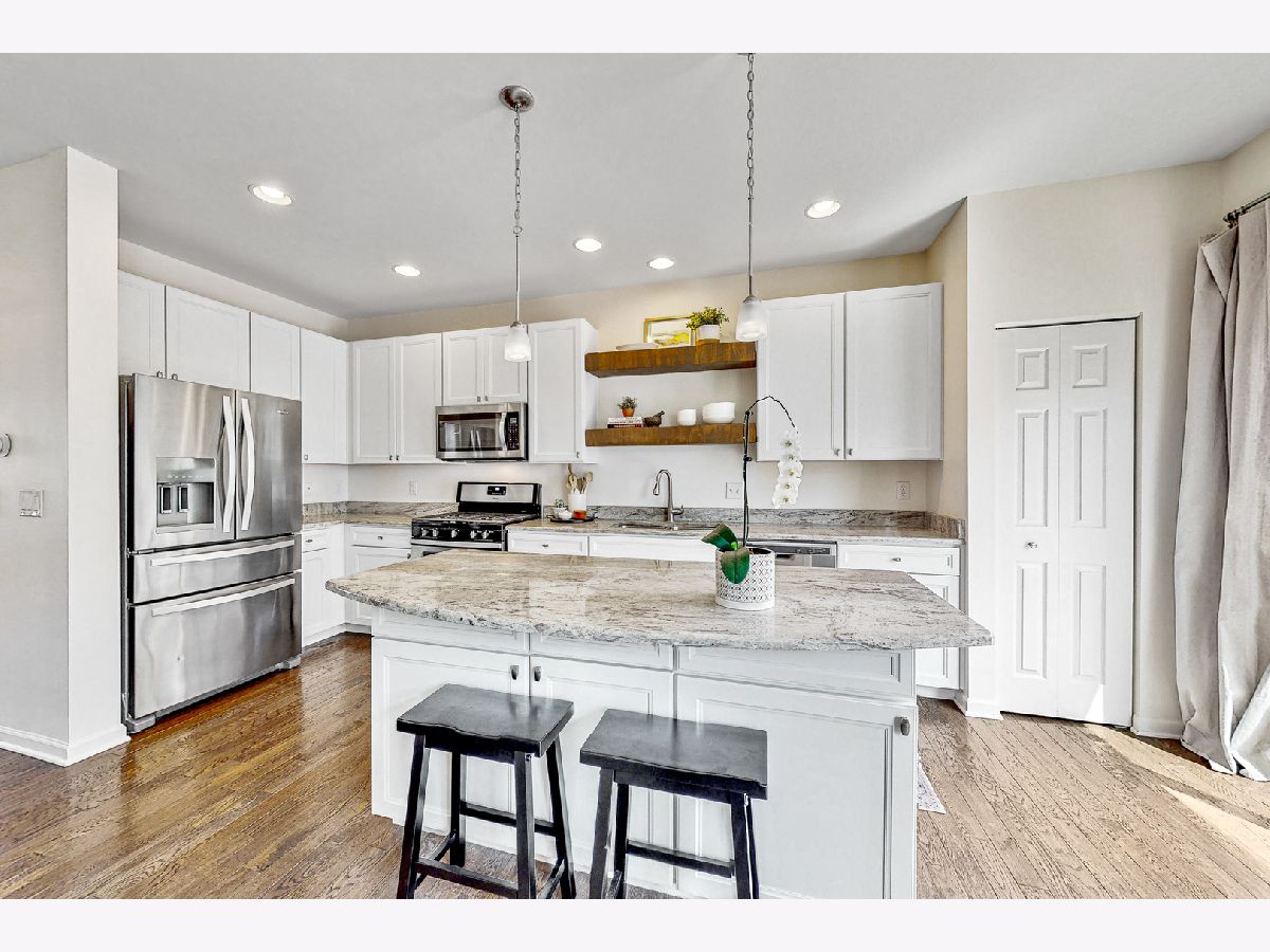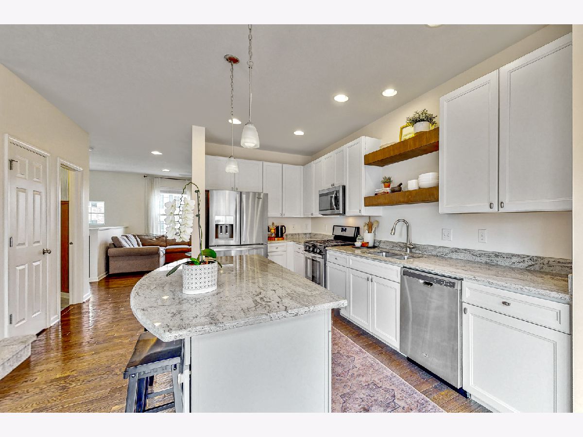 Dont miss this Stunning custom built townhome with beautiful hickory hardwood floors. Enter into the main floor and enjoy all the natural light. The large kitchen features a pantry, breakfast bar and dine in space. The Kitchen opens to family room and is perfect for entertaining. Upstairs features 2 guest bedrooms, a full guest bath and a large primary suite with walk in closet. Lower level has a bonus room/den, laundry room and storage. Subdivision has beautiful pond for walking and biking. Electric car charging station in garage!