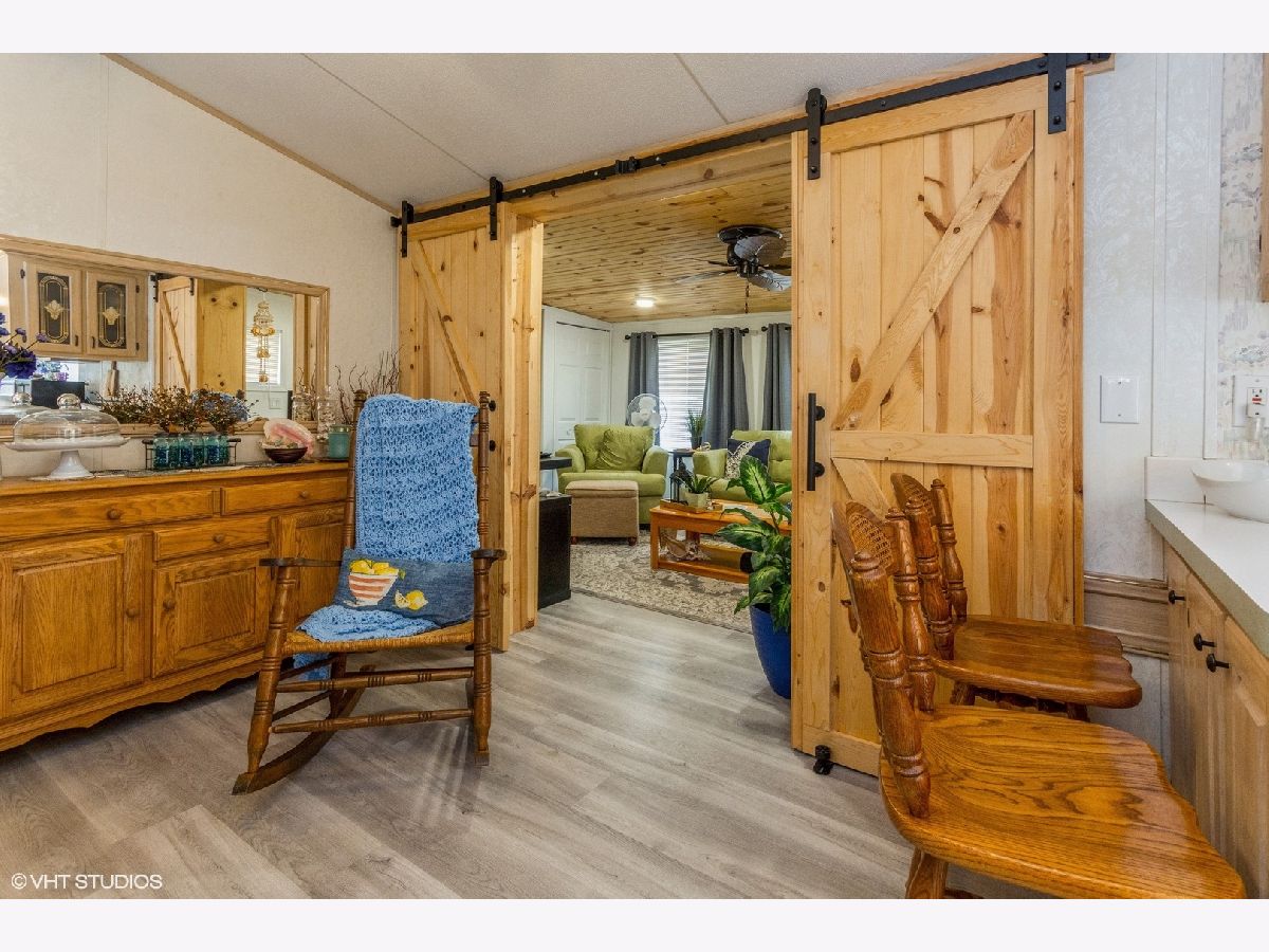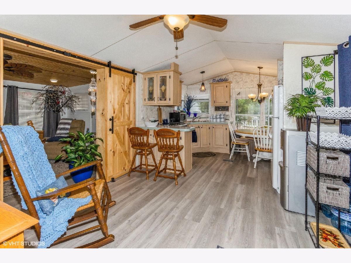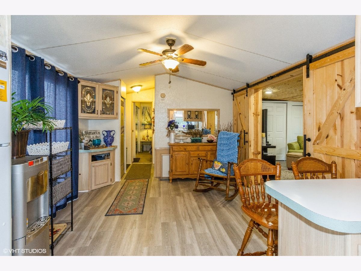 WELL cared for park model with addition. This 1 bedroom, 1 bath home, with addition, is ready for a new owner. It has been wonderfully taken care of. The addition (2018) was tastefully done, opened up through custom made barn doors, with plenty of windows, cathedral ceilings, updated lighting, vinyl flooring, and two storage closets. Kitchen is open with breakfast nook area and seating has storage benches. Bathroom was updated recently and oh so cute. Same upgraded vinyl flooring throughout living areas (except bedroom is carpeted). Updated lighting as well. Yard is about 90% fenced with large outdoor barn style shed (on concrete pad). Front yard is easy maintence, with fire pit area for enjoying those summer nights. Items to stay with the home: Sofa sleeper with matching chair, living room table, kitchen table and benches, barstools and golf cart. Oven does not work. Water heater 2018. This is a private gated community. We have miles of fresh water channels, lakes, and marshes all interconnecting. This is the place to fish, swim, or boat, where it can reach 42 feet deep in some areas. (BIG FISH POSSIBILITIES!) Wildlife is abundant as well. This association includes a club house, community pool, a separate sand beach, pavilion, dog park, volleyball and basketball area (other games as well). They offer plenty of family and group activities. Other important notes: Close to I55 & only 60 Mins. from Chicago. Only Electric Boats & Golf Carts allowed. Association Dues are on a tiered basis and depend on the time you spend at the property- . Dues include water, sewer and garbage. Buyer / Buyer's agent to call Shadow Lakes to verify all rules / info. HOA dues vary and depend on your stay at the property.