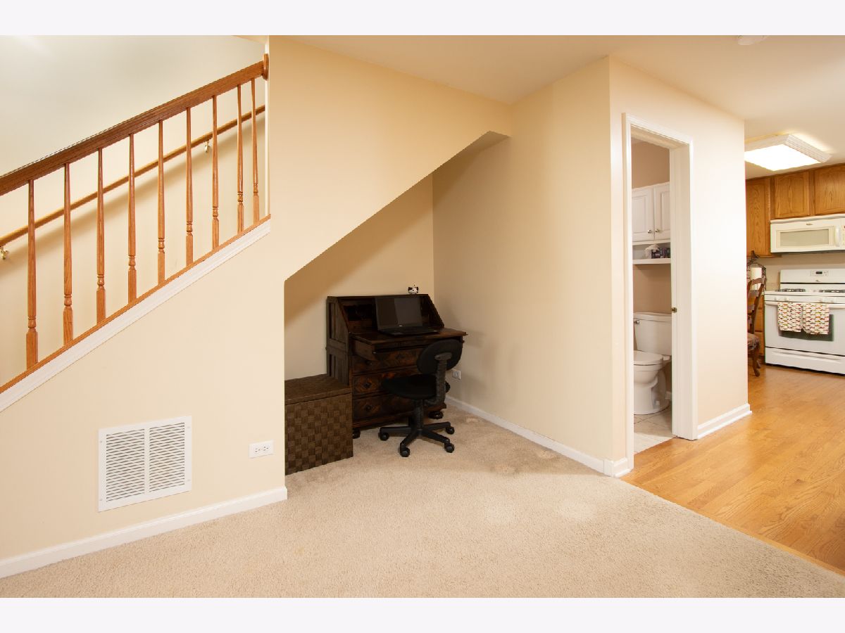 A beautiful well-maintained three-level townhome boasts ample space for living, relaxing and entertaining. The main level offers a living room, dining room, 1/2 bath, under-the-stairs space for storage or desk, a kitchen with 42" cabinets with an eating area, and an ample-sized pantry closet. The kitchen and eating area feature hardwood flooring as well as upgraded oak railings at the time of construction. The second floor includes two generously sized bedrooms, a loft, and laundry. The primary bedroom is complete with a private bathroom. The additional loft space offers versatility, whether utilized as a home office, entertainment area, or a peaceful retreat. The lower level boasts a convenient flex room, providing endless possibilities for use as a home gym, office, or game room. Accessible from the lower level is a two-car garage. The townhome is set back from the road, on a wide stretch of lawn area which is fairly unique for Cambridge Lakes. Being sold by the original owners, this home has been lovingly cared for.