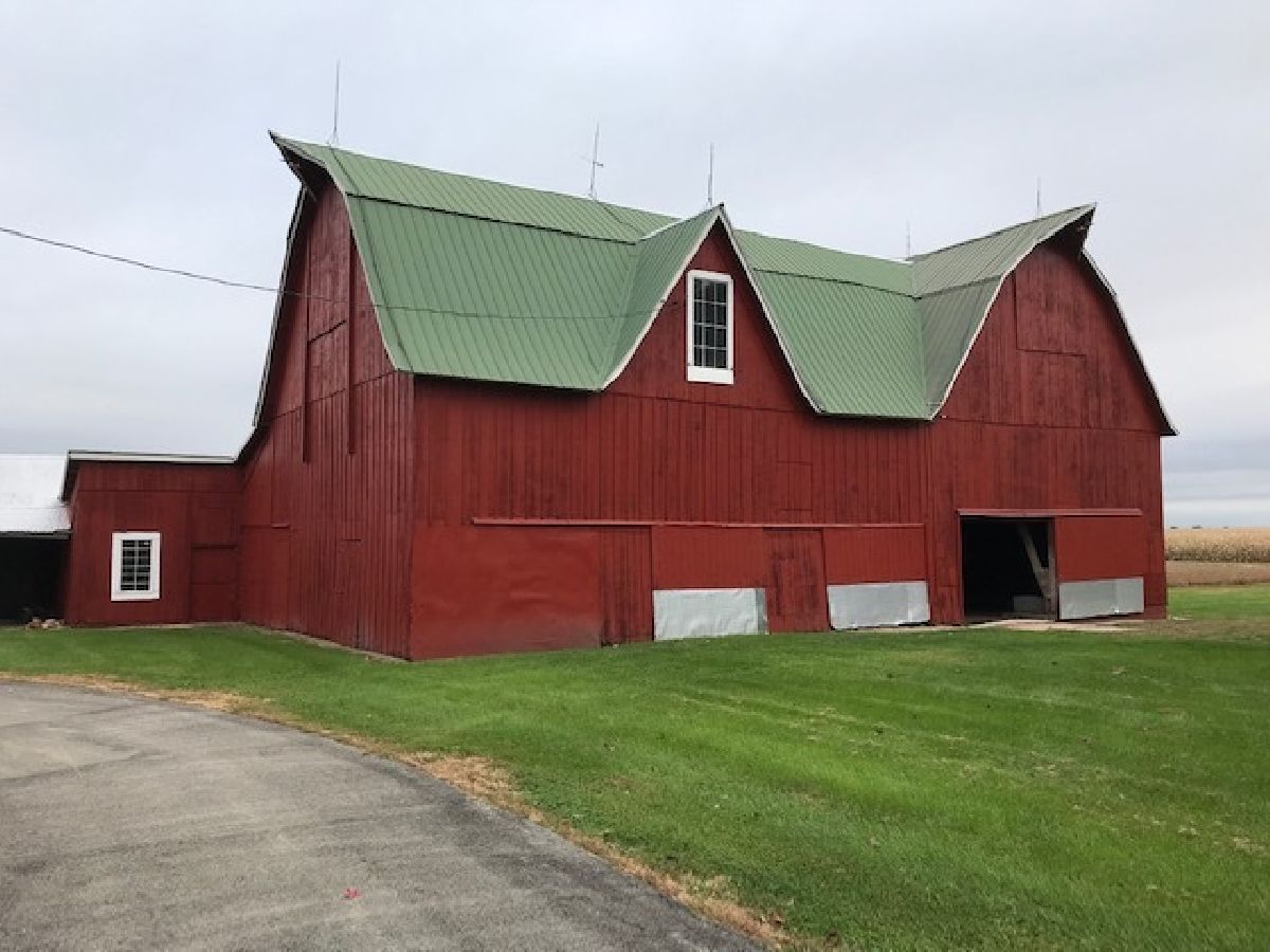 Well kept brick 2 story home with 4 bedrooms, 2 baths, wood deck, full basement, central air, updated windows & roof. Large detached 2 vehicle garage with furnace and electrical service, 40'X54' Pole building, frame barn with metal roof, 3 grain bins. 10 acres of land surrounding the farm site, perfect for horses or animals.