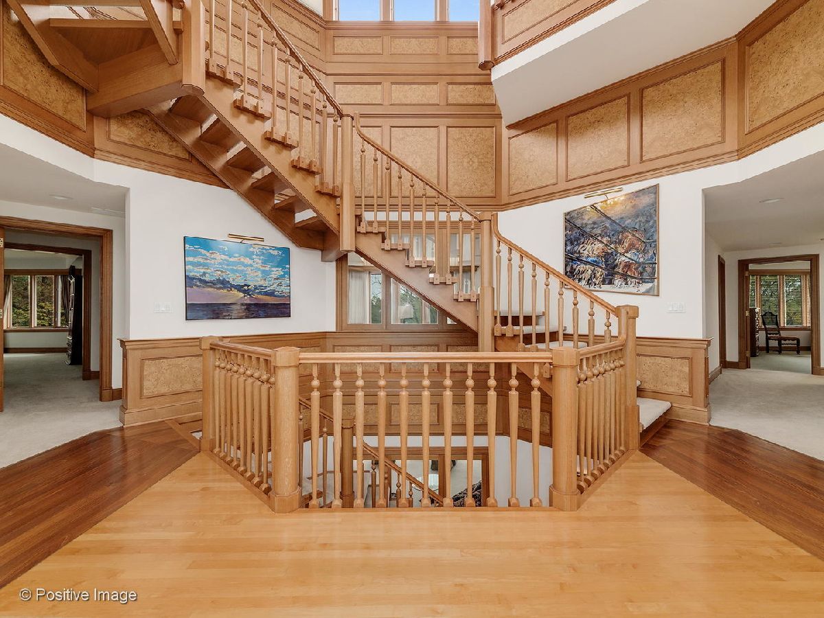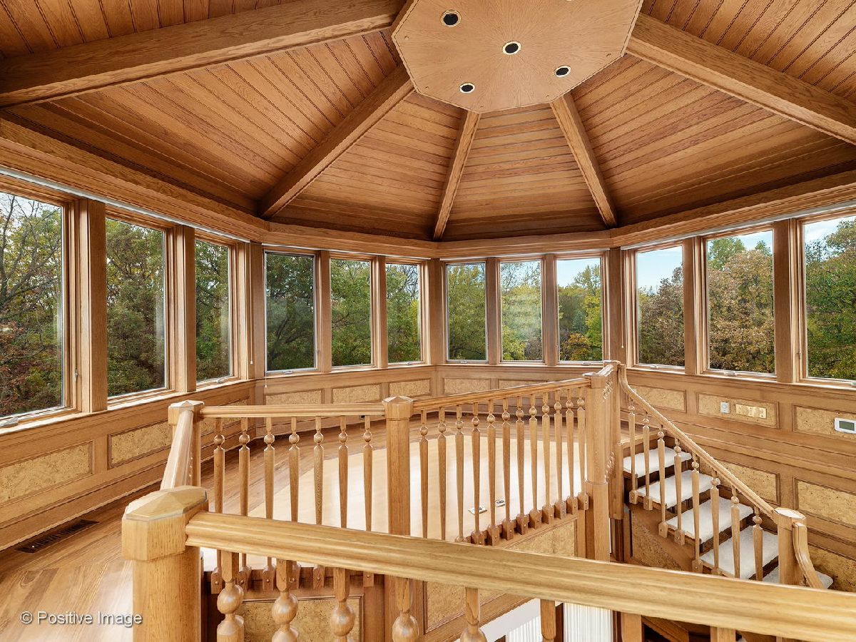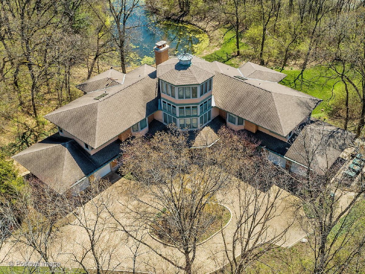 Spectacular setting of almost 2.5 acres for this one of a kind custom home. Feeling like a Frank Lloyd Wright country retreat this custom three story has the most incredibly beautiful woodwork and detail. Over 3 years of construction to achieve the quality that went into this home. Fabulous Chichipate Brazilian & maple flooring, burled wood wainscoting, woodwork and crown molding throughout. Four levels of luxurious living, 7 bedrooms, 5 full & 2 half baths and 8000+ square foot residence plus walkout lower level with elevator to all levels. Breathtaking entry with open stair tower to 4 levels with rich balusters, pretty wainscoting, and sunlight streaming in from every level. This house is perfect for entertaining and enjoying life. The floor plan features very spacious formal rooms, dream kitchen with generous cabinetry, large island. top appliances. Versatile floor plan includes first floor bedroom suite, beautiful large office/library with beautiful custom cabinetry, live-in guest suite complete with kitchen and sitting room. Luxury master suite includes fireplace, deluxe bath with spa shower tower, sauna, walk-in closet with cabinetry. Third floor solarium makes you feel like you are in a treehouse with the fantastic views of the pond, the towering trees, the gorgeous grounds. The lower level pub room is warm and inviting with detailed bar and fireplace. Recreation room, playroom, game room all walk out to patio and yard. This home cannot be captured by words or pictures. It is a MUST SEE property.