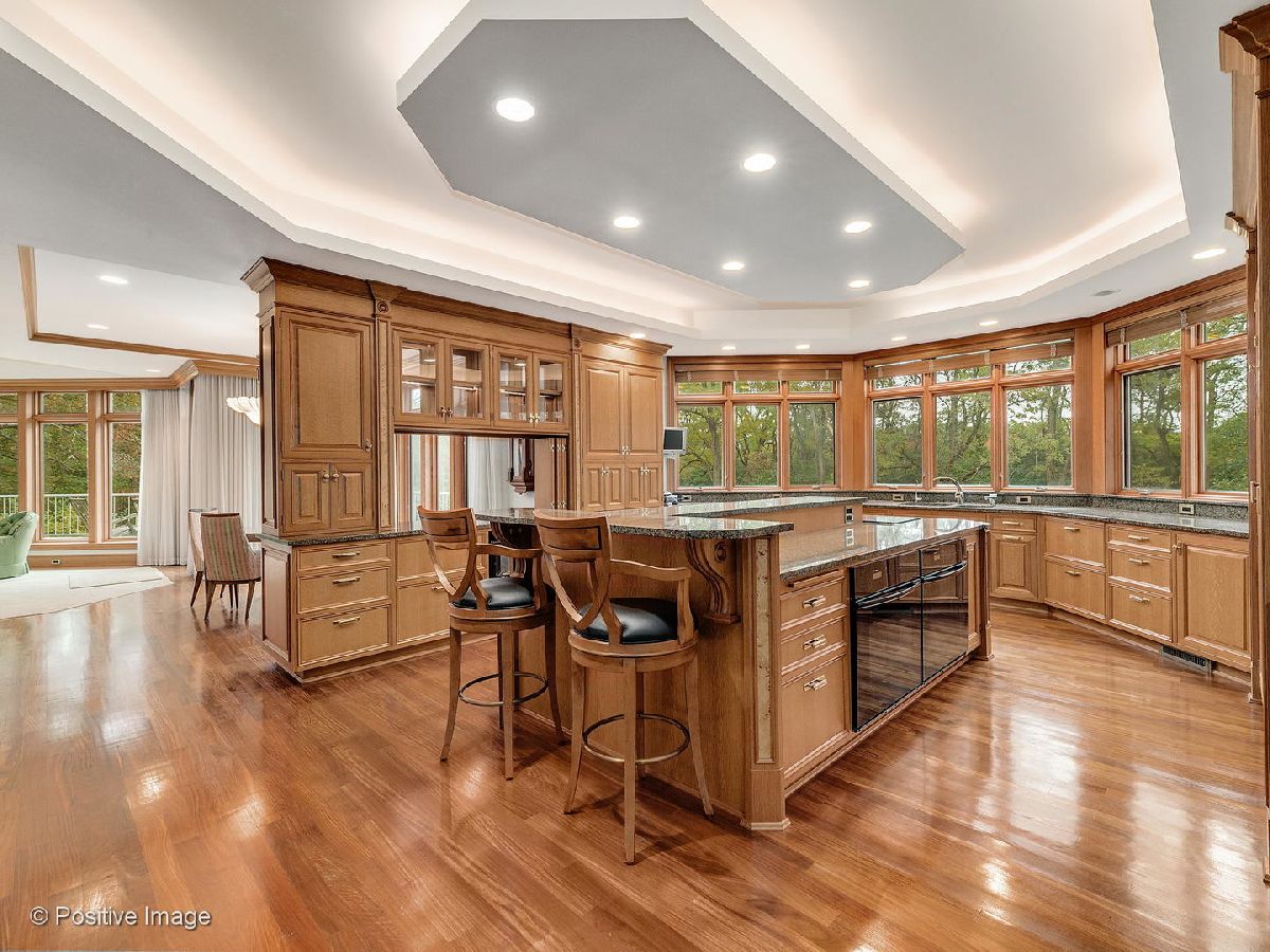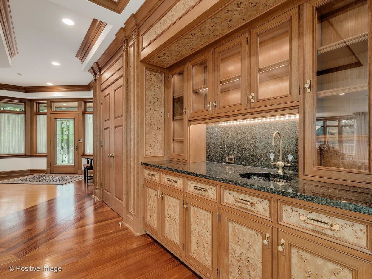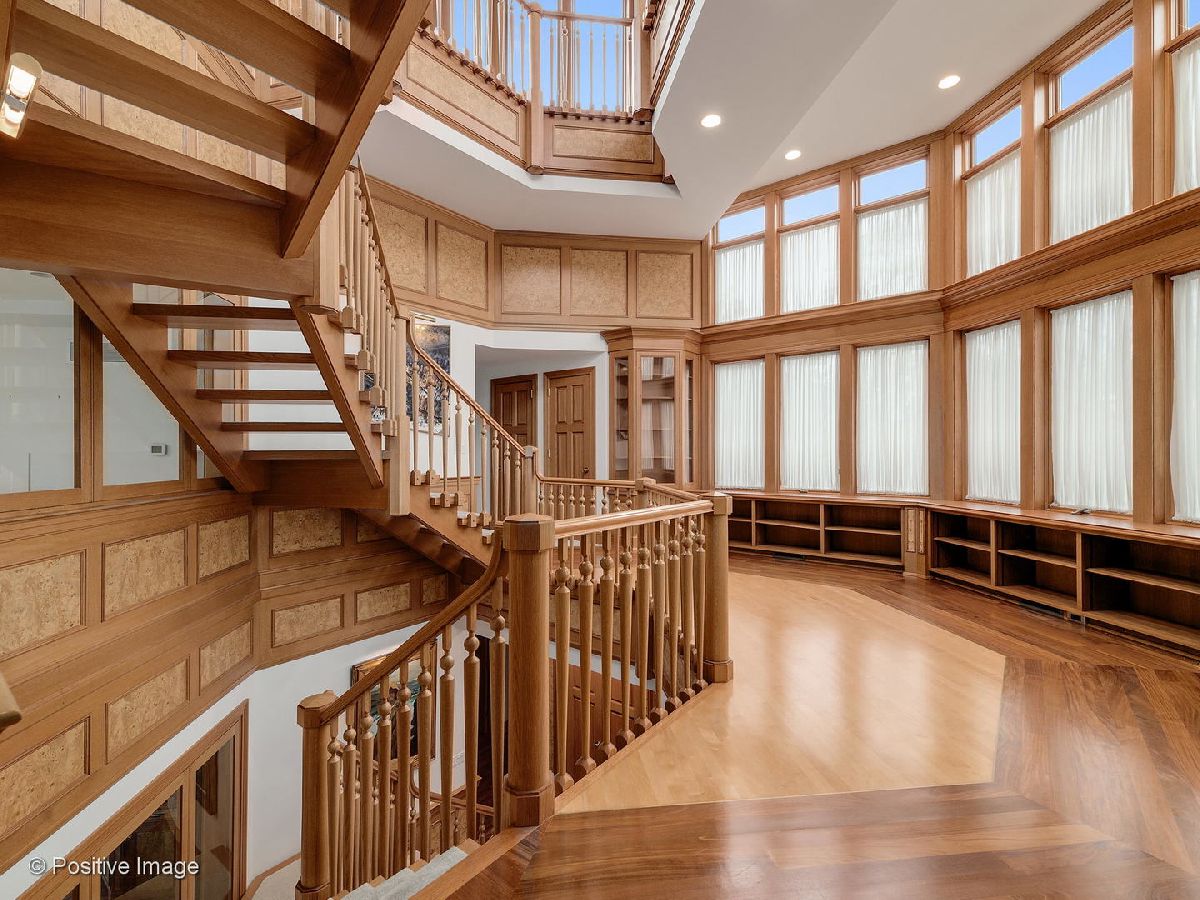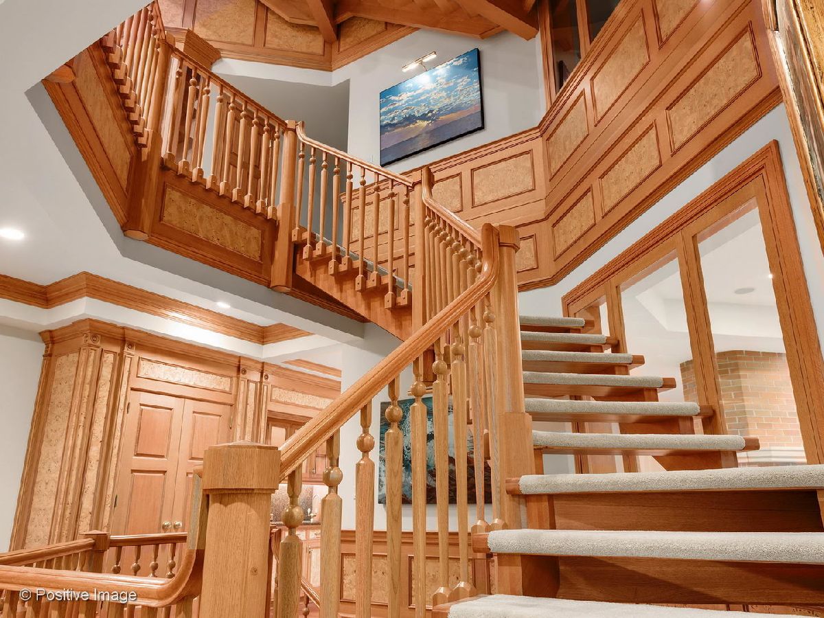 Spectacular setting of almost 2.5 acres for this one of a kind custom home. Feeling like a Frank Lloyd Wright country retreat this custom three story has the most incredibly beautiful woodwork and detail. Over 3 years of construction to achieve the quality that went into this home. Fabulous Chichipate Brazilian & maple flooring, burled wood wainscoting, woodwork and crown molding throughout. Four levels of luxurious living, 7 bedrooms, 5 full & 2 half baths and 8000+ square foot residence plus walkout lower level with elevator to all levels. Breathtaking entry with open stair tower to 4 levels with rich balusters, pretty wainscoting, and sunlight streaming in from every level. This house is perfect for entertaining and enjoying life. The floor plan features very spacious formal rooms, dream kitchen with generous cabinetry, large island. top appliances. Versatile floor plan includes first floor bedroom suite, beautiful large office/library with beautiful custom cabinetry, live-in guest suite complete with kitchen and sitting room. Luxury master suite includes fireplace, deluxe bath with spa shower tower, sauna, walk-in closet with cabinetry. Third floor solarium makes you feel like you are in a treehouse with the fantastic views of the pond, the towering trees, the gorgeous grounds. The lower level pub room is warm and inviting with detailed bar and fireplace. Recreation room, playroom, game room all walk out to patio and yard. This home cannot be captured by words or pictures. It is a MUST SEE property.