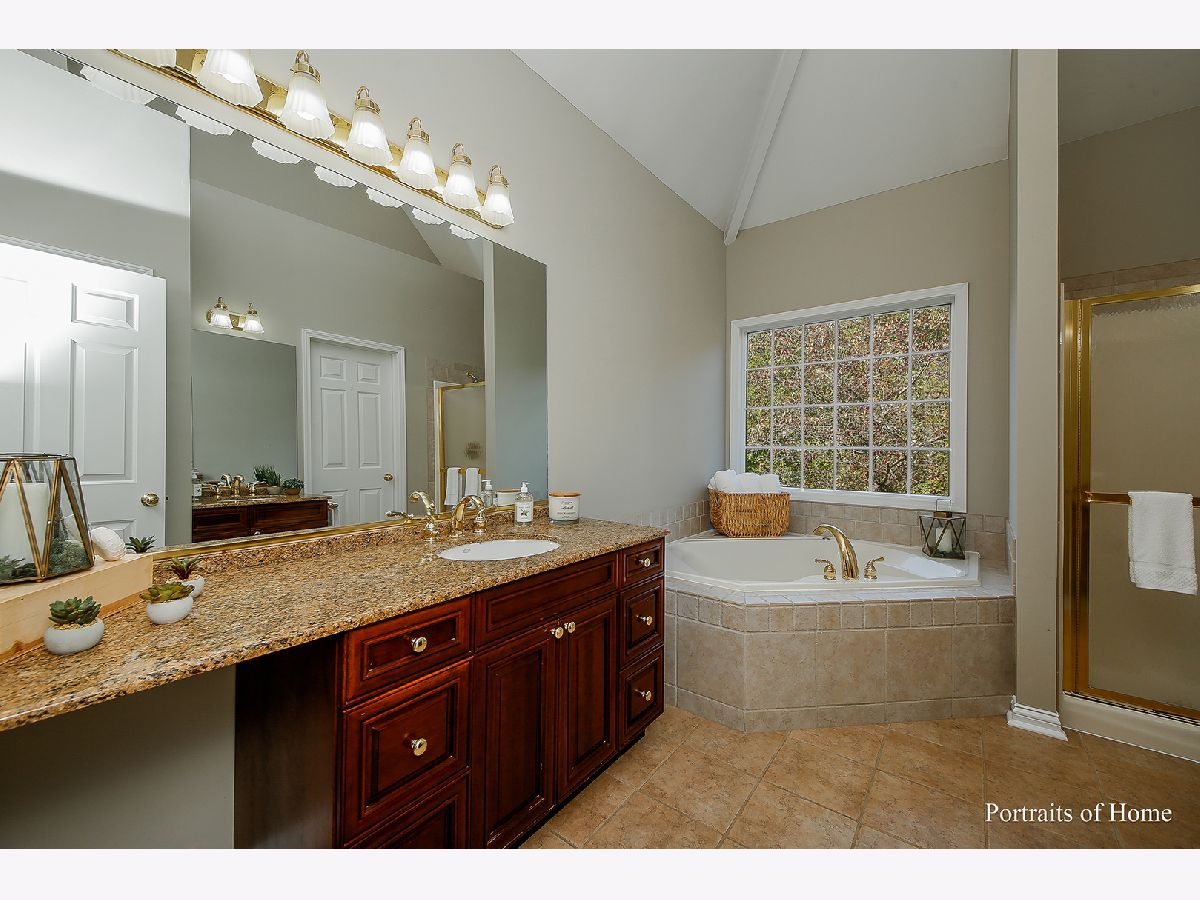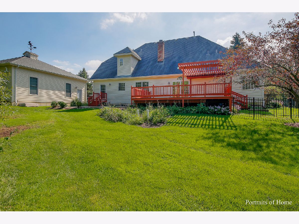 WARMTH & STYLE at this custom home on over an acre in lush Blackberry Creek subdivision. Beautifully built and expertly appointed, it features an easy-to-live first floor complete with home office/den, eat-in custom kitchen, family room, formal dining room, master suite, and laundry. Coveted 1st floor master with volume ceiling and large ensuite private spa bath. Sleek millwork in formal dining room and office flank a welcoming 2-story foyer. Exquisite family room double-sided fireplace with a hearth that wraps to warm the open-concept, fully renovated eat-in chef's kitchen w/granite countertops and SS appliances. (3) Three generously-sized bedrooms on 2nd level with ample closet space and a large hall bath with conveniently separate dual sinks and vanity area. Home boasts custom built-ins, as well as brand NEW lighting, carpet, and fresh, on-trend paint throughout. Enjoy your outdoor oasis from the sprawling deck w/pergola overlooking an enchanting yard. Stamped concrete patio and walkway. Fenced dog run. Pella windows and plantation shutters showcasing all the natural wonders of Blackberry Creek. All NEWER mechanicals! Newly constructed 900 sq. ft. detached garage (in addition to existing 2-car attached) with luxe radiant heated floors and tall ceiling accommodating a vehicle lift. Huge, unfinished basement awaiting your vision includes a bonus hobby room with extra storage. Immaculate home and property!