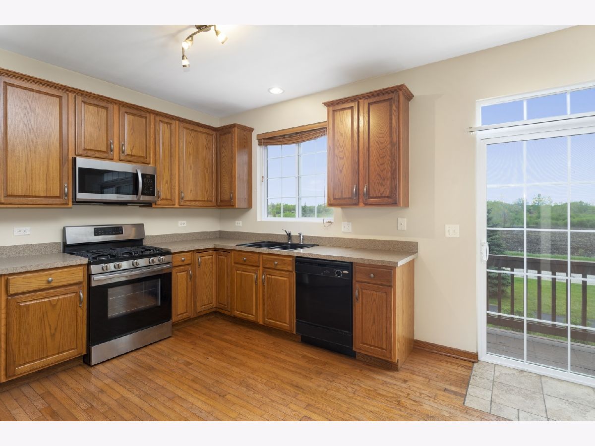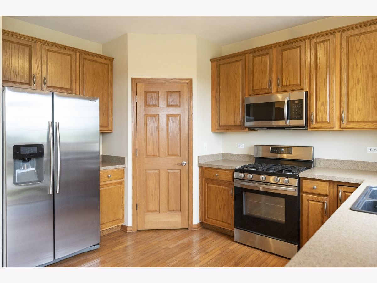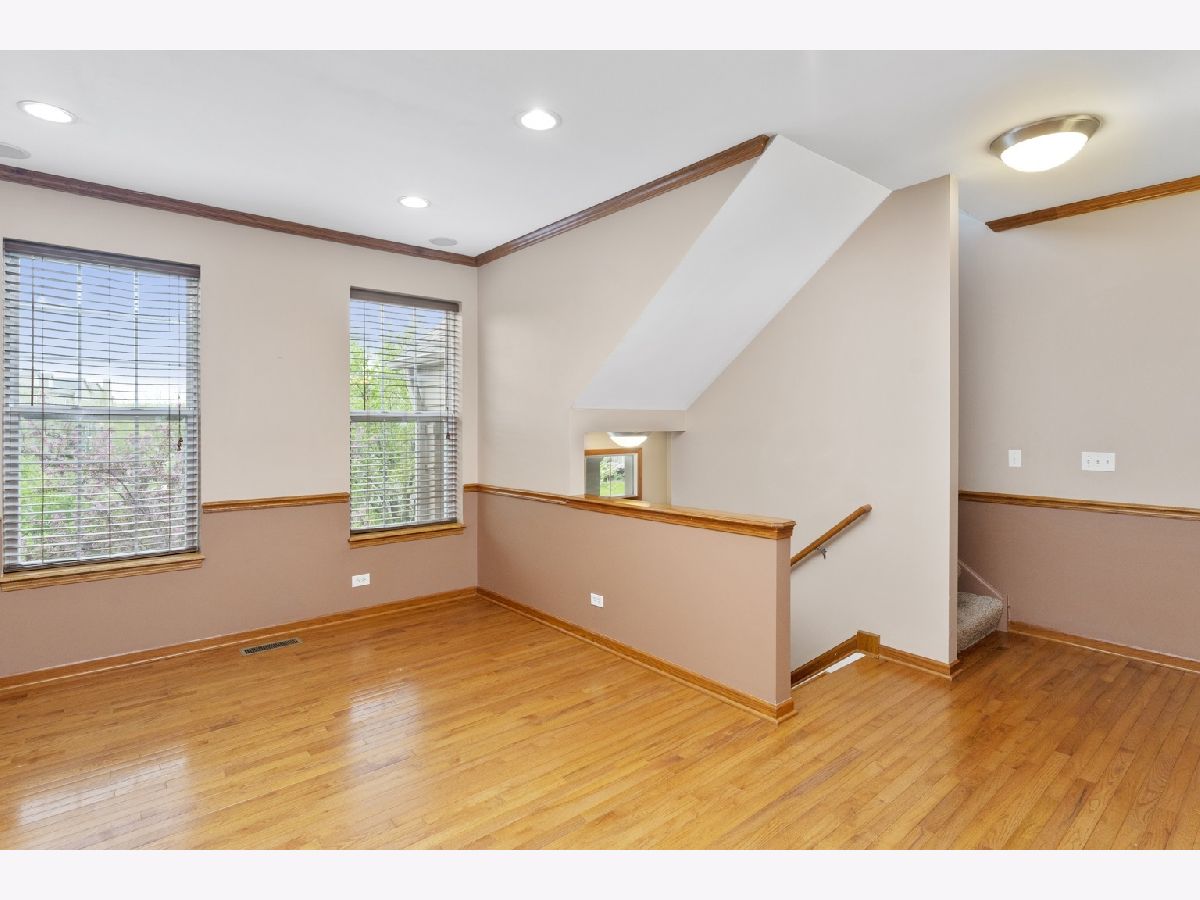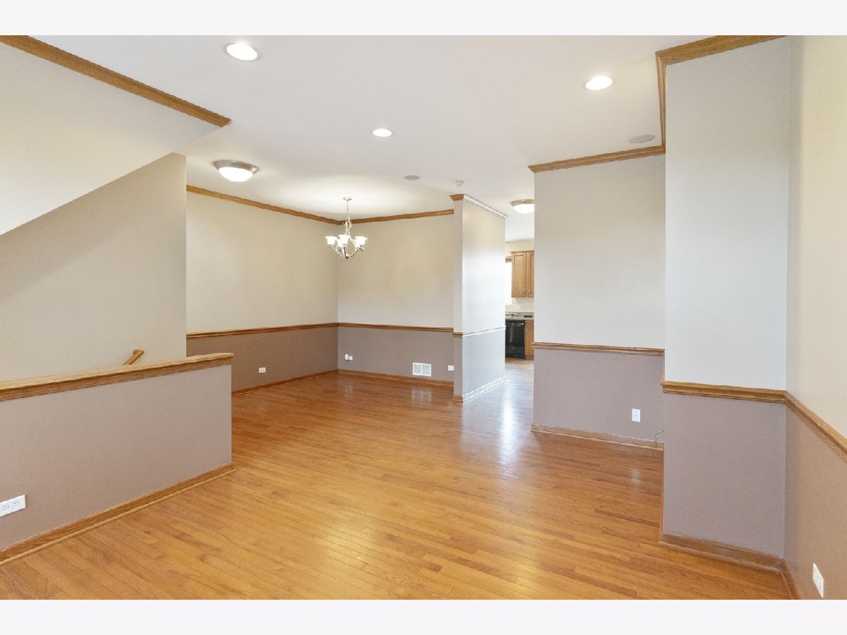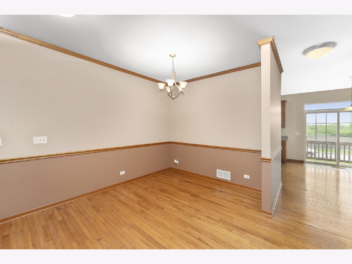 Stunning! Sought-after move-in ready 2 bedroom 2.1 bath is available immediately in Village Station Subdivision! Walk to the Metra!!! Lower level has 2 car garage, family room (could be 3rd bedroom), Main level features hardwood throughout, formal dining room, living room, eat in kitchen with pantry and office cabinetry. Off of the eat in kitchen is a balcony overlooking walking trail, farm field and Metra! Upstairs has HUGE primary bedroom with walk in closet and full bath. 2nd full bath and guest room. Also 2nd floor laundry! This unit truly has it all! Don't wait! Won't last long!