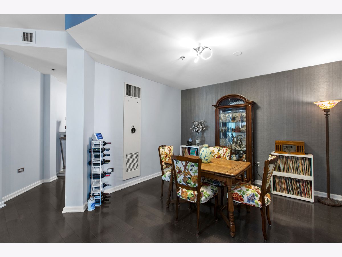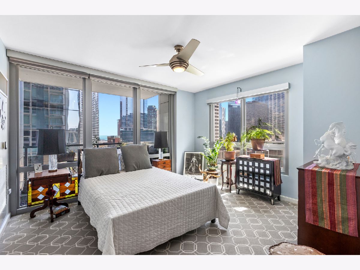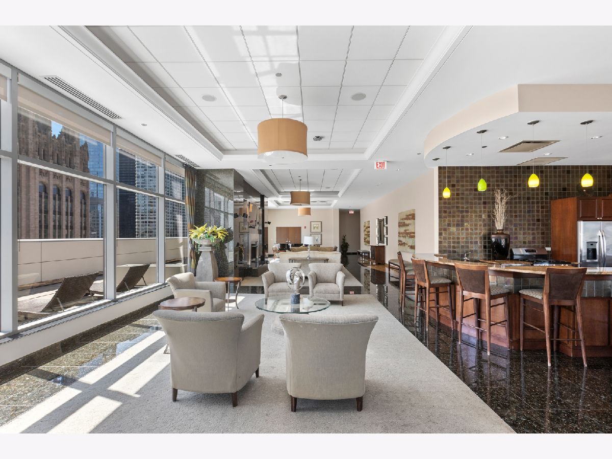 *THIS PROPERTY HAS A VA LOAN OF 536k THAT IS ASSUMABLE AT 2.875%, BUYER DOES NOT NEED TO BE A VETERAN TO ASSUME THIS LOAN! Highly desired South and East corner unit in Streeterville with great city and lake views! This 2 bedroom + den and 2.1 bath condo also has a formal dining room, private balcony and premier garage parking included! The floorplan is open and very versatile with distinct rooms for living, dining and a den/office which can be used interchangeably to accommodate your lifestyle! The generous foyer gives plenty space for artwork and has a large coat closet. The kitchen is the center of the floorplan and is open to the living room, dining room and the den! The kitchen has a new tile backsplash, new Samsung Bespoke fridge with frosted glass, granite counters, stainless appliances, and a large breakfast bar. The dining room has plenty of space to seat ~8! The living room has floor to ceiling windows, plenty of room for large seating area, a gas fireplace with new surround, and a door to the private balcony that faces South & East and soaks in the sunshine and city and lake views! The open den is currently used as an office and fits a very large desk and bookshelf. The primary bedroom sits on the corner and has floor to ceiling South & East windows, a large walk-in closet, and an en-suite bathroom with a separate soaking tub and shower, linen closet, and a double vanity. The 2nd bedroom also faces South and has a generous closet and is also en-suite with it's own full bathroom! New in 2023, the side by side washer/dryer is in a large laundry closet with built-in cabinets for great storage. 3 new Ecobee thermostats. Extra storage and prime garage parking included in the price. This full amenity building has a cozy boutique feel with an active social committee and incredible management and staff. Amenities include a terrific roof terrace, perfect for watching fireworks or enjoying the city lights; large work out room; gorgeous oversized party common/room; 24 hour doorstaff and on-site property management. Truly terrific downtown location, steps to Michigan Avenue and countless shopping and grocery store options (Whole Foods on this block), nightlife and restaurants (Egg Harbor Cafe outside your door)!