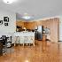 Welcome Home! Rarely available one bedroom unit in the River Street Plaza community. This building is walking distance to downtown Aurora with theatres, restaurants, music venues, coffee shops and more! The main Aurora Public Library is located across the street with ample parking available. This unit is located on the third floor with a carpeted street-side balcony. This unit has beautiful floor-to-ceiling windows and 9 foot ceilings which allows for expansive natural light as well as an enormous kitchen with 42 inch cabinets, granite countertops, breakfast bar, desk area, and stainless steel appliances. The open floor plan offers a living room and dining area with hardwood floors. The laundry room offers ample storage and a stackable washer and dryer. One premier parking spot (#8) with locked storage and heated garage is included.