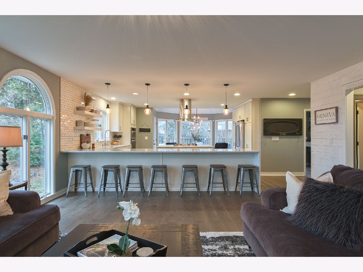 TRULY MAGAZINE WORTHY! The amazing updates and upgrades in this home will have you at "Hello!" This great ranch features an open layout and is nestled in the end of a cul de sac, backing to wide open Geneva Park District space! The chef in the family will absolutely love the spacious, sunny kitchen; it has been completely rehabbed and is fabulous. There's a coffee bar, beverage cooler, kids' fridge, waterfall quartz countertop and seating at the counter for a minimum of 7. The family room opens to the kitchen & offers a two-sided brick fireplace. The master suite will not disappoint, featuring 2 closets, plantation shutters & a gorgeous bath equipped with dual sinks, a whirlpool tub, a separate shower & a private WC. The designer lighting throughout the home and the engineered flooring on the first floor will leave you impressed. That's not all! The lower level will continue to wow you - finished with a rec room, large bedroom and bathroom and an impressive walk-in closet. The party continues outside with a patio, deck & built-in hot tub.The garage floor was finished with an epoxy coating and the overhead door was replaced with an insulated glass door. Have some peace of mind knowing the roof was replaced in 2018 and the A/C is only a couple of years old. You will also be happy to know that there is an irrigation system as well as a security system! Don't miss out!