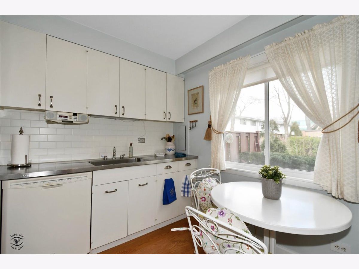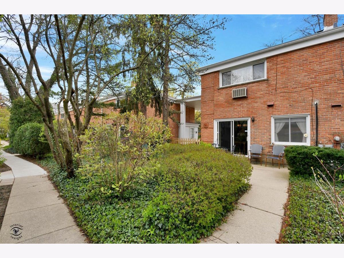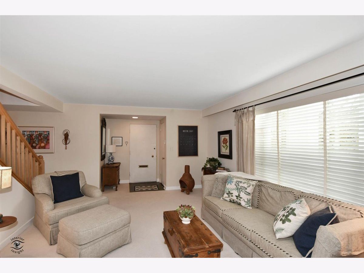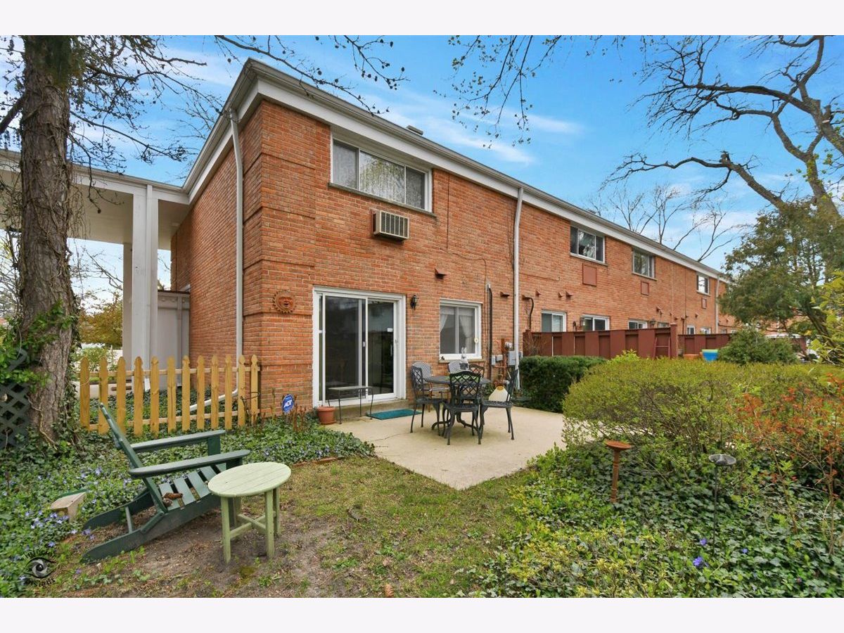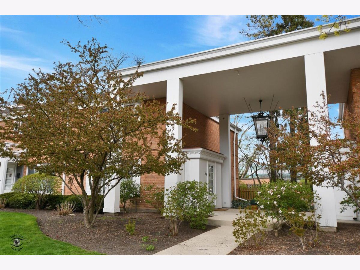 Great Carriage Hill 2-story end-unit with private entrance. 2 bedrooms, 1.5 baths. Separate living room and dining room. Storage/china closet. New windows in both bedrooms and kitchen. Newer hardwood floors in kitchen and dining room. White subway tile backsplash, GE refrigerator and range and vintage stainless Elkay Lustertone counters. Maytag washer/dryer in laundry room. New stair rail, moldings. Hardwood on second floor. Bedroom 2 with access to fantastic walk-up attic for storage. Unit is newly painted. Central air 5-years. American Standard furnace. Insulation blown in walls. Garage #35 is close. Private patio with pretty landscaping. Living room blinds as-is. Exclude curtains in 2nd bedroom. Wonderful location close to Golf train station and downtown Glenview. A great value. Seller will pay or credit at closing $2000 special assessment for exterior painting.