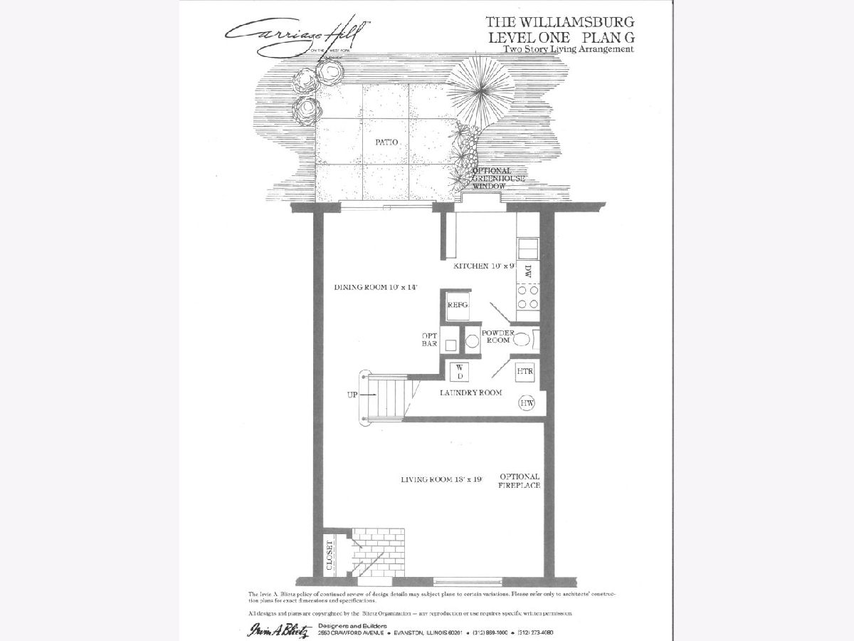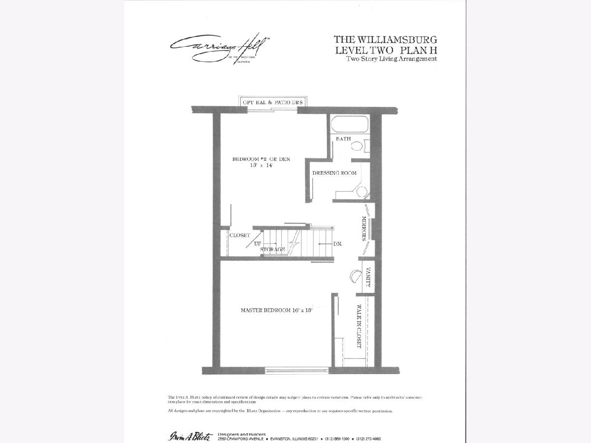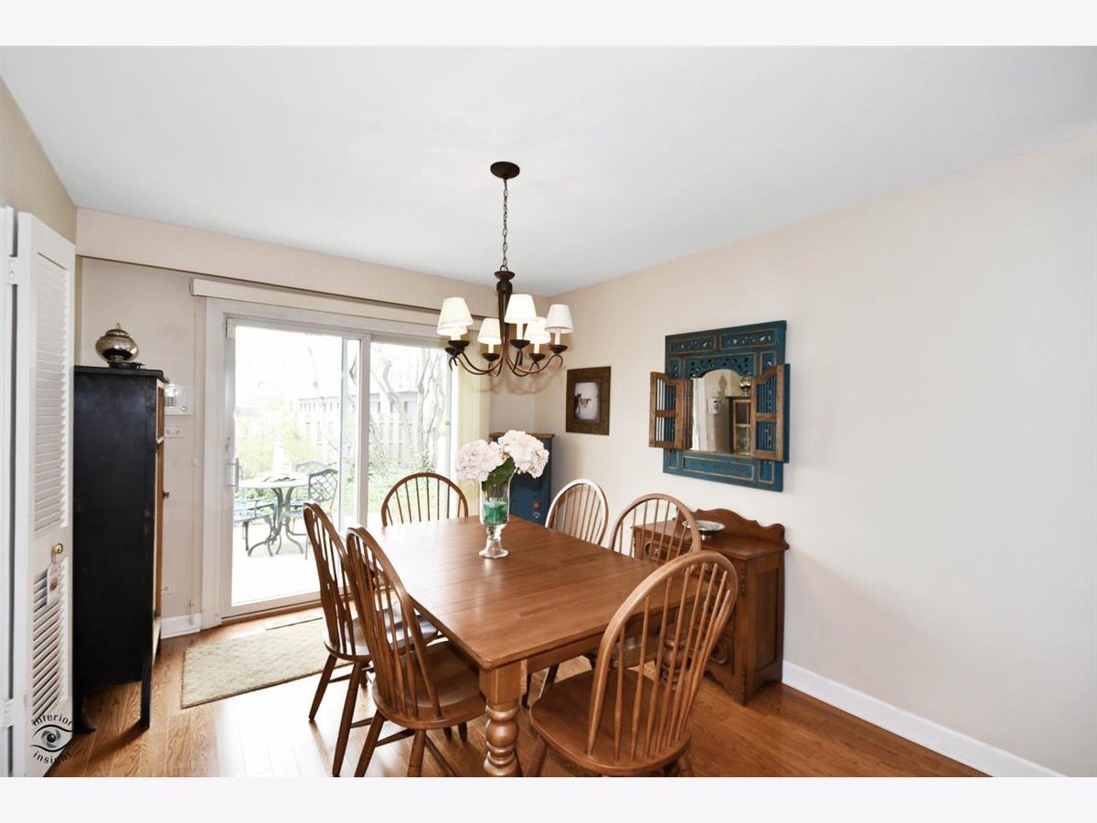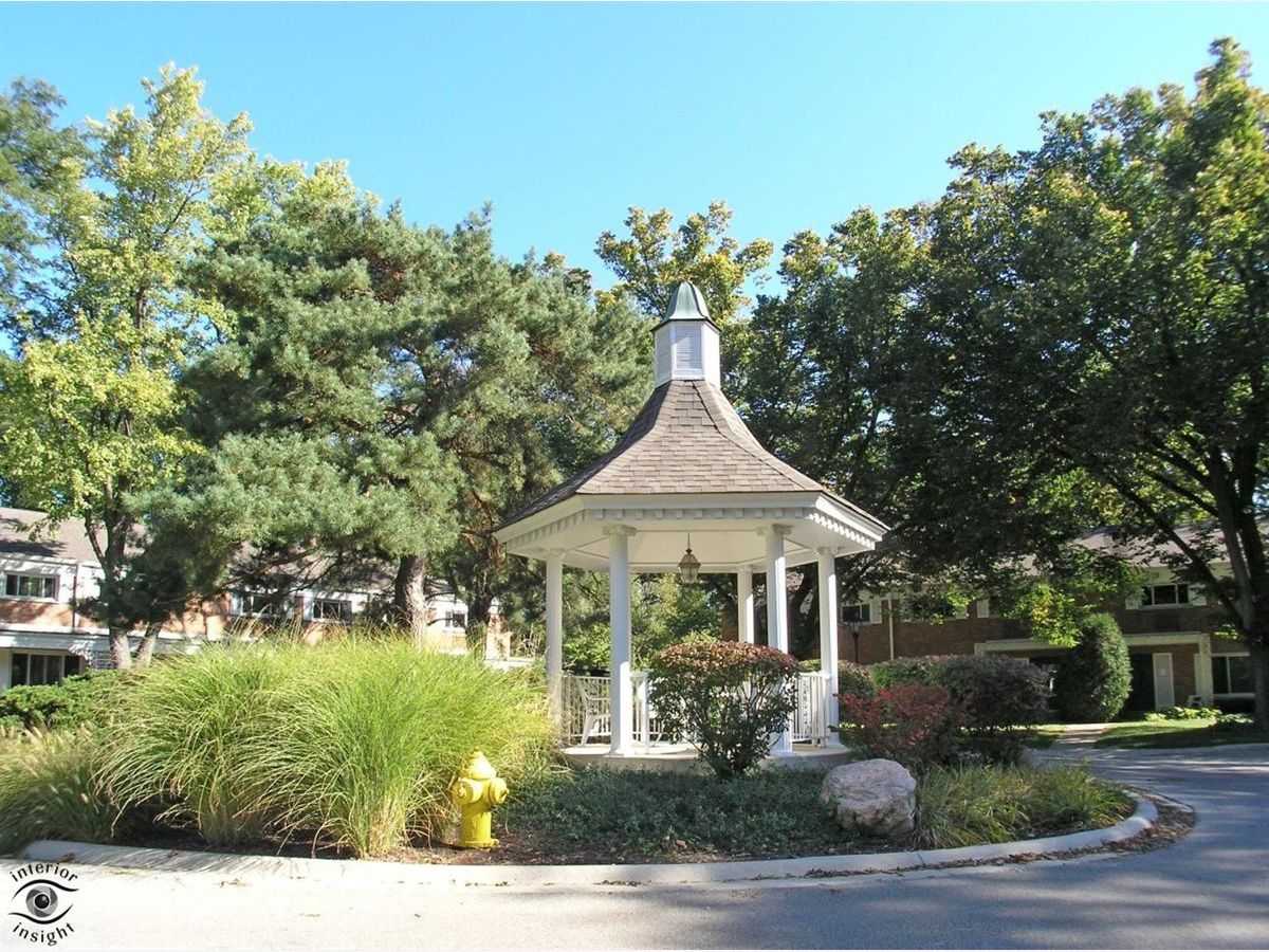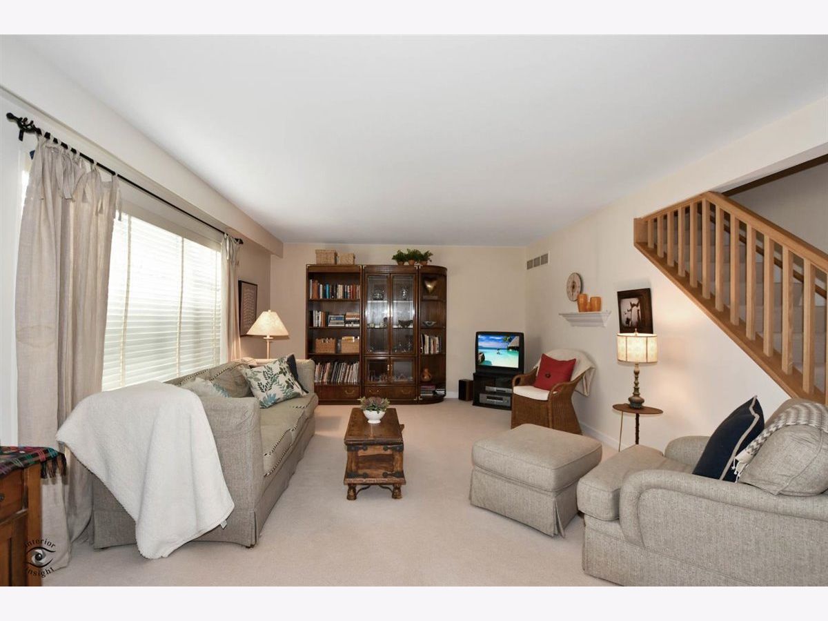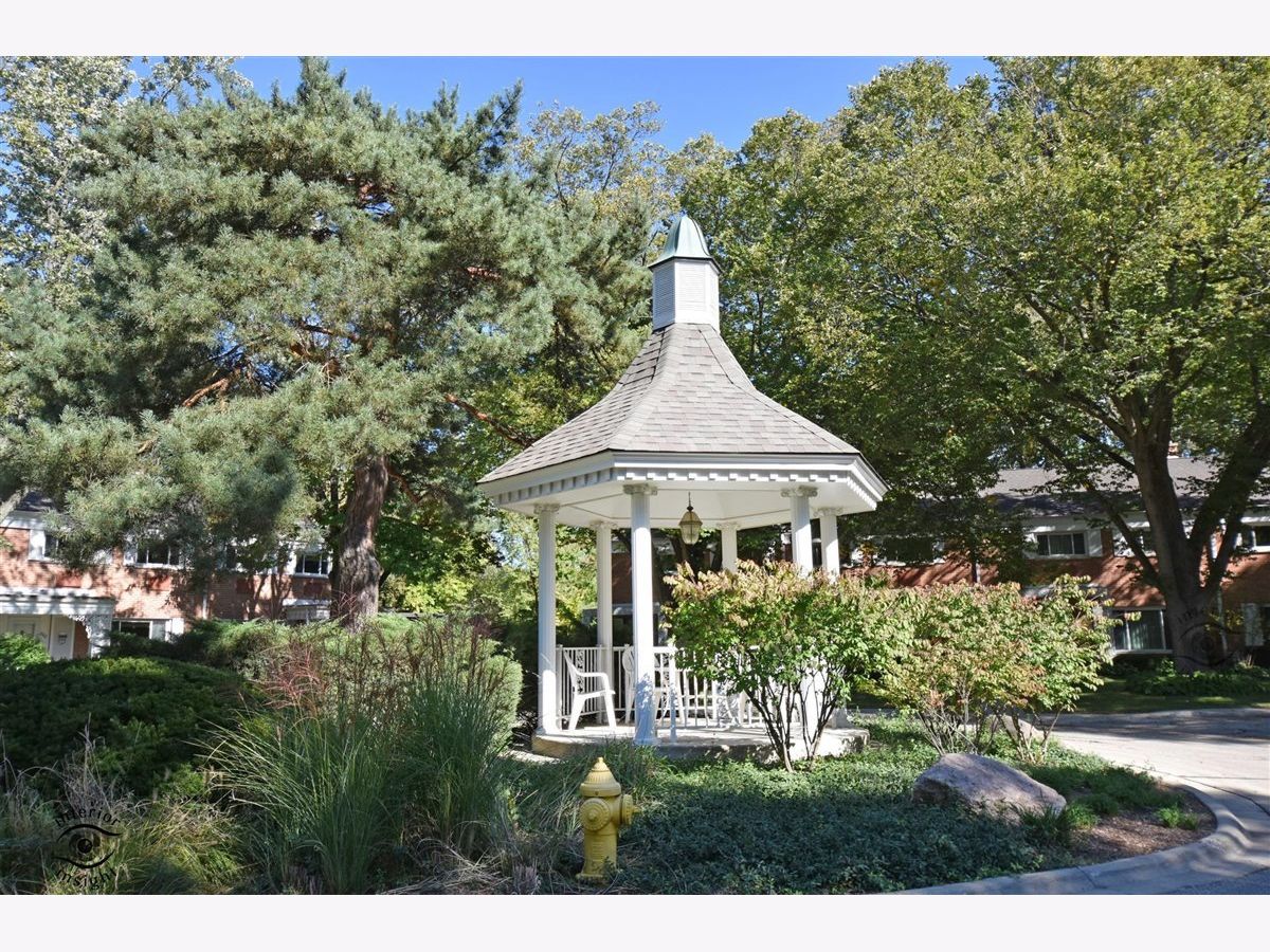 Great Carriage Hill 2-story end-unit with private entrance. 2 bedrooms, 1.5 baths. Separate living room and dining room. Storage/china closet. New windows in both bedrooms and kitchen. Newer hardwood floors in kitchen and dining room. White subway tile backsplash, GE refrigerator and range and vintage stainless Elkay Lustertone counters. Maytag washer/dryer in laundry room. New stair rail, moldings. Hardwood on second floor. Bedroom 2 with access to fantastic walk-up attic for storage. Unit is newly painted. Central air 5-years. American Standard furnace. Insulation blown in walls. Garage #35 is close. Private patio with pretty landscaping. Living room blinds as-is. Exclude curtains in 2nd bedroom. Wonderful location close to Golf train station and downtown Glenview. A great value. Seller will pay or credit at closing $2000 special assessment for exterior painting.