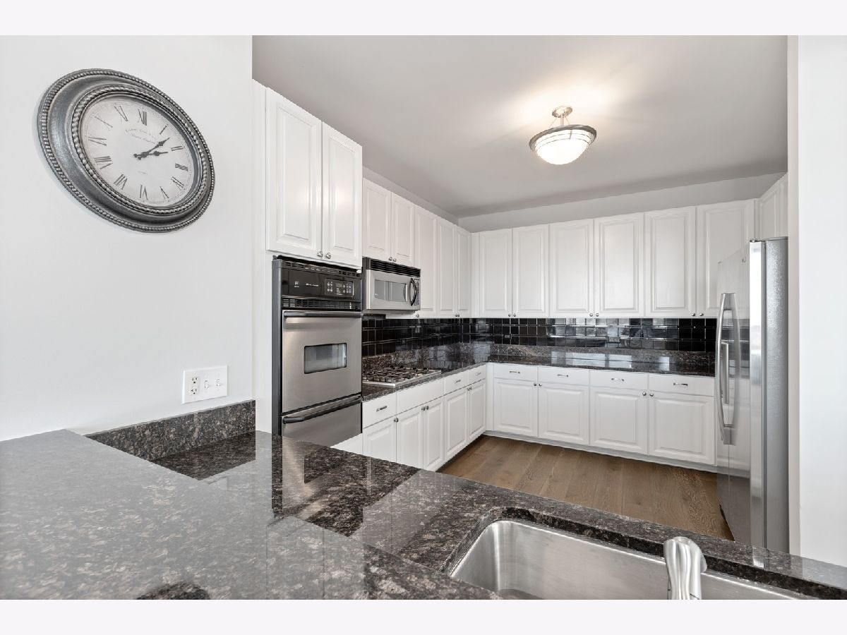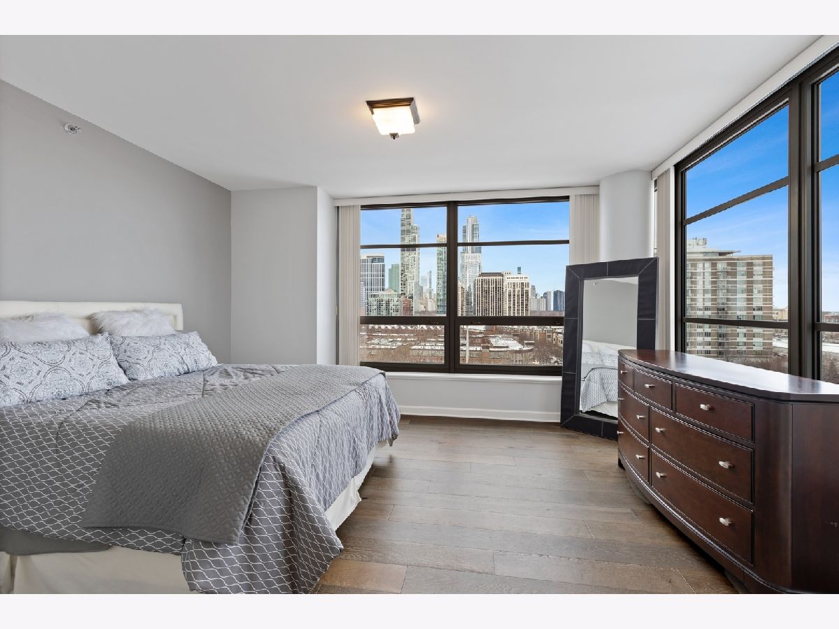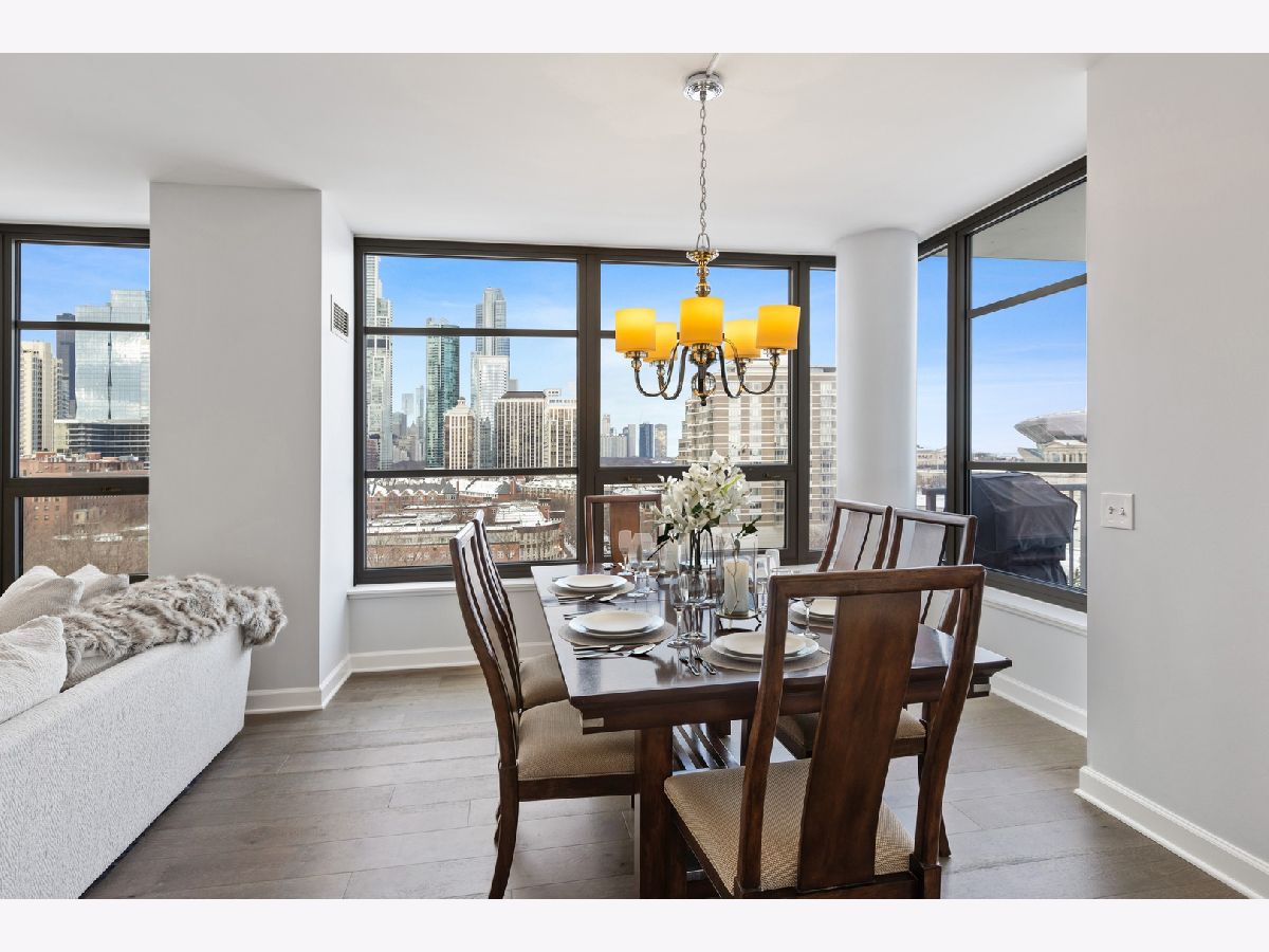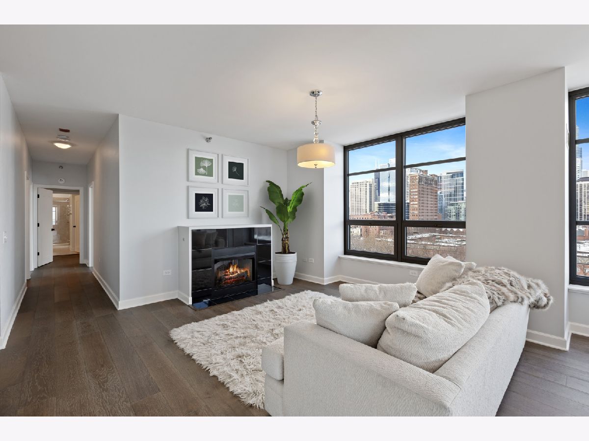 Stunningly spacious corner condo with new hardwood flooring throughout, freshly painted all one color, all custom interior doors, white kitchen cabinets and stainless steel appliances. Flowing floor plan that has a beautiful view from every window, with a generously sized balcony that sits on the northeast corner of the building. The open layout allows for a large dining space, combined with a sitting area with fireplace. This home is laid out well with all of the bedrooms in the rear of the home, large master bathroom with separate shower, deep soaking tub, dual vanity; walk in closet for the master suite. Second bedroom is a great size with a full bath conveniently across the hall and a walk in laundry room with side by side washer and dryer in the hall with custom built-in upper cabinets. The layout easily allows to enclose the area where the fireplace is as either as an office or third bedroom. Prime parking space adjacent to the elevator for $30,000. The building features a wonderful management team with a 24-hour door staff, on-site building engineer and cleaning crew that keeps this building very clean. The exercise facilities are available 24-hours a day and are by appt with COVID restrictions strictly enforced and followed. There is a beautiful roof deck space and community room that is great for parties and community meetings. I look forward to showing you this beautiful home!