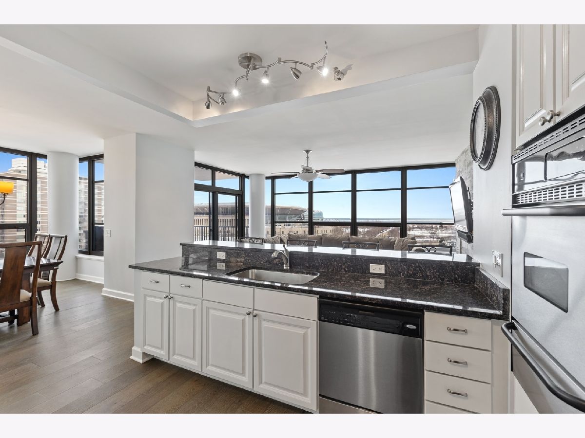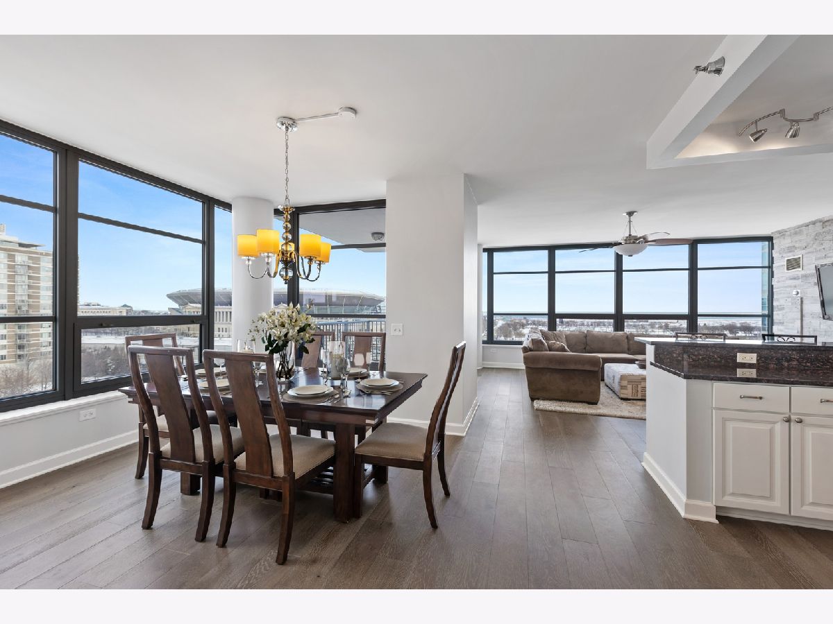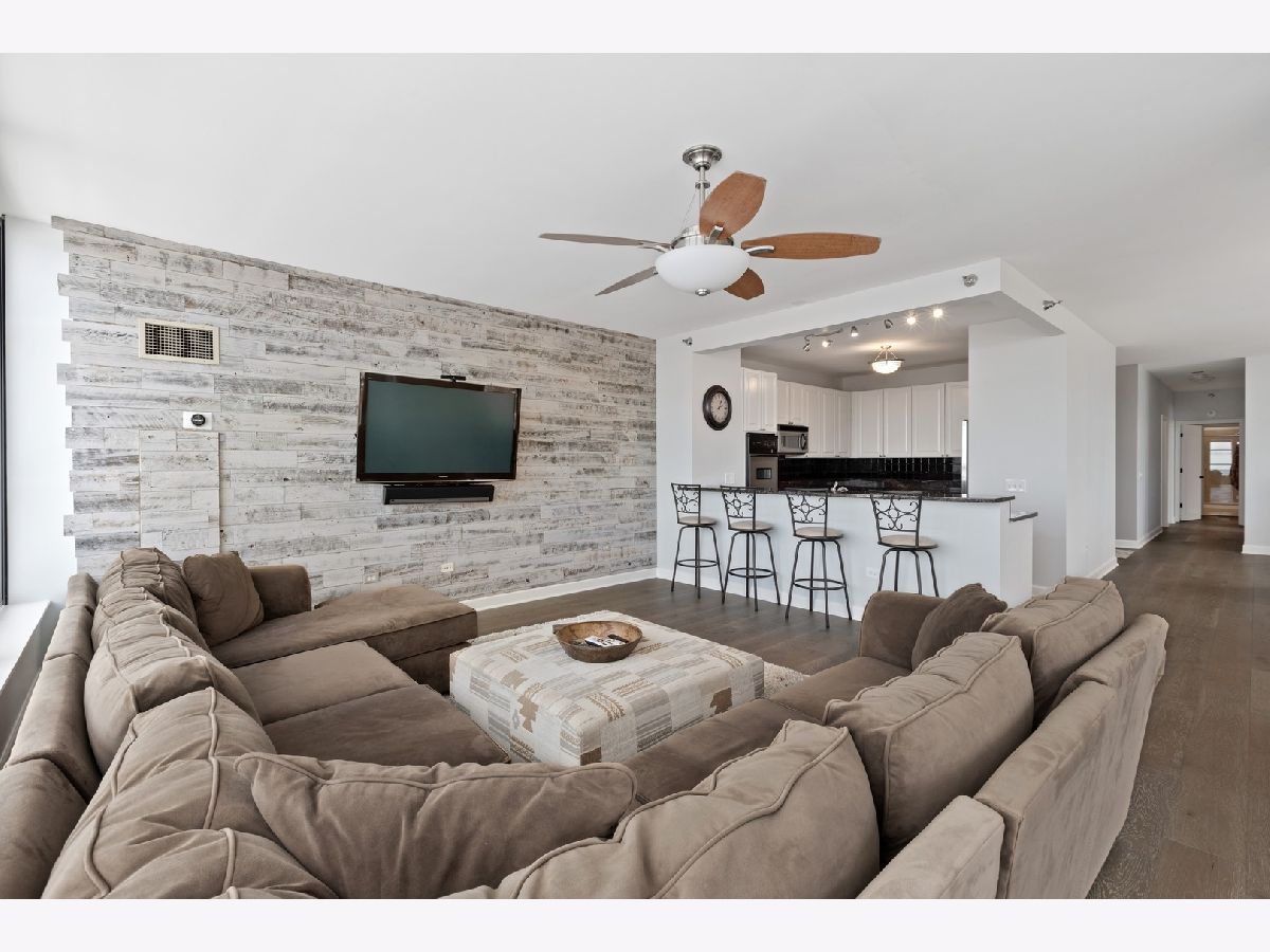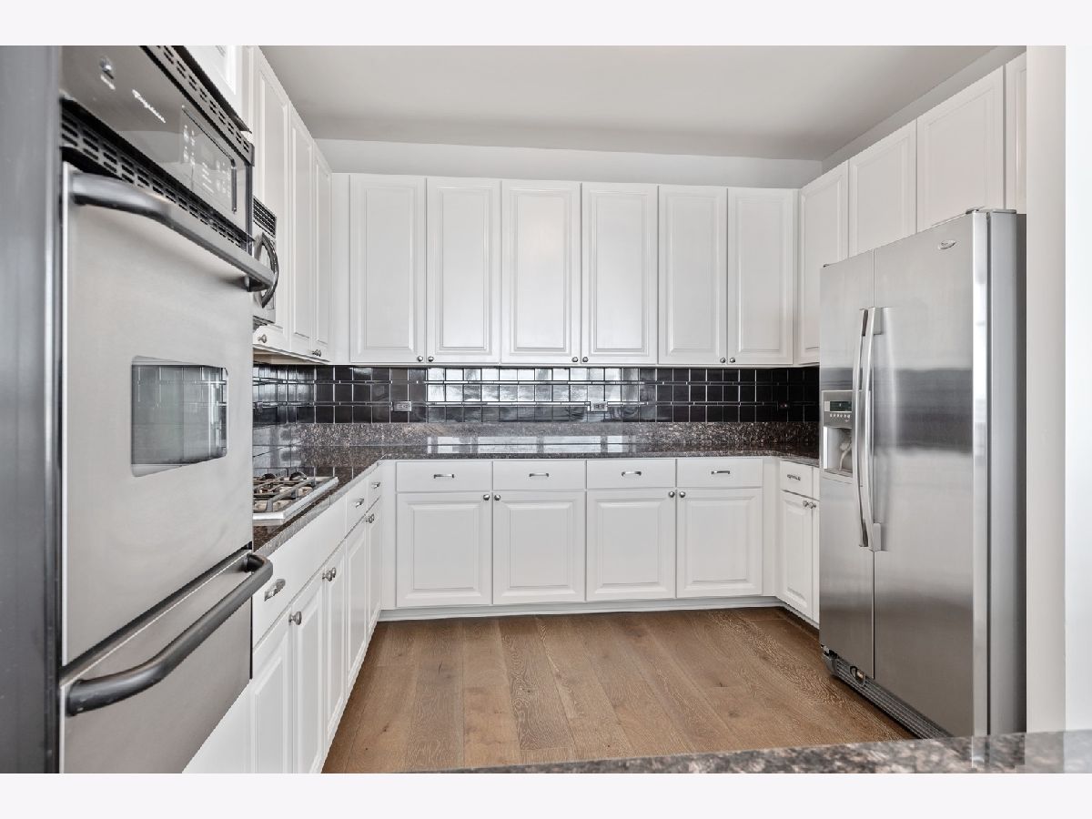 Stunningly spacious corner condo with new hardwood flooring throughout, freshly painted all one color, all custom interior doors, white kitchen cabinets and stainless steel appliances. Flowing floor plan that has a beautiful view from every window, with a generously sized balcony that sits on the northeast corner of the building. The open layout allows for a large dining space, combined with a sitting area with fireplace. This home is laid out well with all of the bedrooms in the rear of the home, large master bathroom with separate shower, deep soaking tub, dual vanity; walk in closet for the master suite. Second bedroom is a great size with a full bath conveniently across the hall and a walk in laundry room with side by side washer and dryer in the hall with custom built-in upper cabinets. The layout easily allows to enclose the area where the fireplace is as either as an office or third bedroom. Prime parking space adjacent to the elevator for $30,000. The building features a wonderful management team with a 24-hour door staff, on-site building engineer and cleaning crew that keeps this building very clean. The exercise facilities are available 24-hours a day and are by appt with COVID restrictions strictly enforced and followed. There is a beautiful roof deck space and community room that is great for parties and community meetings. I look forward to showing you this beautiful home!