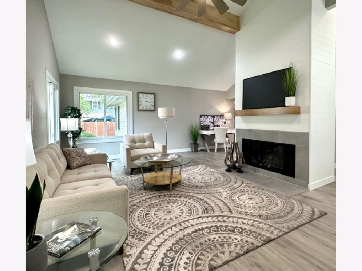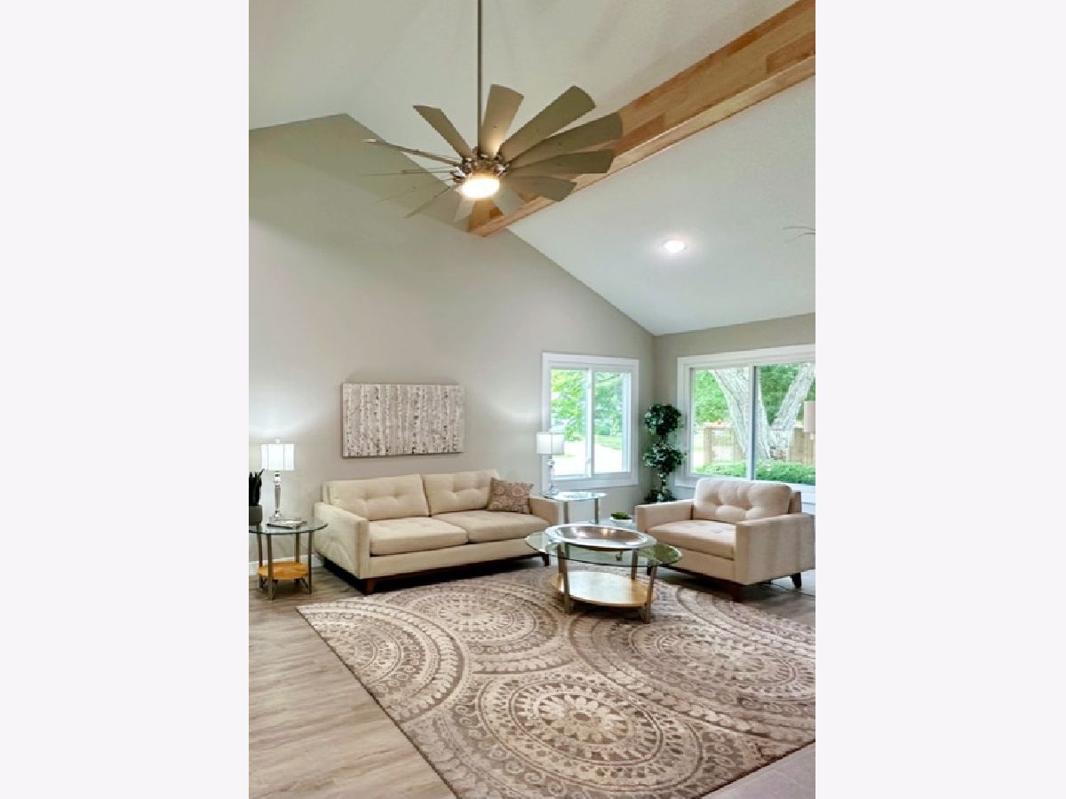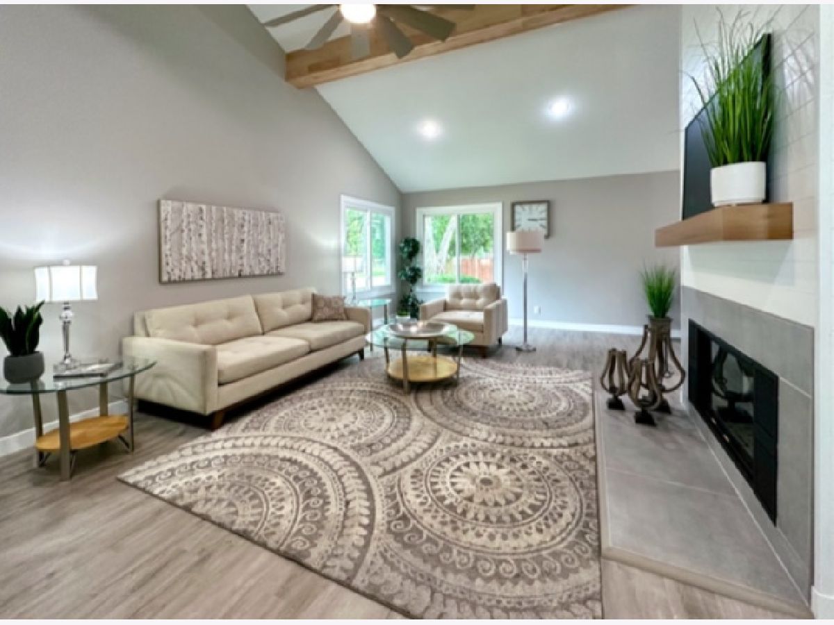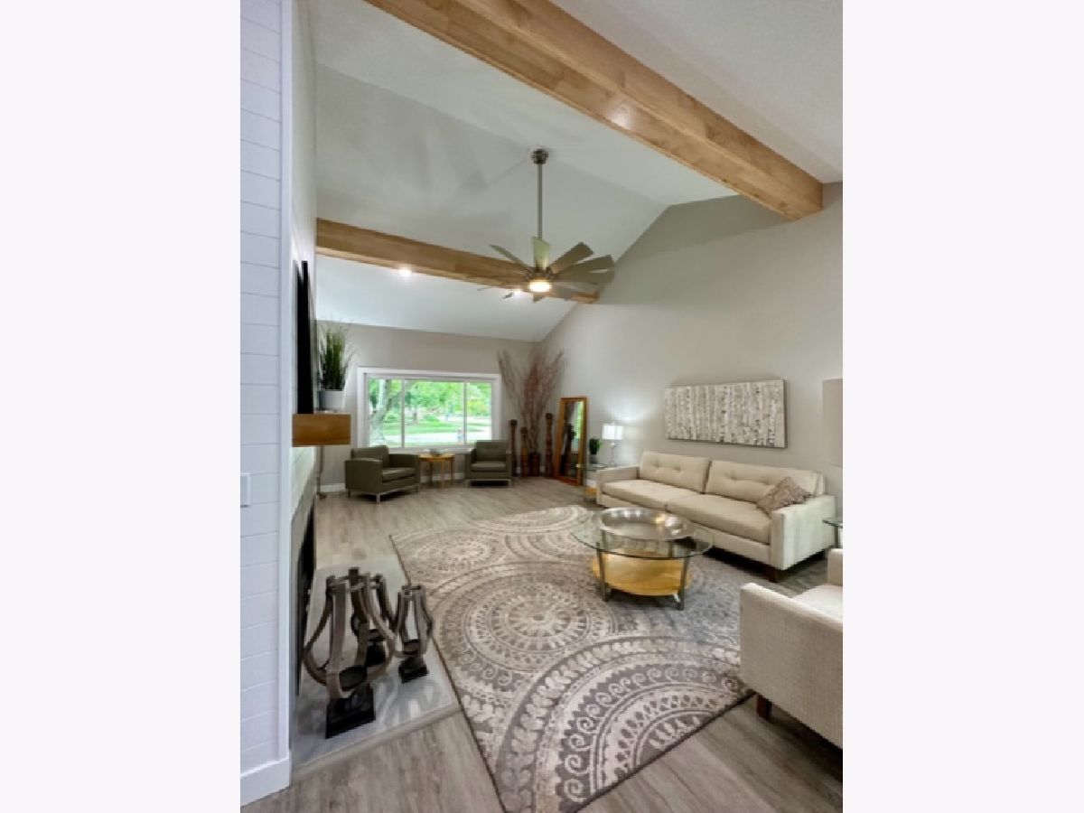 COMPLETE & TOTAL TRANSFORMATION! We are so excited to bring this home to the market after nearly 9 months in the making! We're talking quality remodel, all surfaces touched...down to the studs! Soft contemporary with current colors, selections and decor. Just over ~1700 sqft. and this home lives larger than it looks with: 3 full bedrooms, 2 full baths & 2 sitting areas. Enormous (26ft x 24ft!) main living space with impressive (~2 story!) soaring ceilings and a floor to ceiling slat wall gas/log fireplace with a custom tile surround wood mantle. Stylish, high-end fans in every room. Gorgeous solid maple ceiling beams make a strong statement and add to the contemporary vibe. NEW bright white, thick baseboard and window trim and professionally painted with the perfect Sherwin Williams shade of "greige". Fantastic floorplan has been created and opened up for open spacious feel and circular flow. All NEW luxury vinyl plank flooring through out and luxurious high end carpet in the bedrooms. All NEW doors, door jams, hardware, front door and sliding glass door was added from the kitchen to the Florida room. Kitchen with NEW accent wall, sliding door, lighting, counters, flooring, ceramic tile, subway backslash and NEW/or nearly NEW stainless appliances. Beautiful master with mirrored wall, corner windows, a large triple door closet and pocket door in to the remodeled bath. NEW or Replacement windows, siding, garage door. High efficient NEW LENNOX furnace and NEW roof (~2021) NEW vanities, NEW plumbing, NEW light fixtures, NEW doors NEW counters and more! Lots of closet space and extra storage in the floored ceiling in the attic with pull down ladder. Great curb appeal with popular black/white color pallet, welcoming covered front porch and NEW shudders front door & exterior lights. Oversized corner lot, mature trees and refreshed landscape with a colorful assortment of flowering perennials. New concrete driveway, extra deep 2.5 car garage with cabinets& easy, low grade steps for direct access to the kitchen. Quiet, sought after LAKE DEVONSHIRE subdivision in SW Champaign, conveniently close to all and only about a block to the wonderful Morrisey Park! Make no mistake...this was not a "flip". Broker owned and was originally being done for a family member. (no longer moving to Illinois) Extra time & care was taken for selections and only the best contractors and materials. This is the house that will make you happy that you missed out on the others. Call to schedule with your favorite realtor today...YOU will NOT be disappointed with this one!