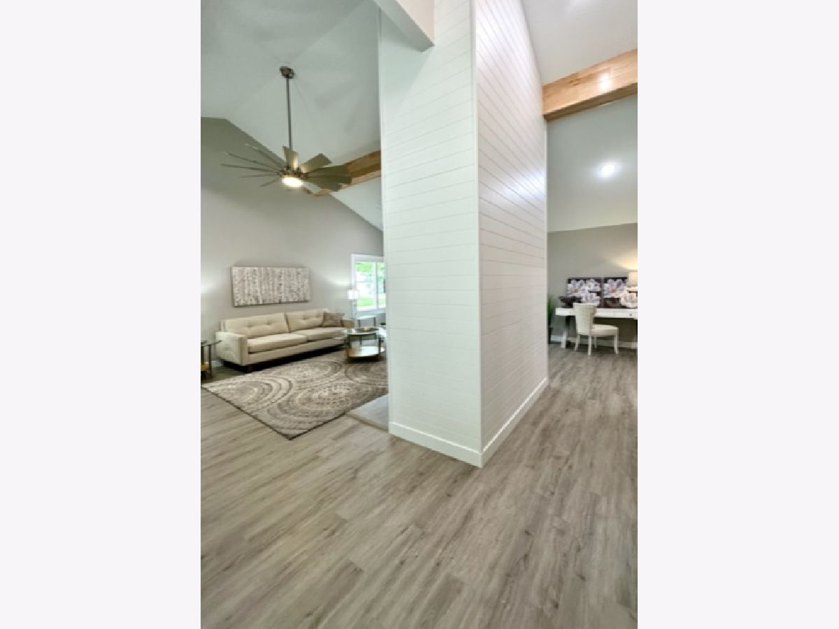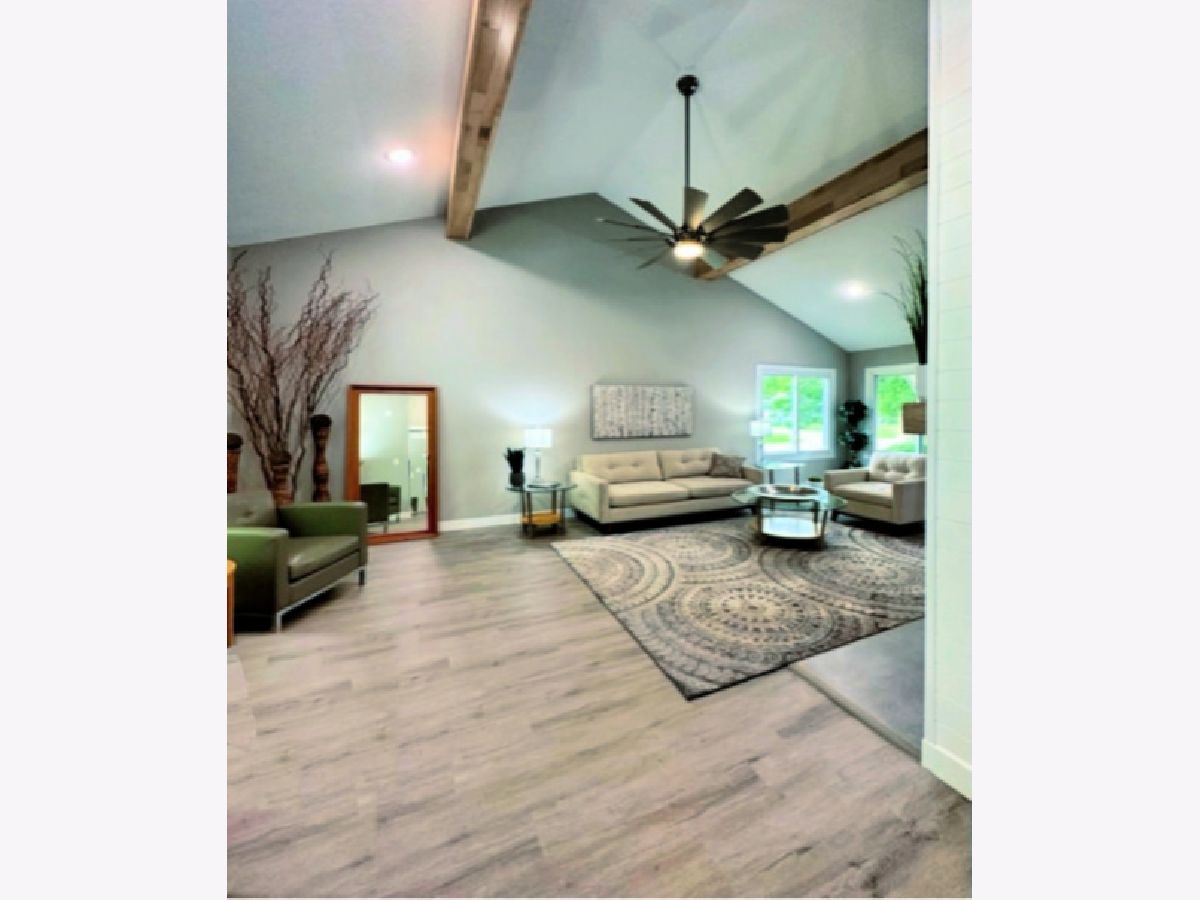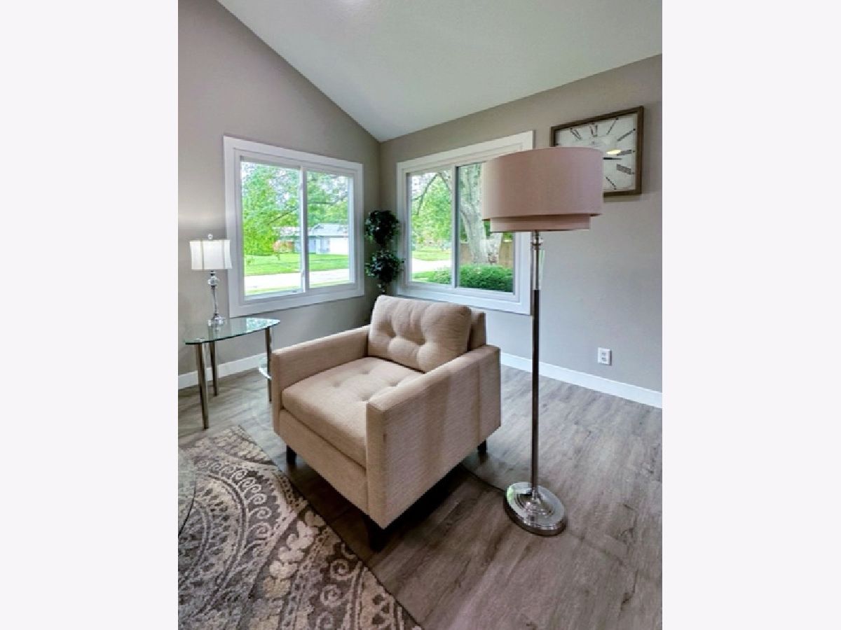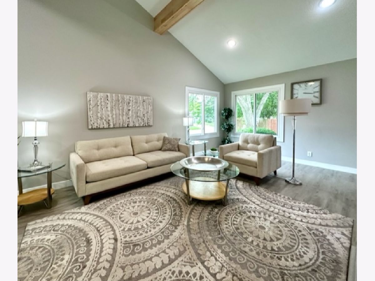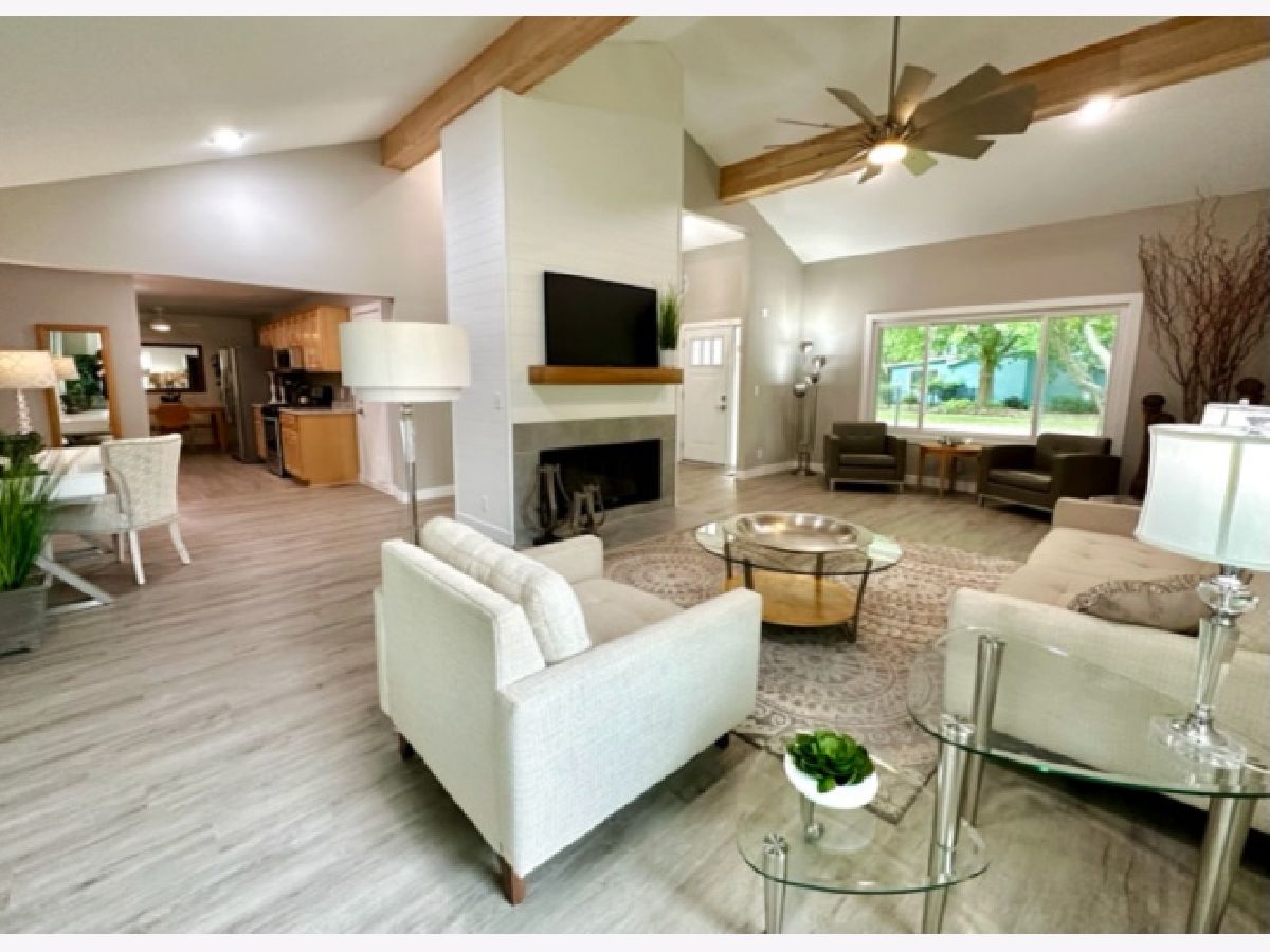 COMPLETE & TOTAL TRANSFORMATION! We are so excited to bring this home to the market after nearly 9 months in the making! We're talking quality remodel, all surfaces touched...down to the studs! Soft contemporary with current colors, selections and decor. Just over ~1700 sqft. and this home lives larger than it looks with: 3 full bedrooms, 2 full baths & 2 sitting areas. Enormous (26ft x 24ft!) main living space with impressive (~2 story!) soaring ceilings and a floor to ceiling slat wall gas/log fireplace with a custom tile surround wood mantle. Stylish, high-end fans in every room. Gorgeous solid maple ceiling beams make a strong statement and add to the contemporary vibe. NEW bright white, thick baseboard and window trim and professionally painted with the perfect Sherwin Williams shade of "greige". Fantastic floorplan has been created and opened up for open spacious feel and circular flow. All NEW luxury vinyl plank flooring through out and luxurious high end carpet in the bedrooms. All NEW doors, door jams, hardware, front door and sliding glass door was added from the kitchen to the Florida room. Kitchen with NEW accent wall, sliding door, lighting, counters, flooring, ceramic tile, subway backslash and NEW/or nearly NEW stainless appliances. Beautiful master with mirrored wall, corner windows, a large triple door closet and pocket door in to the remodeled bath. NEW or Replacement windows, siding, garage door. High efficient NEW LENNOX furnace and NEW roof (~2021) NEW vanities, NEW plumbing, NEW light fixtures, NEW doors NEW counters and more! Lots of closet space and extra storage in the floored ceiling in the attic with pull down ladder. Great curb appeal with popular black/white color pallet, welcoming covered front porch and NEW shudders front door & exterior lights. Oversized corner lot, mature trees and refreshed landscape with a colorful assortment of flowering perennials. New concrete driveway, extra deep 2.5 car garage with cabinets& easy, low grade steps for direct access to the kitchen. Quiet, sought after LAKE DEVONSHIRE subdivision in SW Champaign, conveniently close to all and only about a block to the wonderful Morrisey Park! Make no mistake...this was not a "flip". Broker owned and was originally being done for a family member. (no longer moving to Illinois) Extra time & care was taken for selections and only the best contractors and materials. This is the house that will make you happy that you missed out on the others. Call to schedule with your favorite realtor today...YOU will NOT be disappointed with this one!