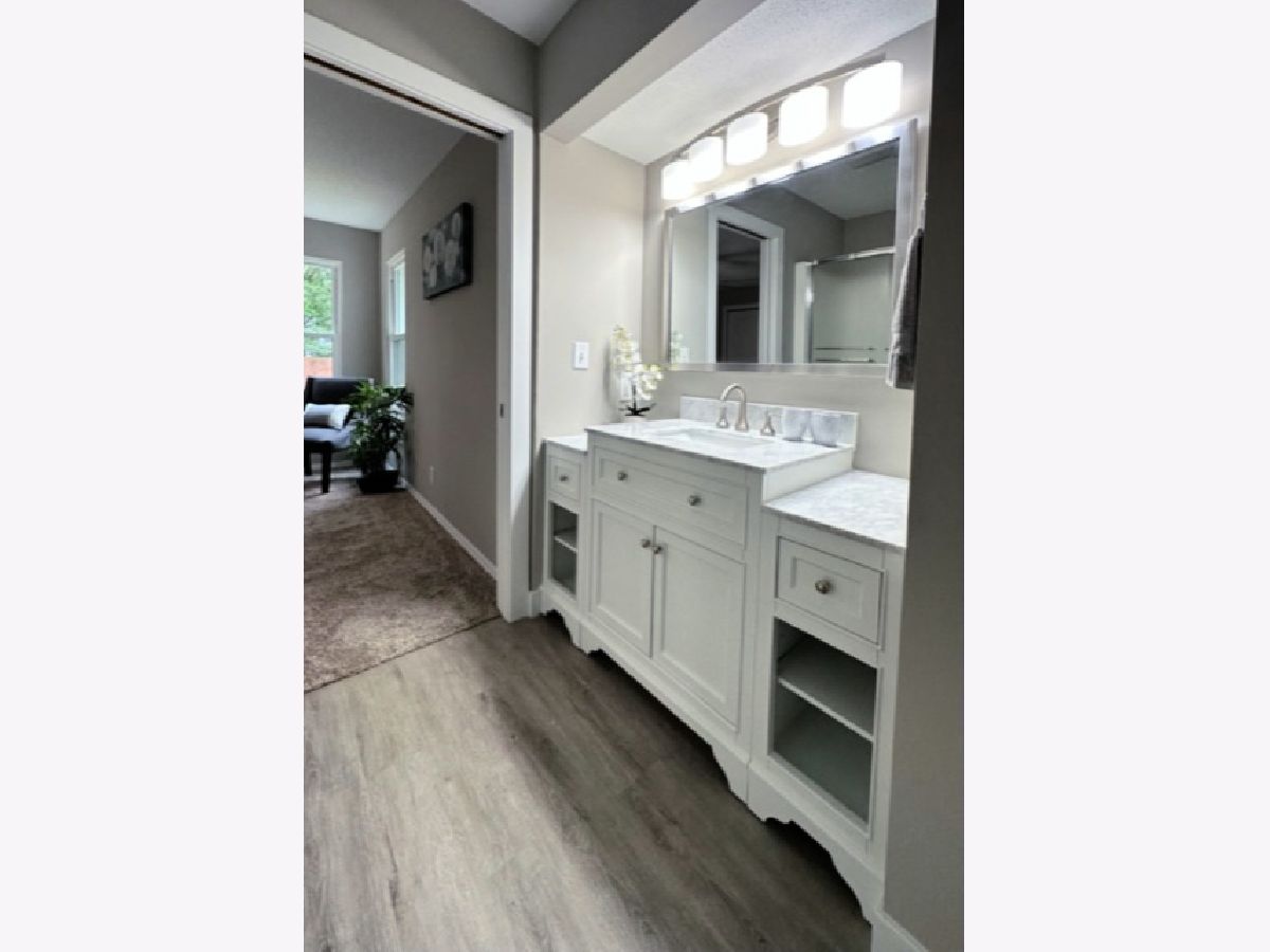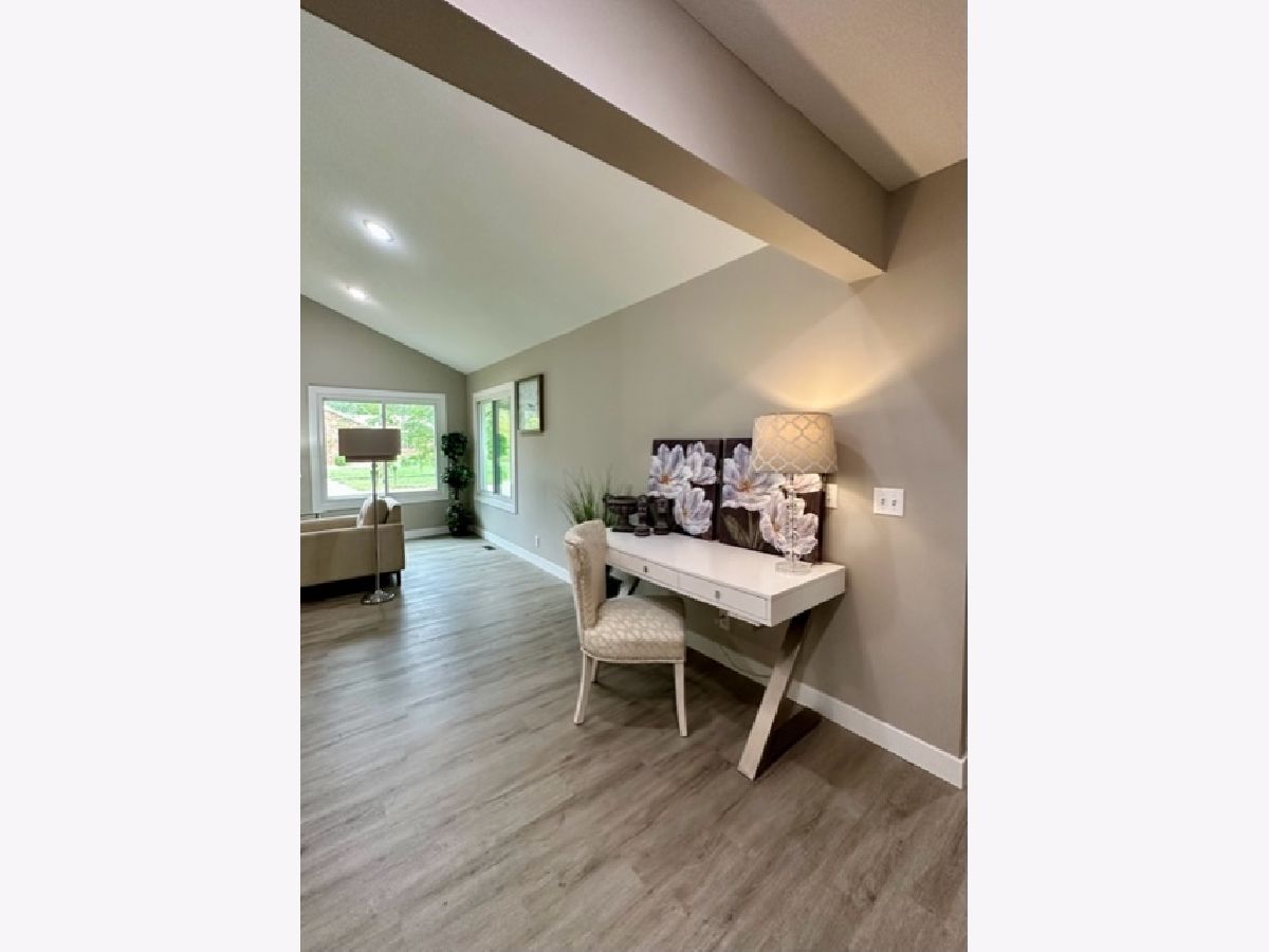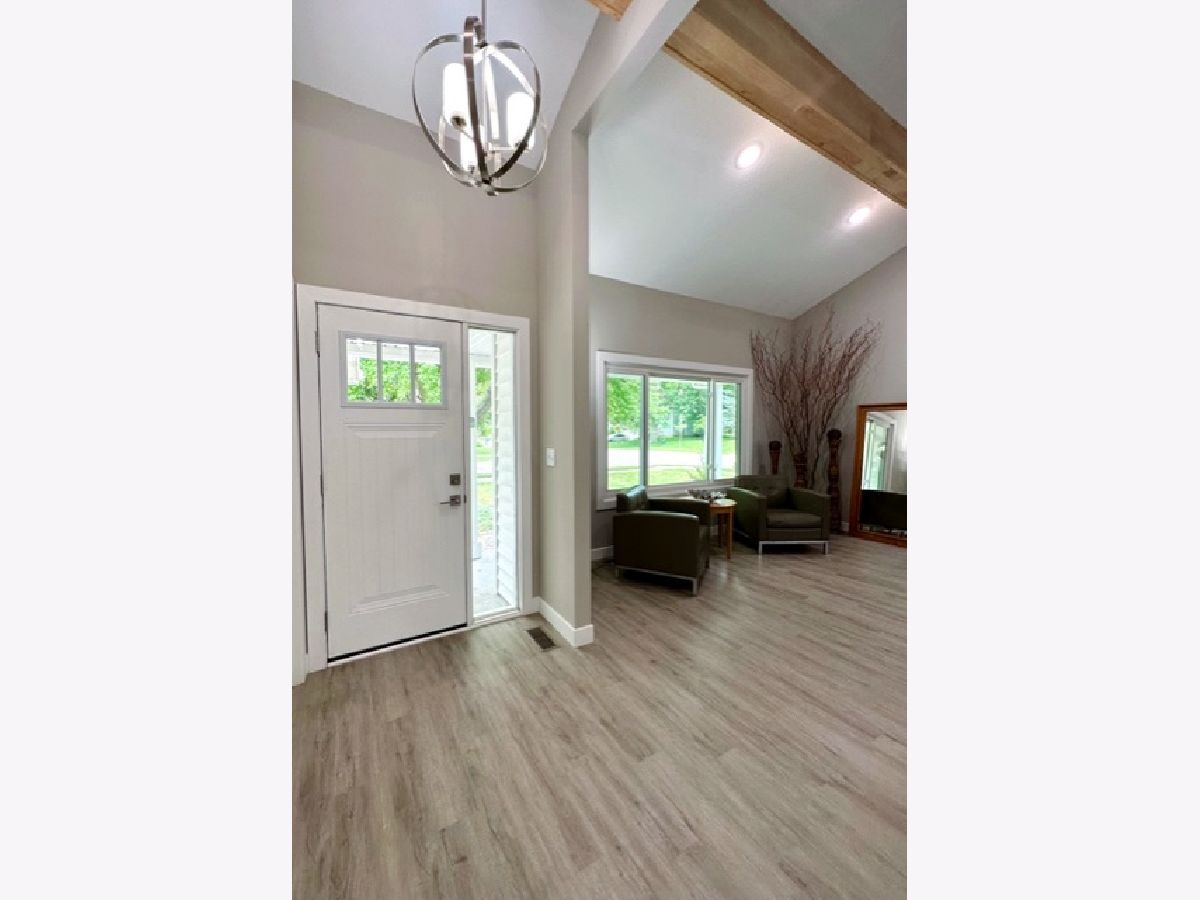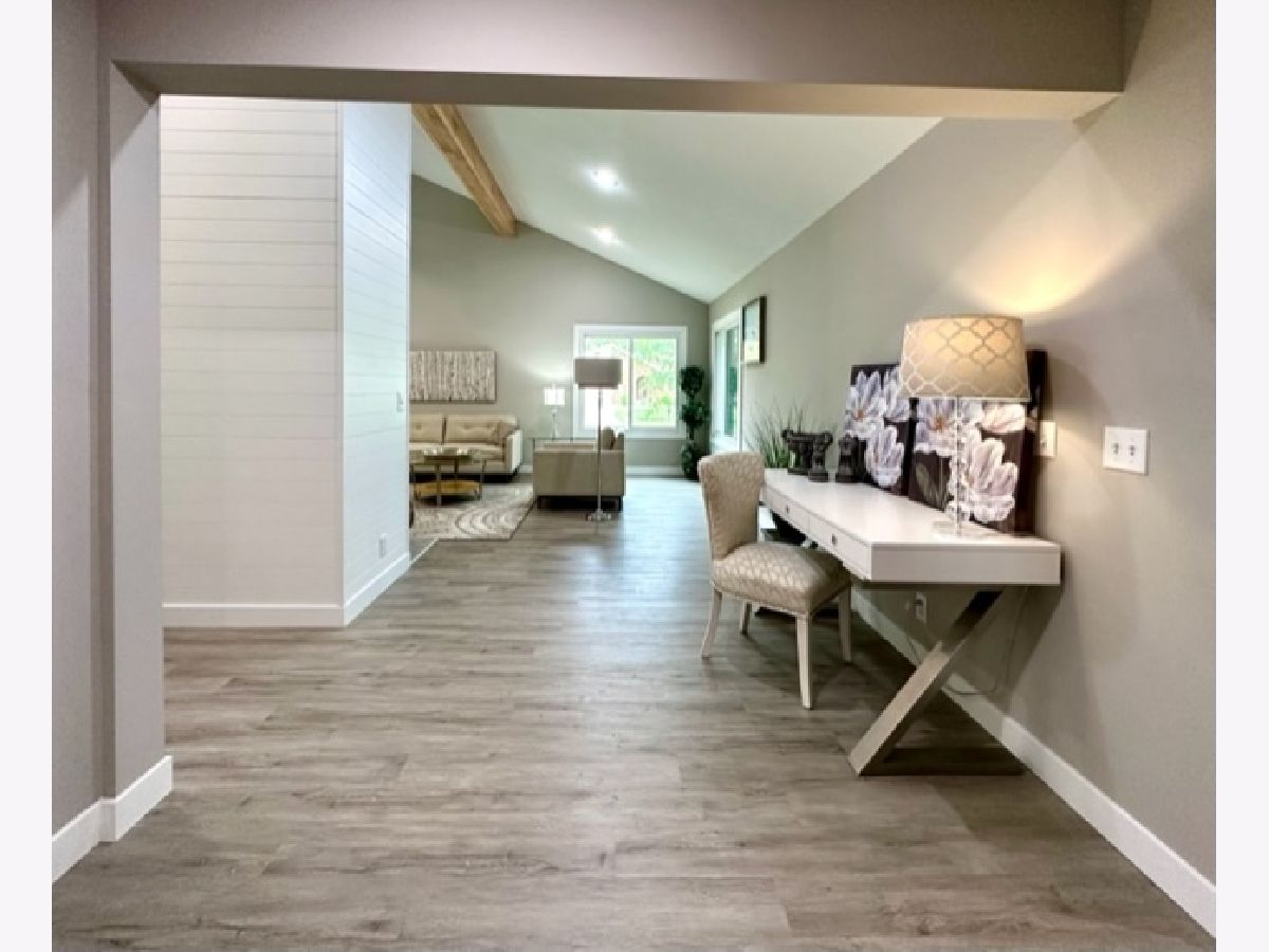 COMPLETE & TOTAL TRANSFORMATION! We are so excited to bring this home to the market after nearly 9 months in the making! We're talking quality remodel, all surfaces touched...down to the studs! Soft contemporary with current colors, selections and decor. Just over ~1700 sqft. and this home lives larger than it looks with: 3 full bedrooms, 2 full baths & 2 sitting areas. Enormous (26ft x 24ft!) main living space with impressive (~2 story!) soaring ceilings and a floor to ceiling slat wall gas/log fireplace with a custom tile surround wood mantle. Stylish, high-end fans in every room. Gorgeous solid maple ceiling beams make a strong statement and add to the contemporary vibe. NEW bright white, thick baseboard and window trim and professionally painted with the perfect Sherwin Williams shade of "greige". Fantastic floorplan has been created and opened up for open spacious feel and circular flow. All NEW luxury vinyl plank flooring through out and luxurious high end carpet in the bedrooms. All NEW doors, door jams, hardware, front door and sliding glass door was added from the kitchen to the Florida room. Kitchen with NEW accent wall, sliding door, lighting, counters, flooring, ceramic tile, subway backslash and NEW/or nearly NEW stainless appliances. Beautiful master with mirrored wall, corner windows, a large triple door closet and pocket door in to the remodeled bath. NEW or Replacement windows, siding, garage door. High efficient NEW LENNOX furnace and NEW roof (~2021) NEW vanities, NEW plumbing, NEW light fixtures, NEW doors NEW counters and more! Lots of closet space and extra storage in the floored ceiling in the attic with pull down ladder. Great curb appeal with popular black/white color pallet, welcoming covered front porch and NEW shudders front door & exterior lights. Oversized corner lot, mature trees and refreshed landscape with a colorful assortment of flowering perennials. New concrete driveway, extra deep 2.5 car garage with cabinets& easy, low grade steps for direct access to the kitchen. Quiet, sought after LAKE DEVONSHIRE subdivision in SW Champaign, conveniently close to all and only about a block to the wonderful Morrisey Park! Make no mistake...this was not a "flip". Broker owned and was originally being done for a family member. (no longer moving to Illinois) Extra time & care was taken for selections and only the best contractors and materials. This is the house that will make you happy that you missed out on the others. Call to schedule with your favorite realtor today...YOU will NOT be disappointed with this one!