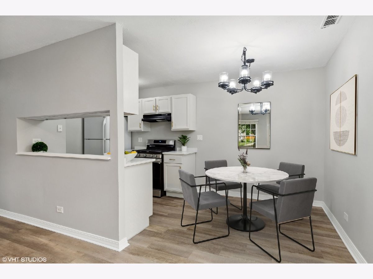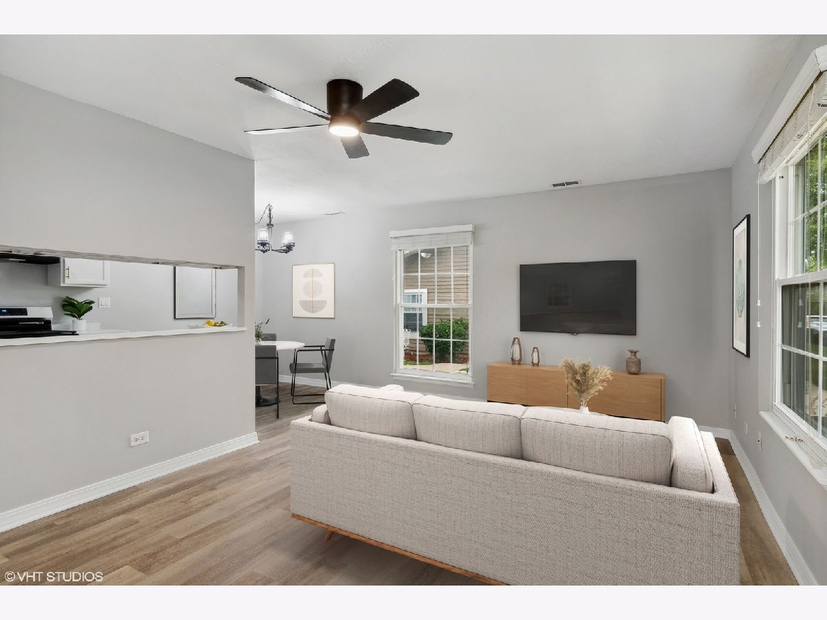 Fantastic first floor ranch condo in desirable Trees of Wheaton neighborhood in Wheaton! This 2 bedroom, 1 full bath end unit offers convenience in location and amenities! Open floor plan and featuring fresh paint (2024), new luxury vinyl plank flooring (2024) and new lighting (2024). Sparkling white kitchen with new gorgeous Quartz countertops (2024), stainless steel oven/range (2024), new stainless steel undermount sink and touch faucet (2024). Primary bedroom offers huge walk-in closet and 2nd bedroom is perfect for a guest room, office or den. Washer/dryer in unit, attached garage with exterior access and storage. Assessment includes water, scavenger, common insurance, pool, exterior maintenance scavenger & snow removal. Top rated Wheaton schools (CUSD 200) close to shopping, Wheaton Metra station, downtown Wheaton, Marianos, Cantigny Park, golf courses & highway access! Unit boasts interior location and across from community pool. Updates: toilet (2024), water heater (2020), Furnace (2017), vinyl windows and newer full bath! No rentals allowed. Pets welcome, limit 2 pets with no size restrictions. Welcome home!