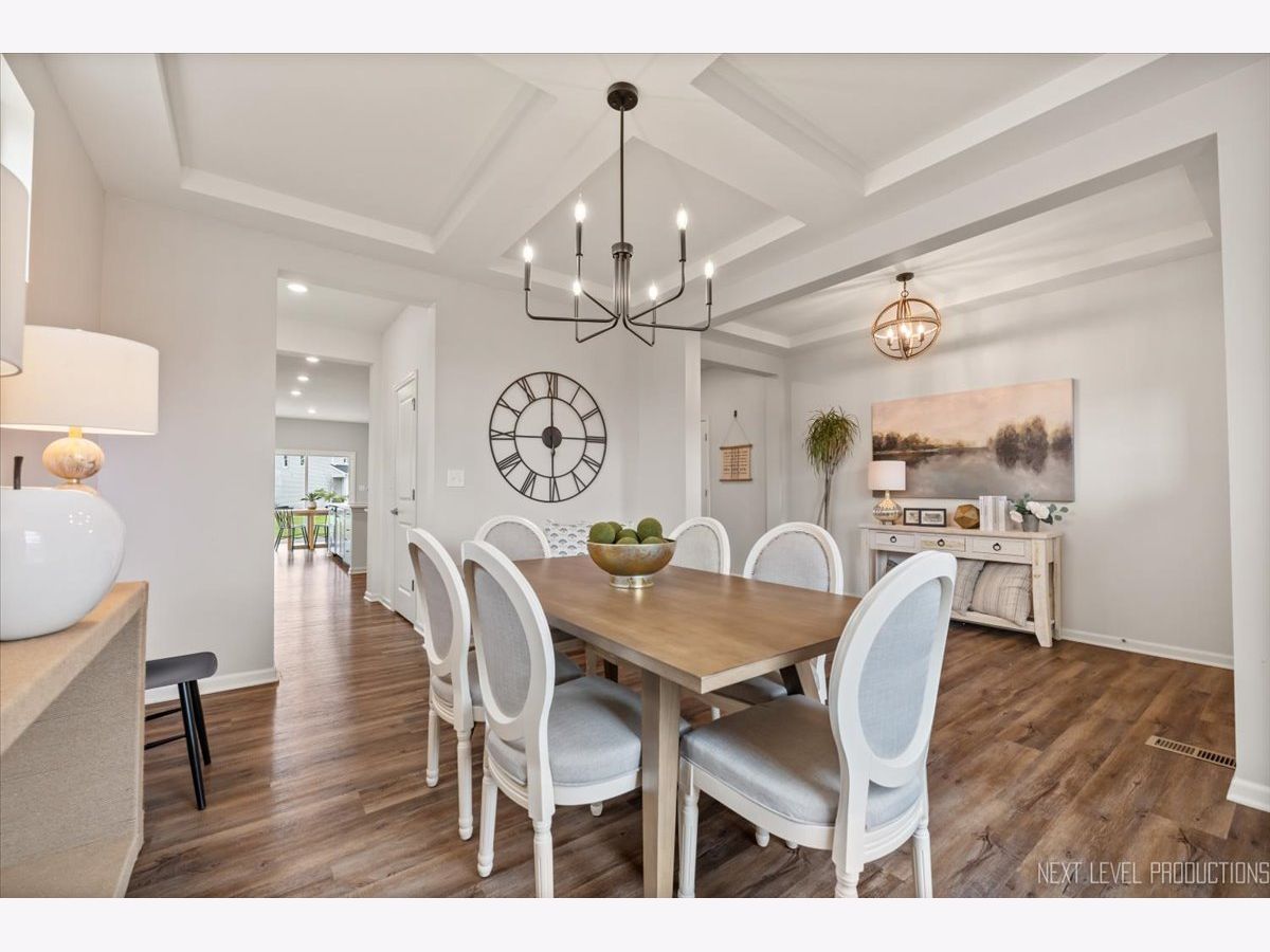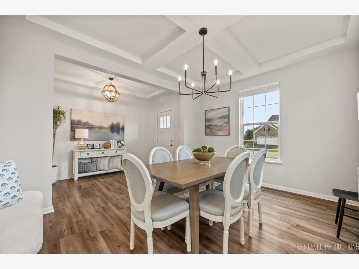 Welcome to this upgraded home in Plainfield! The original owners built this stunning 5 bedroom, 2.5 bathroom family haven boasting a spacious two-story layout full of modern amenities and thoughtful details. Step inside to discover a well designed first floor featuring an open concept that seamlessly connects the family room, an updated kitchen with a generously sized island and breakfast area, and a formal dining room enhanced by a coffered ceiling and charming artistic windows. A versatile flex space, perfect for a main floor bedroom/den/office, a powder room, and a designated mudroom, complete the main level. Upstairs, enjoy a fantastic loft space perfect for family gatherings or relaxation, along with three additional bedrooms, majority offering ample walk-in closet space. The second-floor laundry room adds convenience, while the owner's suite is a true retreat, featuring an upgraded coffered ceiling, windows, a cozy sitting area, dual walk-in closets, and a luxurious primary bath with dual sink vanity, private toilet, and an upgraded spacious shower. The unfinished basement presents an opportunity to tailor additional living space to your liking, with a rough-in for a bathroom already in place, ideal for multi-generational living or whatever suits your lifestyle. Outside, a beautiful paver patio overlooks the largest yard in the subdivision, providing ample space for outdoor enjoyment and relaxation. With its three-car garage and desirable features throughout, this home invites you to move right in and start enjoying everything it has to offer! Located in the Plainfield North High School district, you'll also enjoy proximity to nearby hiking trails at Mather Woods, the Prairie Activity & Recreation Center, Gregory B. Bott Park, and the Fort Beggs Bike Trail, with a new community park underway. Just 3 miles from downtown Plainfield, you'll have easy access to shopping, restaurants, boutiques, entertainment, and more! Minimal maintenance living meets move-in ready comfort in this beautifully updated home.