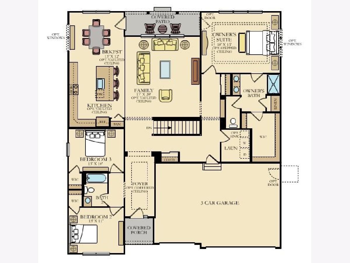 Creekside Crossing is offering a beautiful new construction of single family homes! This luxury Ridgefield model offers a well designed efficient floor plan that includes three bedrooms, two bathrooms, a first floor convenient laundry room, basement and a three car garage. Walking through the main entrance/foyer you will immediately be welcomed into the breathtaking single story ranch home that is very elegantly designed w/open floor plan concept. Follow the entry into a stunning family room that overlooks a beautiful backyard view. Adjacent to the foyer there are two bedrooms and a full bath. The modern and functional kitchen features a breakfast room, Quartz countertops, an over-sized island, a pantry, as well as 42" Aristokraft cabinets and stainless-steel appliances. The dining area is openly situated along the family room providing the ideal layout to enjoy and entertain your guests. Finally, the impressive spa-like master suite is privately tucked away for you to relax. It includes a master bathroom with a shower, a private water closet and double-bowl vanity that leads into an enormous walk-in closet. Some other included features, 9' ft first floor ceilings, Shaw vinyl plank flooring, Wi-Fi certified homes with smart home automation, Ring doorbell, Schlage Wi-Fi smart lock, Honeywell Wi-Fi thermostat, 30 year architectural roof shingle, exterior masonry (per plan), full basement, 1-2-10 year home warranty included. Fully sodded and landscaped yards! Plainfield North School district! Close to Downtown Plainfield entertainment and Shopping, transportation and rt 59 corridor. Photos are of a model and not an actual home. Pictures are of a model home and not the actual home in the community. TO BE BUILT NEW CONSTRUCTION. Estimated delivery April 2022.