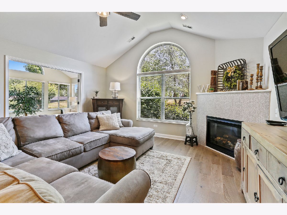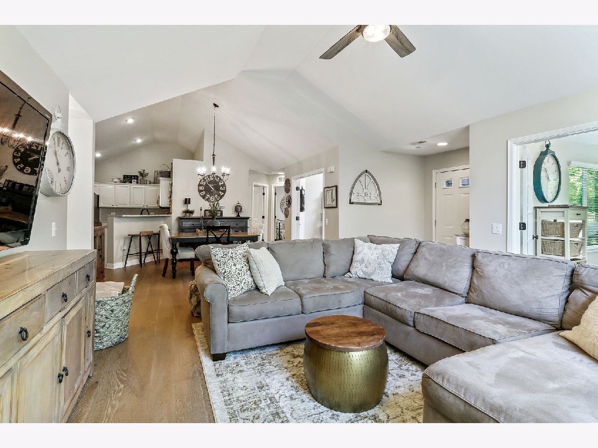 Remarkable END UNIT, TRUE RANCH that has been completely updated and immaculately maintained. HGTV designer decor that will transcend the ages. Welcoming foyer with all new gleaming, distressed, hardwood flooring that shows like a model home. Formal family room with soaring vaulted ceilings and a gorgeous, updated corner fireplace. Formal dining room great for entertaining with an elegant chandelier. Completely updated kitchen with painted cabinetry, new granite countertops, stainless steel appliances, and custom subway tile backsplash. Incredible sun room surrounded by windows for optimal retention of sunlight. Charming master suite with elevated ceilings, new carpeting, private master bathroom that has been updated with a painted vanity, new flooring, updated shower and massive walk in closet great for added storage. Second bedroom with ample closet space, third bedroom opportunity or office space and a shared updated bathroom. MANY UPDATES INCLUDE: Entire unit has painted a neutral color palette, all new white trim, interior doors, kitchen updates (painted cabinetry, granite countertops, SS appliances, subway tile backsplash), all new hardwood flooring, carpeting, bathrooms updated, washer and dryer and too much to list. 2 car garage with a spacious attic space for additional storage. MOVE IN READY! For any discerning buyer looking for a TRUE RANCH townhome. Schedule your private showing today.