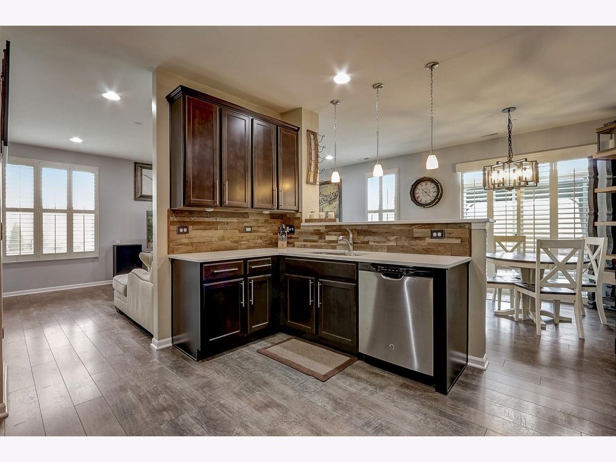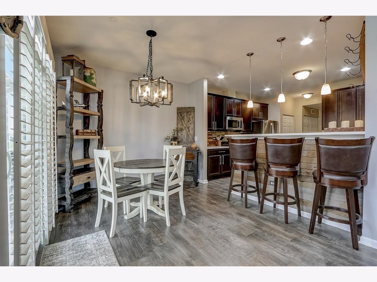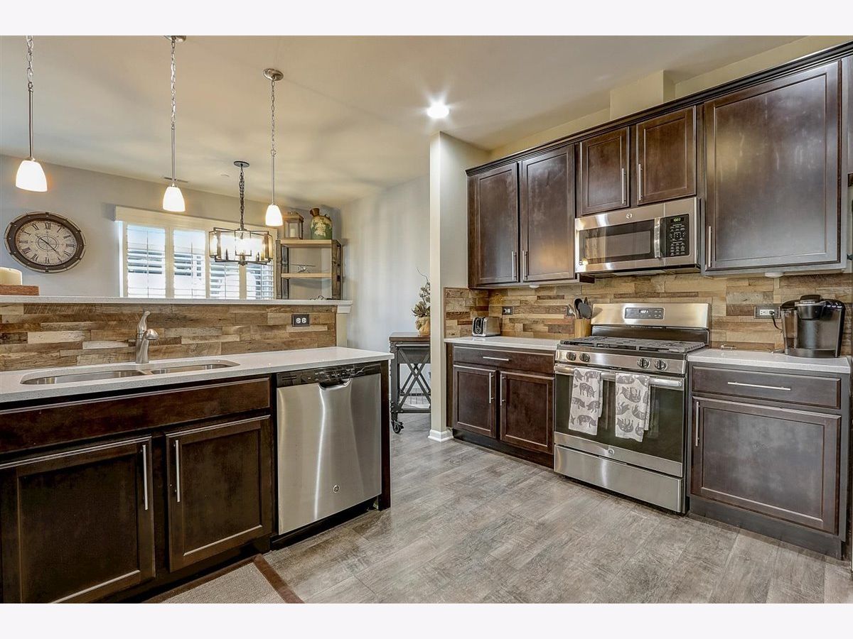 Welcome home to this modernly updated townhome in beautiful Sagebrook! End Unit with great layout! Luxury wide plank flooring throughout main level. Kitchen includes marble countertop, lots of cabinet space, stainless steel appliances, pantry, a breakfast bar. Breakfast bar kicker wall and kitchen backsplash have been updated with custom reclaimed American Barn wood. Head upstairs to find your new spacious den. Great for relaxation or the perfect office location. Bedrooms are large. Primary suite includes vaulted ceiling, walk-in closet, Jack and Jill sinks with custom tile work in the private bathroom. Pergola allows for a private patio. Check out all the green field and neighborhood park. Sunburst Plantation shutter included and allow for a tax credit! 15 year transferable structural warranty.