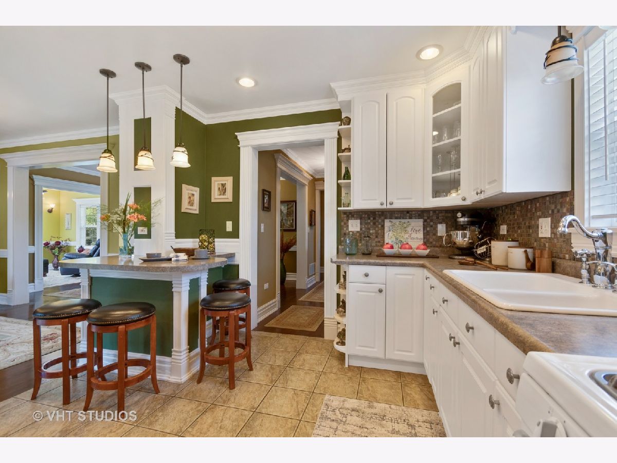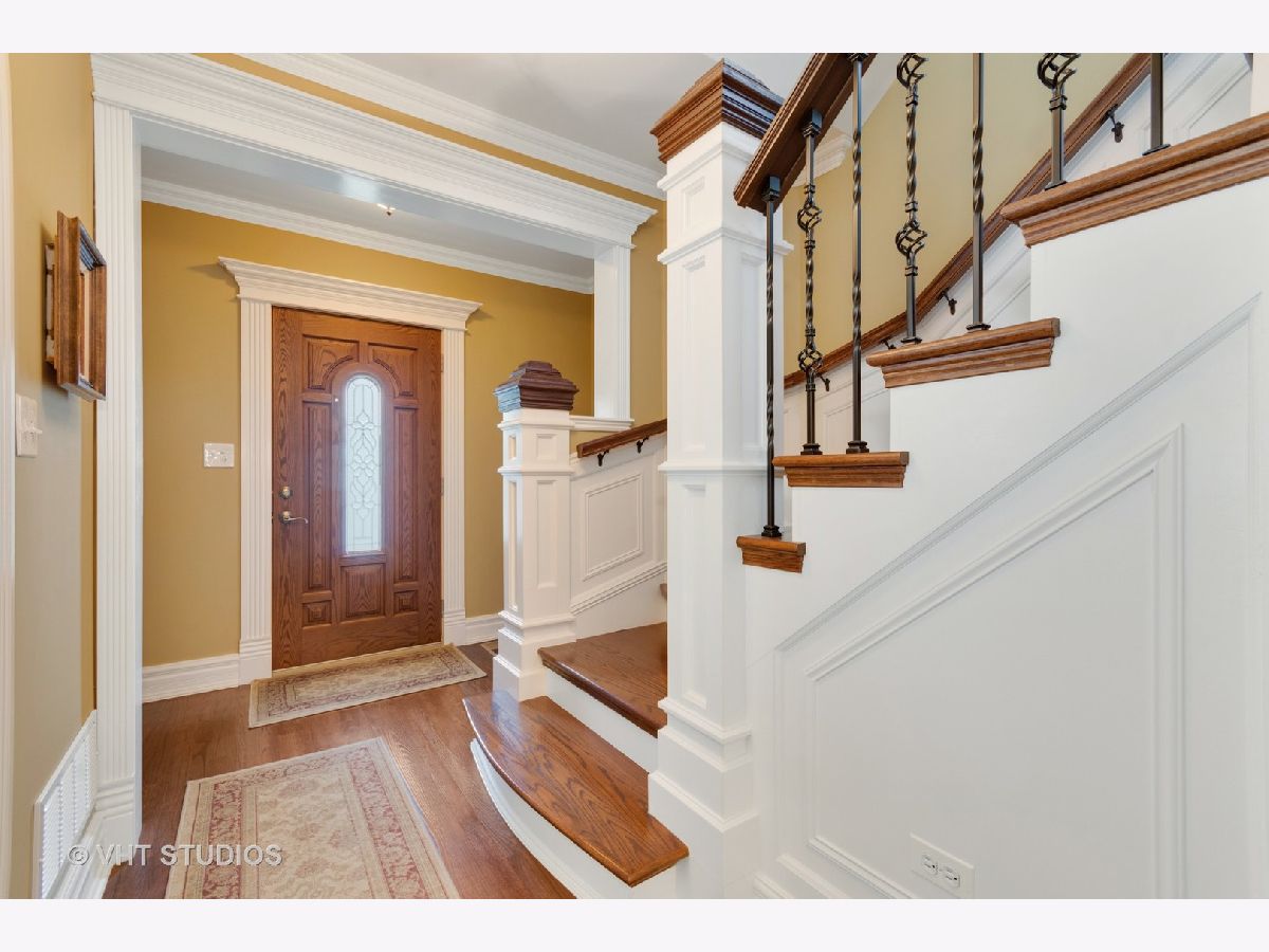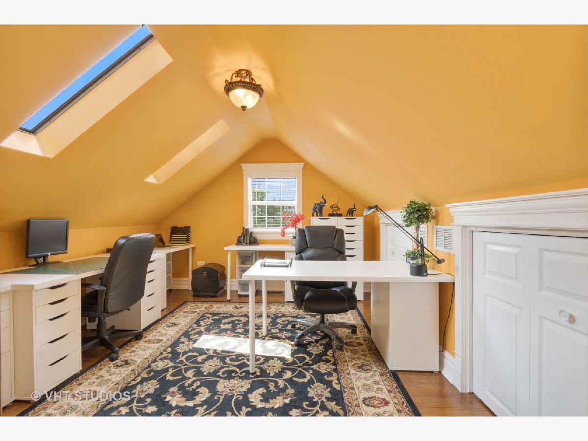 Welcome Home to this completely updated, move-in ready home located in Aurora IL. This home is on a spacious lot that is almost 3/4 of an acre. There is a HUGE 5 car garage located behind the house. The garage is 33'x35' with a large 8 foot tall gable that provides additional 1,155 square foot of storage. There is plenty of driveway parking too. There are two high efficiency HVAC systems, one for downstairs and one for upstairs. The house has over 2500 square feet of living space including the finished basement. It has 3 large bedrooms and 4 full baths. The large white kitchen has a breakfast bar, lots of counter space, open shelving and glass shelving. The spacious dining room is located just off the kitchen.The large laundry room is located on the main level for convenience. The Master Bedroom has a separate room that is a beautiful office with lots of built-ins and a balcony that looks over the yard. Also, the second bedroom has a balcony, so beautiful.The basement is finished with a recreation room, a media room, full bathroom and there is a very large storage room. Don't overlook the back porch, great for looking out over the backyard that is lined with trees, and bushes. There is also a welcoming paver patio to sit out and enjoy the weather. This home has been meticulously maintained and ready for a new owner to enjoy. Don't overlook all the trim work, there is crown molding, wainscoting, extra trim over all the doors and windows. The beautiful lead glass front door welcomes you right into your new home!