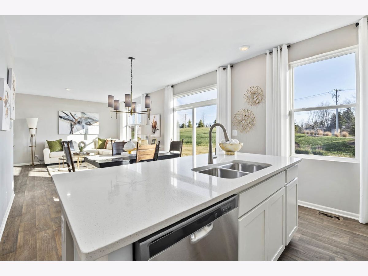 The Sienna is built with modern finishes, smart home technology, and energy efficient features throughout! The Sienna is just over 1800 sq ft, featuring 3 bedrooms, loft, 2.5 baths, 9 ft first floor ceilings, and a 2-car garage. The kitchen is light and bright with white quartz countertops, flagstone style cabinetry, LED lighting, and Whirlpool stainless steel appliances. Plenty of storage with large island, and pantry. The inviting open-concept floor plan flows effortlessly to the family room, making it perfect for entertaining. Upstairs, there's a generously sized primary suite with walk-in closet. Private bath with oversized raised height dual sink vanity with plenty of storage space, and large stand-up shower. Light-filled laundry room is conveniently located on the 2nd floor. Professionally landscaped lawn with fully sodded front and back yard. District 300 Schools! Enjoy our 30,000 sq foot club house with a large pool, fitness center and basketball court. Ask about our smart home system! Photos are of a similar home. Actual home will vary. Ready for summer move in!