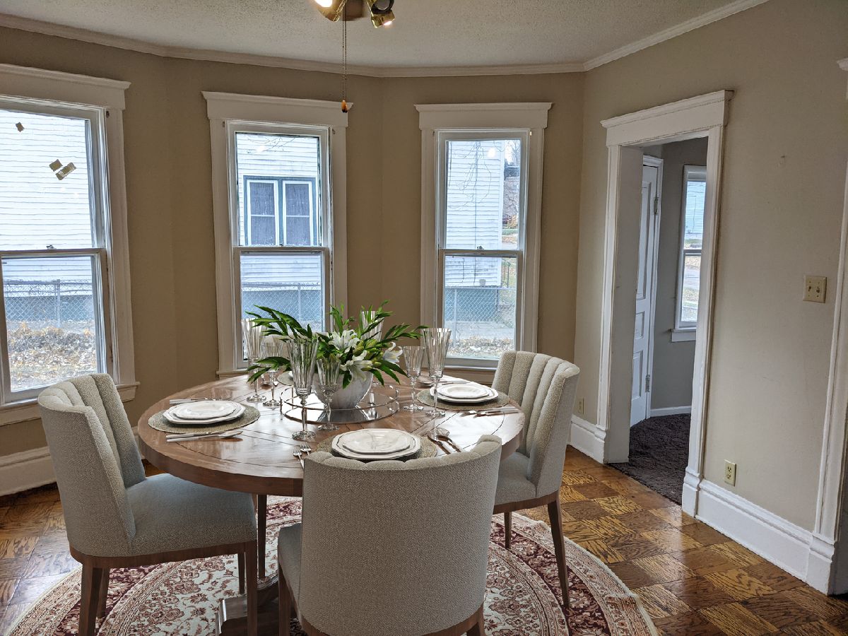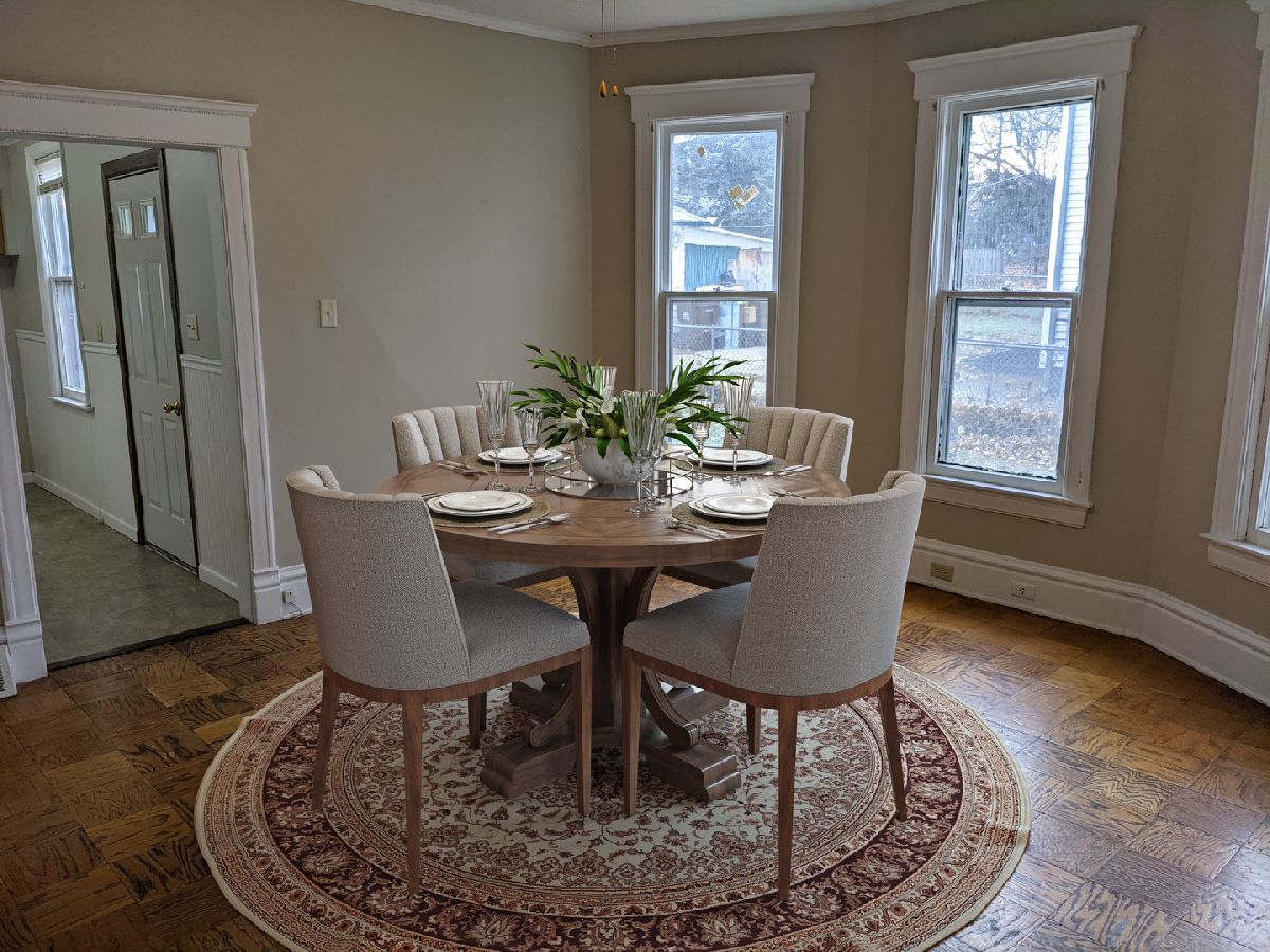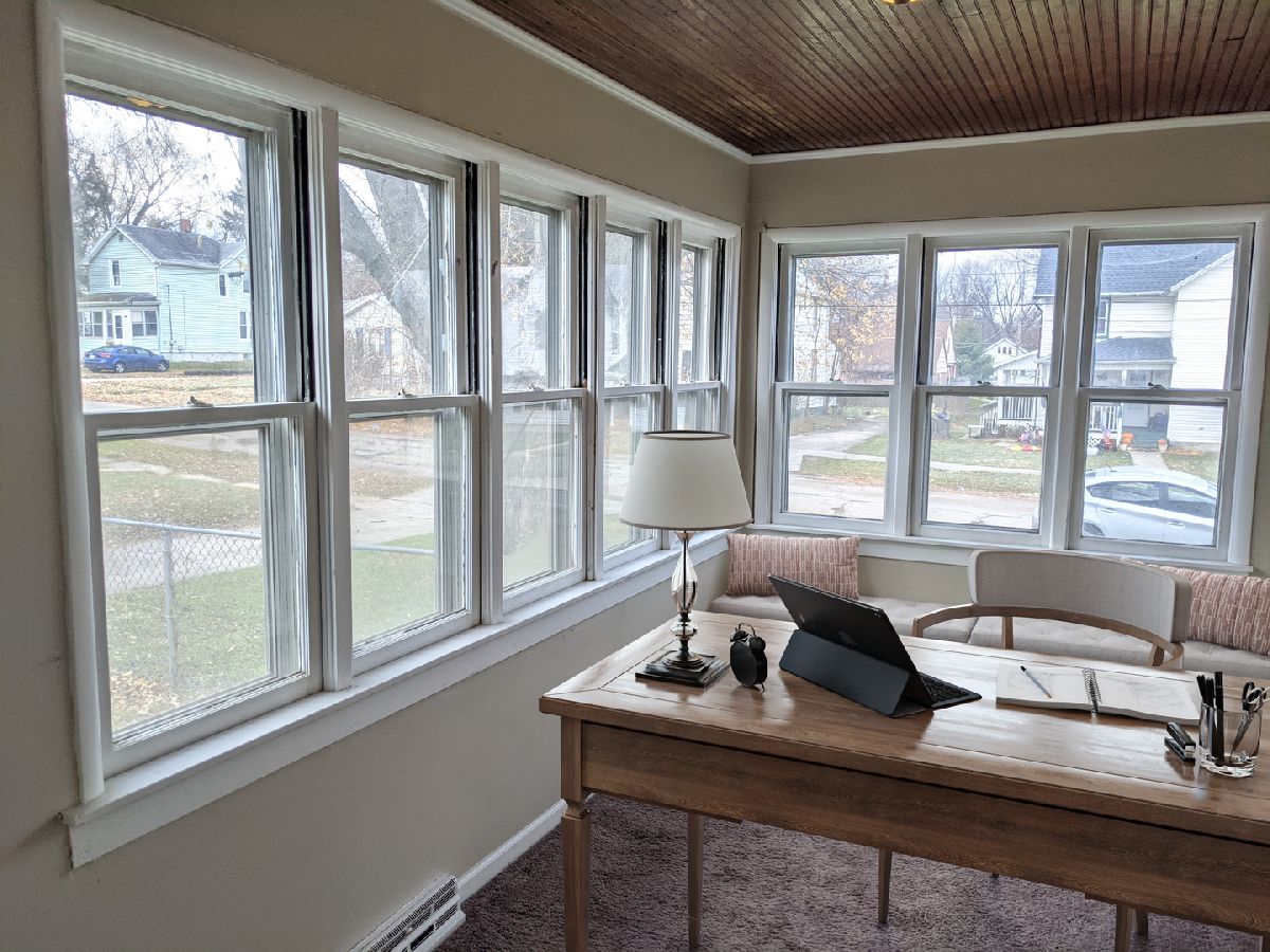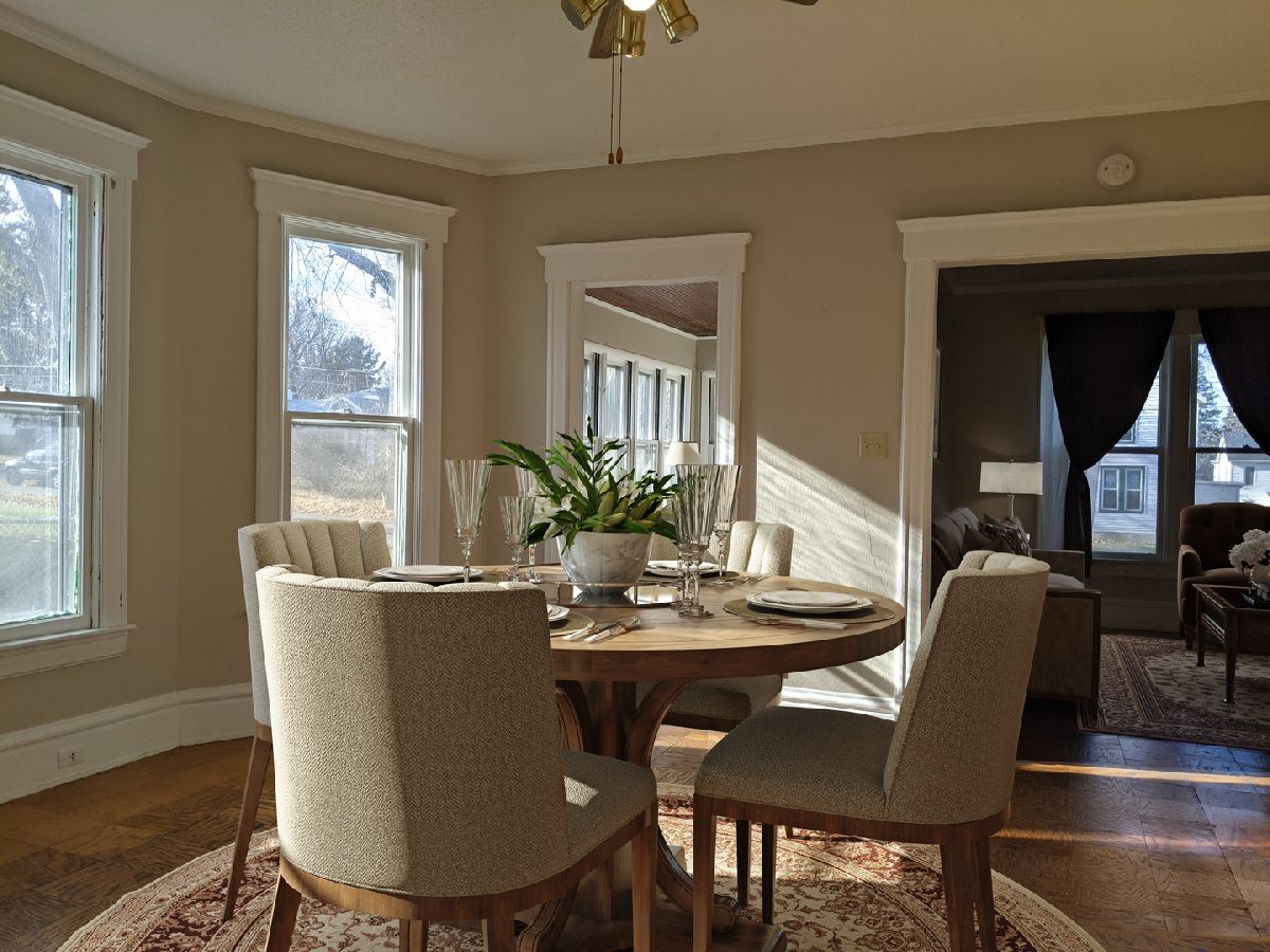 Not too big and not too small, with space for all! Main floor features living room, office, dining room, bedroom, kitchen and half bath. Upstairs features additional 3 bedrooms and full bath. The main floor office has tons of windows. The main floor bedroom has 3 closets. The kitchen has tons of cabinets. Plus you get an oversized 17' x 18' garage and a large fenced backyard. Updates include; 2021 Complete tear off, new sheeting and 35 year Architectural shingles. 2020 New 97% hi efficient furnace, new kitchen flooring, new stove. 2019 New paint, new carpet, refinish hardwood flooring, stained deck. 2008 New water and sewer lines to the street. Some furniture virtually staged.