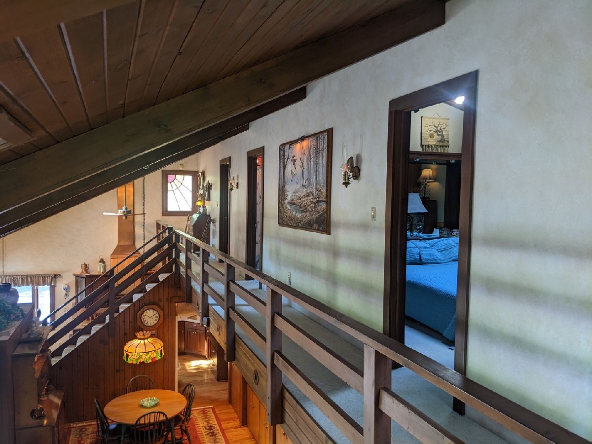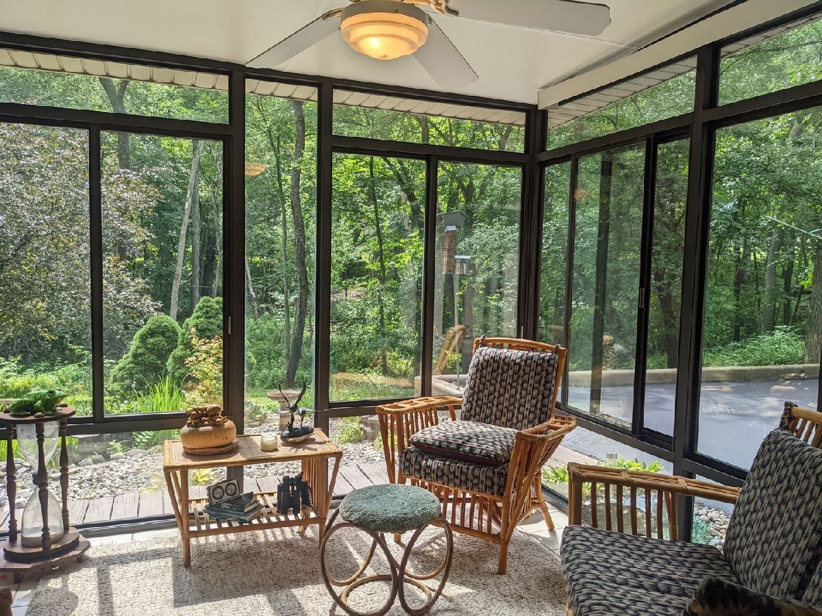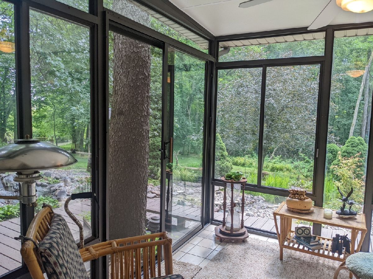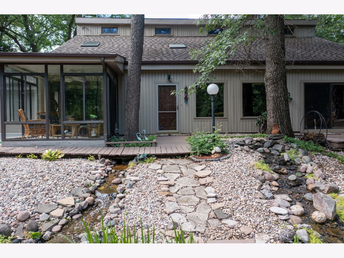 Tranquil escape from the City yet minutes to shopping and dining. Enjoy nature from the sunroom and let your worries fade as you listen to the cascading water. Only the 2nd owner, you'll feel the pride of ownership and care taken throughout. The cul-de-sac leads you first to your front deck where you'll want to sit and enjoy the wildlife drinking from your cascading waterfall and pond. Or you can continue on, looking over the Yellow Creek, sitting high above this steady flowing creek that leads to Krape Park or the Pecatonica River. Once you enter the home the views don't stop. Kitchen with granite counter tops, copper vent hood, expandable countertop space, built-in convection oven/microwave, built-in warming tray, and lots of storage. Vaulted open great room with windows everywhere, stone wood burning fireplace, built in bookcase, hardwood floors and dining area with built in bar and additional storage. Huge 3 car attached garage is 34' wide and 22' deep with pull down stairs to attic storage, plus more cabinets and shelving. From the garage you enter a large mud room, laundry room and half bath. In the back half of the main floor there is a spacious man cave and private bedroom/office, both with closets and could be turned in to a master suite. Upstairs are two vaulted bedrooms plus what could be 3rd/4th bedroom, office or sitting room.
