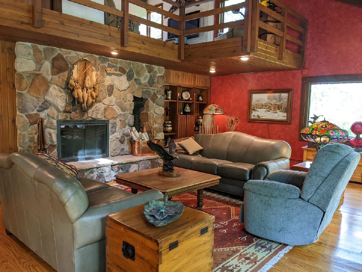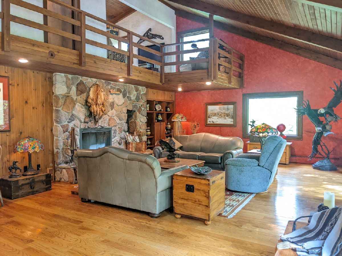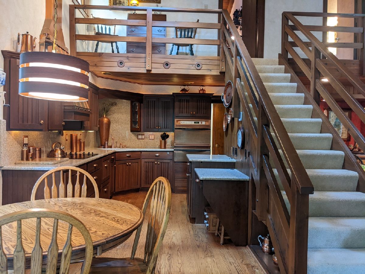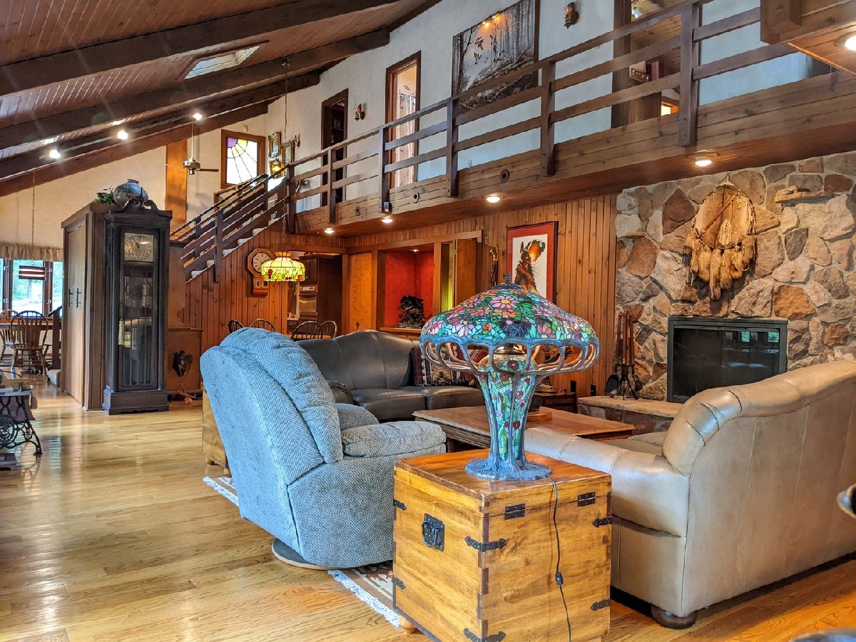 Tranquil escape from the City yet minutes to shopping and dining. Enjoy nature from the sunroom and let your worries fade as you listen to the cascading water. Only the 2nd owner, you'll feel the pride of ownership and care taken throughout. The cul-de-sac leads you first to your front deck where you'll want to sit and enjoy the wildlife drinking from your cascading waterfall and pond. Or you can continue on, looking over the Yellow Creek, sitting high above this steady flowing creek that leads to Krape Park or the Pecatonica River. Once you enter the home the views don't stop. Kitchen with granite counter tops, copper vent hood, expandable countertop space, built-in convection oven/microwave, built-in warming tray, and lots of storage. Vaulted open great room with windows everywhere, stone wood burning fireplace, built in bookcase, hardwood floors and dining area with built in bar and additional storage. Huge 3 car attached garage is 34' wide and 22' deep with pull down stairs to attic storage, plus more cabinets and shelving. From the garage you enter a large mud room, laundry room and half bath. In the back half of the main floor there is a spacious man cave and private bedroom/office, both with closets and could be turned in to a master suite. Upstairs are two vaulted bedrooms plus what could be 3rd/4th bedroom, office or sitting room.