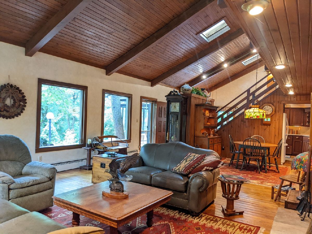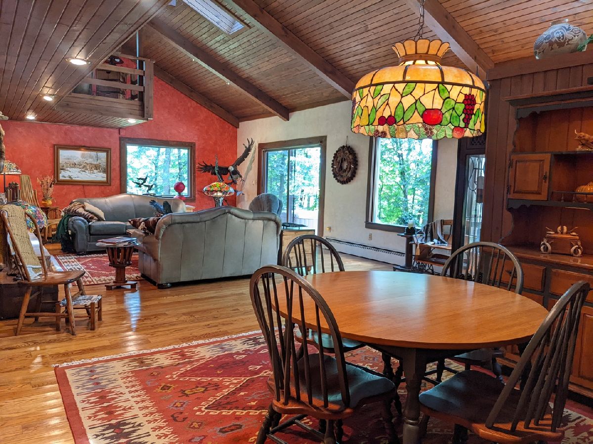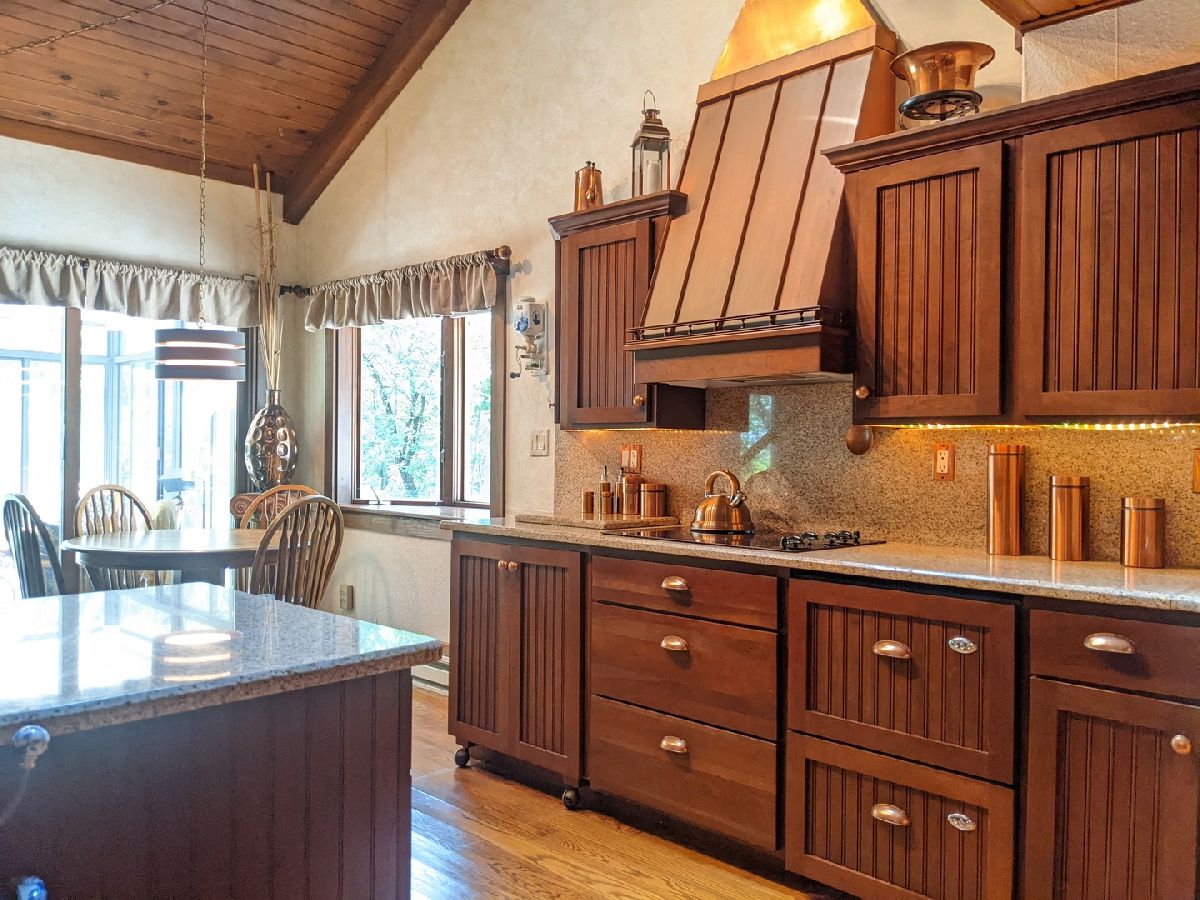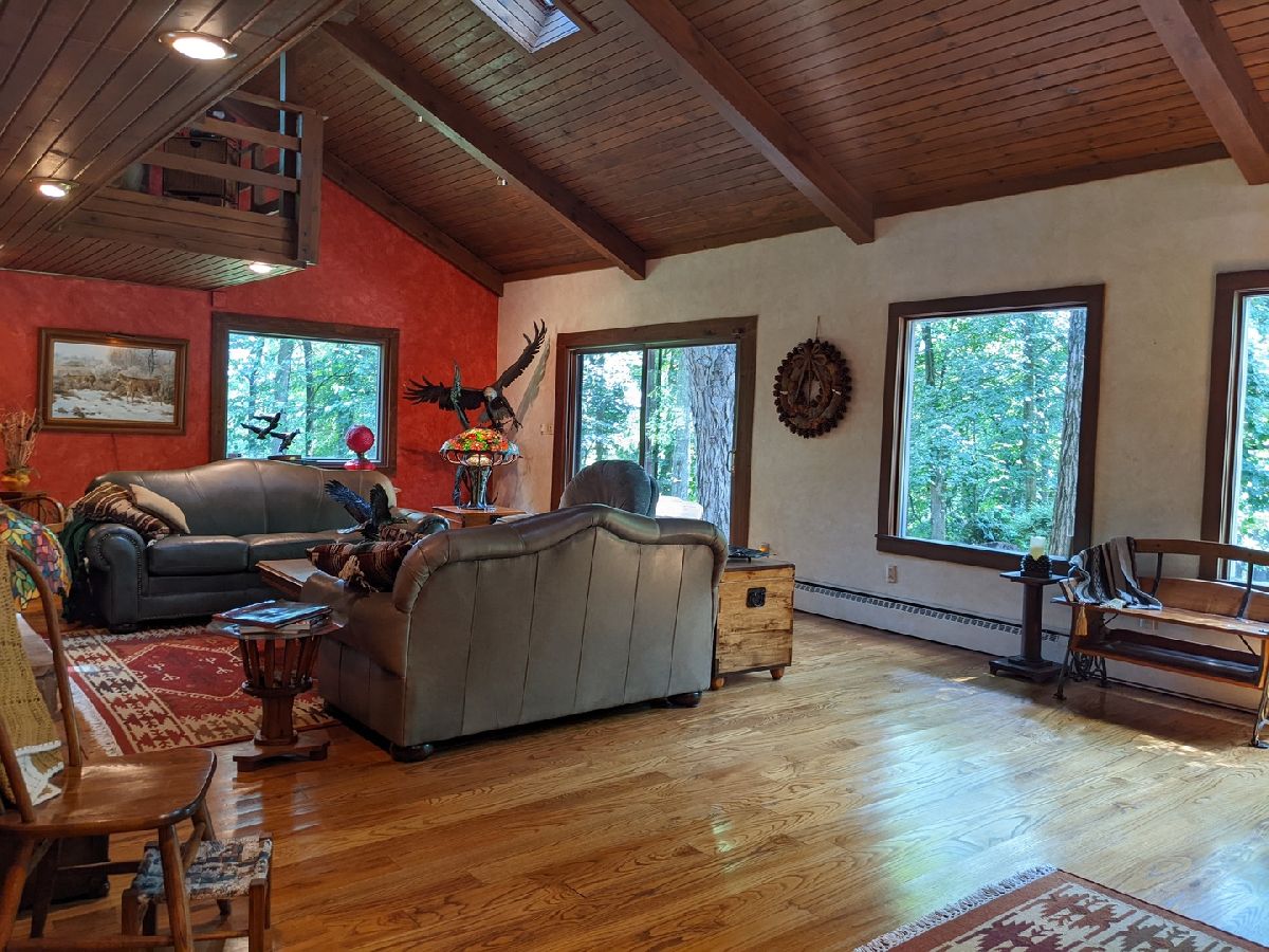 Tranquil escape from the City yet minutes to shopping and dining. Enjoy nature from the sunroom and let your worries fade as you listen to the cascading water. Only the 2nd owner, you'll feel the pride of ownership and care taken throughout. The cul-de-sac leads you first to your front deck where you'll want to sit and enjoy the wildlife drinking from your cascading waterfall and pond. Or you can continue on, looking over the Yellow Creek, sitting high above this steady flowing creek that leads to Krape Park or the Pecatonica River. Once you enter the home the views don't stop. Kitchen with granite counter tops, copper vent hood, expandable countertop space, built-in convection oven/microwave, built-in warming tray, and lots of storage. Vaulted open great room with windows everywhere, stone wood burning fireplace, built in bookcase, hardwood floors and dining area with built in bar and additional storage. Huge 3 car attached garage is 34' wide and 22' deep with pull down stairs to attic storage, plus more cabinets and shelving. From the garage you enter a large mud room, laundry room and half bath. In the back half of the main floor there is a spacious man cave and private bedroom/office, both with closets and could be turned in to a master suite. Upstairs are two vaulted bedrooms plus what could be 3rd/4th bedroom, office or sitting room.