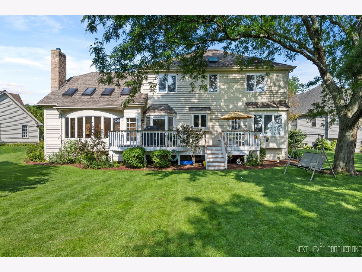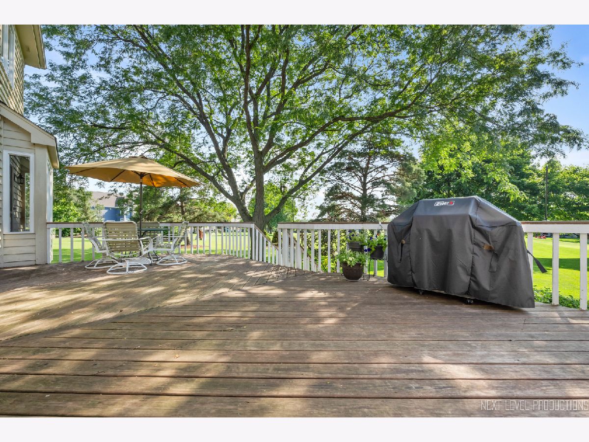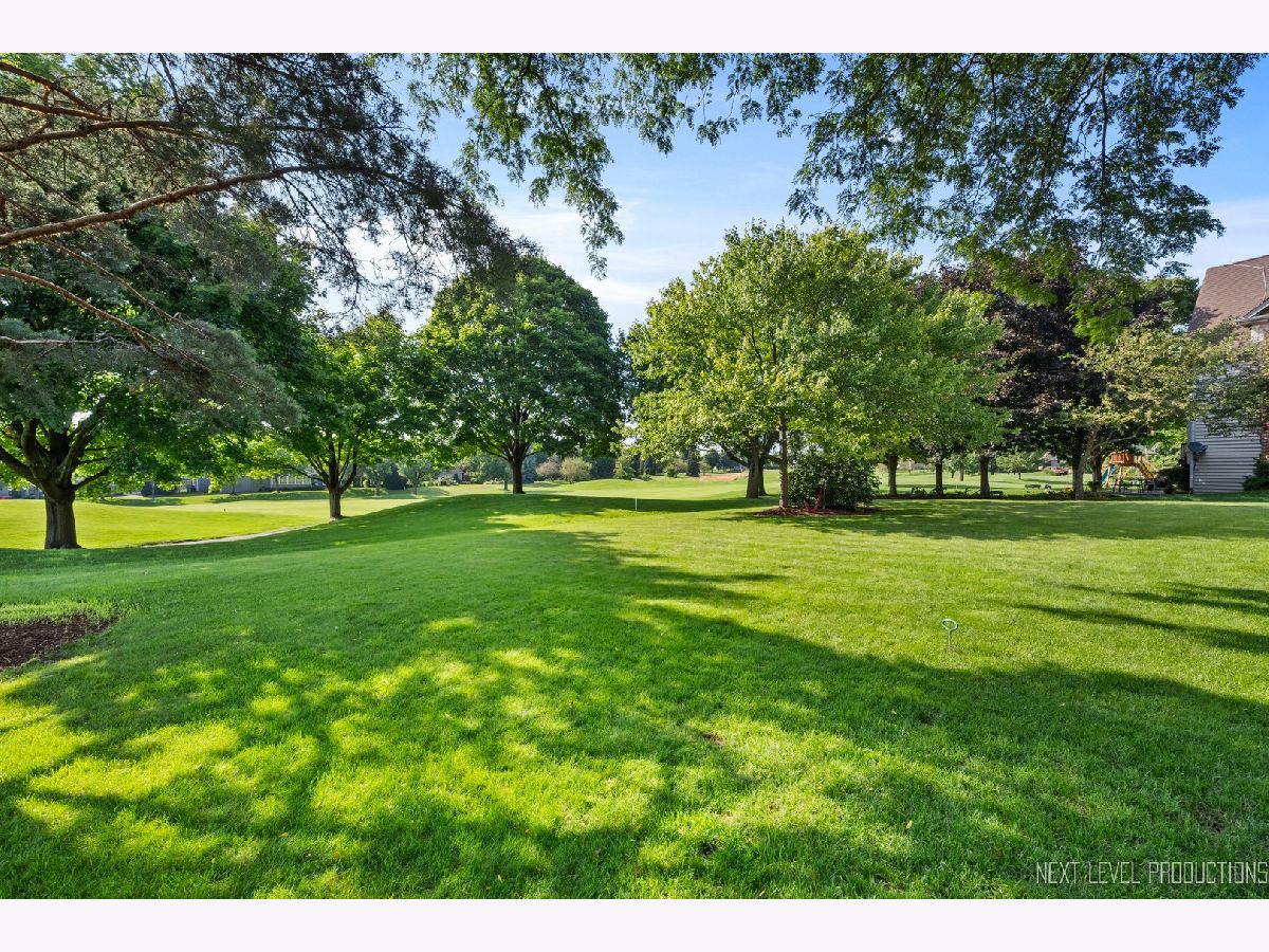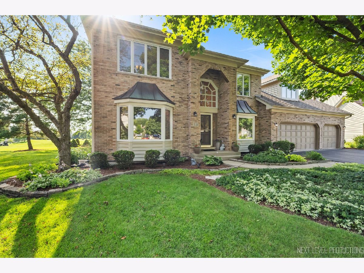 EAGLE BROOK BEAUTY. Sitting on a peaceful cul-de-sac on one of the most spectacular lots in the entire subdivision, this 4 bed + Den, 3 full bath, 3 car home is perched perfectly with enviable views of the 13th green. Unbelievable western sunsets are on tap nightly. This solidly built home has had only one owner and has been meticulously maintained. Gorgeous views from every window, make for the perfect backdrop to every room in the home. There is over 3000 sq feet in this Keim Built Canterbury Model. The main floor boasts a white kitchen with new tile backsplash and stainless steel appliances, there is a two-story family room with a soaring fireplace, good sized living room and dining room and an office overlooking the backyard. There is also a full bathroom with a shower and a laundry room with outside access on the main level. The second floor has a spacious primary suite with hardwood floors, dual-closets, and double sinks along with a soaker tub and shower. There is new carpet throughout the rest of the bedrooms. Hardwood flooring carries throughout the hallway upstairs as well. Each Room has WIC's. Custom moulding and trim work run throughout the entire property. Updates on this home include: Newly painted interior, updated lighting, Roof 2019 (plus one new skylight), Washer/Dryer - 2021, New shower surround 2023, furnace 2019, drywalled and newly painted garage, exterior cedar stained 2023, new carpet upstairs and updated exterior lighting. Skies the limit with the unfinished lookout basement - there is a TON of space to finish off if buyer desires. This property is close to downtown Geneva where you will find an eclectic array of restaurants, adorable shoppes and the metra train. You are centrally located to all of the schools and close to walking and bike paths. Randall Road, which boasts all your major shopping centers, is only 5 minutes away. Geneva is a town that caters to all their residents with award winning schools, vibrant park district and yearlong activities and festivals. There is never a lack for things to do - Come tour and fall in love with 1608 Bunker Court in Geneva. Make it your new home today!