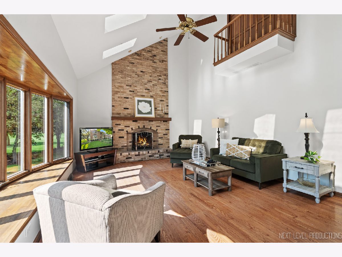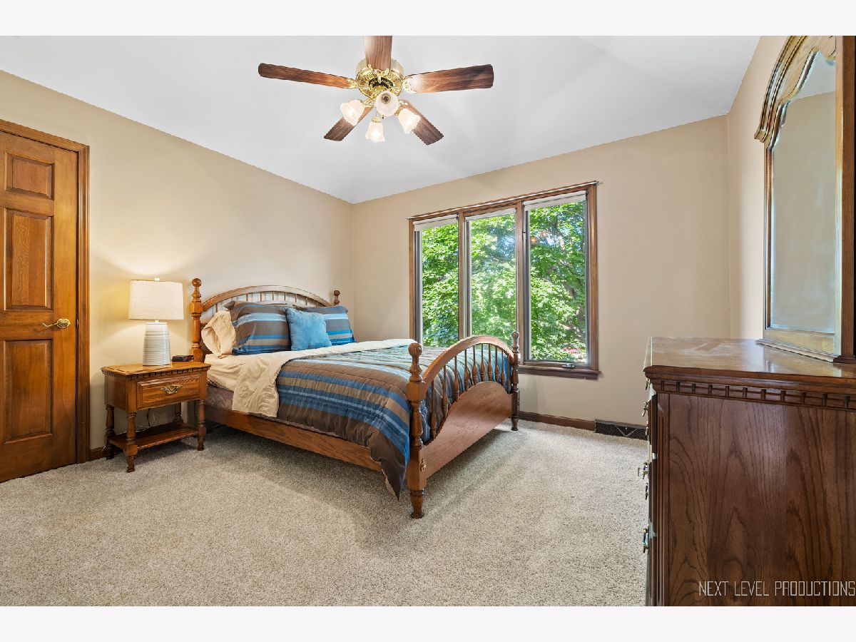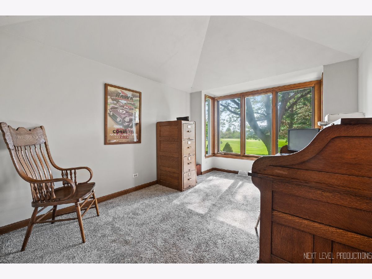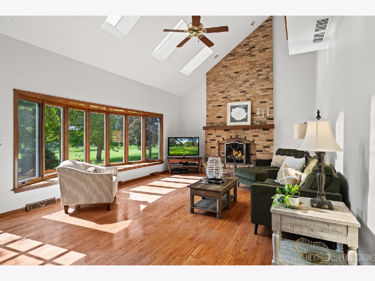 EAGLE BROOK BEAUTY. Sitting on a peaceful cul-de-sac on one of the most spectacular lots in the entire subdivision, this 4 bed + Den, 3 full bath, 3 car home is perched perfectly with enviable views of the 13th green. Unbelievable western sunsets are on tap nightly. This solidly built home has had only one owner and has been meticulously maintained. Gorgeous views from every window, make for the perfect backdrop to every room in the home. There is over 3000 sq feet in this Keim Built Canterbury Model. The main floor boasts a white kitchen with new tile backsplash and stainless steel appliances, there is a two-story family room with a soaring fireplace, good sized living room and dining room and an office overlooking the backyard. There is also a full bathroom with a shower and a laundry room with outside access on the main level. The second floor has a spacious primary suite with hardwood floors, dual-closets, and double sinks along with a soaker tub and shower. There is new carpet throughout the rest of the bedrooms. Hardwood flooring carries throughout the hallway upstairs as well. Each Room has WIC's. Custom moulding and trim work run throughout the entire property. Updates on this home include: Newly painted interior, updated lighting, Roof 2019 (plus one new skylight), Washer/Dryer - 2021, New shower surround 2023, furnace 2019, drywalled and newly painted garage, exterior cedar stained 2023, new carpet upstairs and updated exterior lighting. Skies the limit with the unfinished lookout basement - there is a TON of space to finish off if buyer desires. This property is close to downtown Geneva where you will find an eclectic array of restaurants, adorable shoppes and the metra train. You are centrally located to all of the schools and close to walking and bike paths. Randall Road, which boasts all your major shopping centers, is only 5 minutes away. Geneva is a town that caters to all their residents with award winning schools, vibrant park district and yearlong activities and festivals. There is never a lack for things to do - Come tour and fall in love with 1608 Bunker Court in Geneva. Make it your new home today!