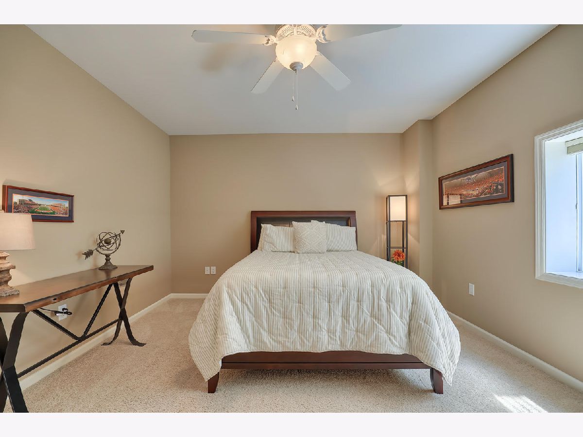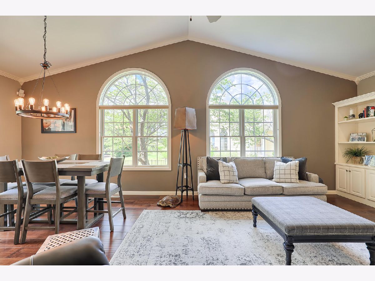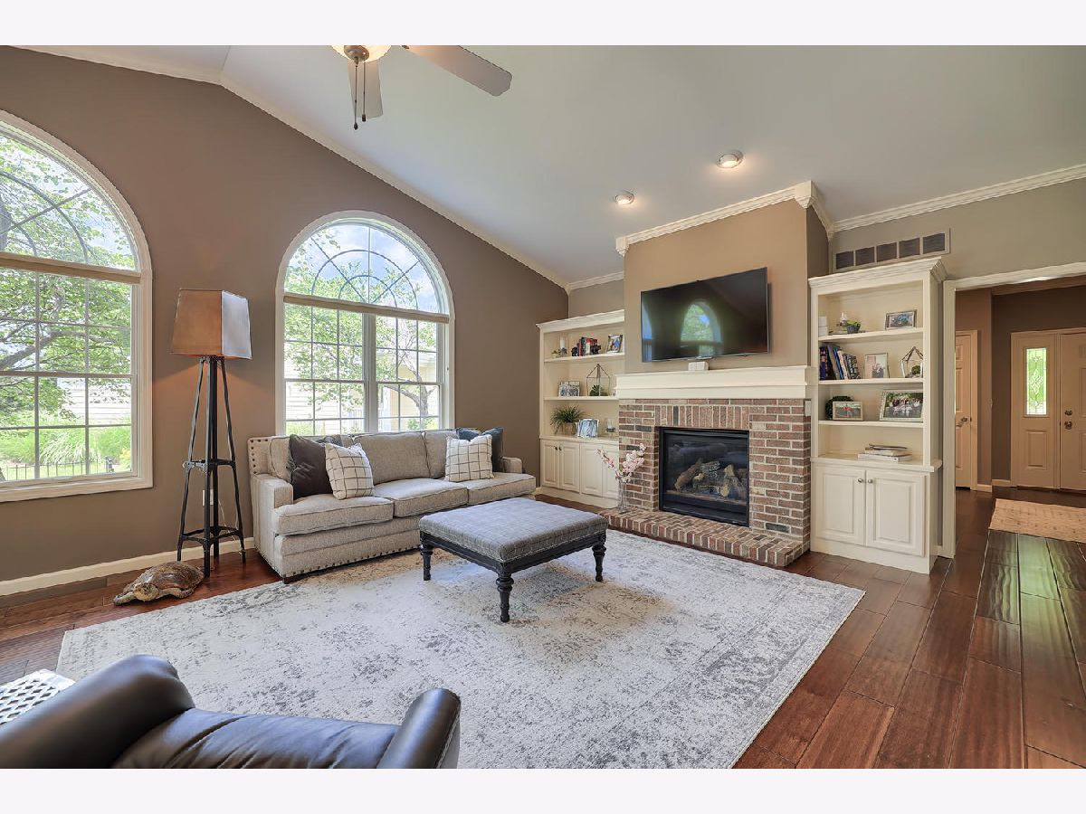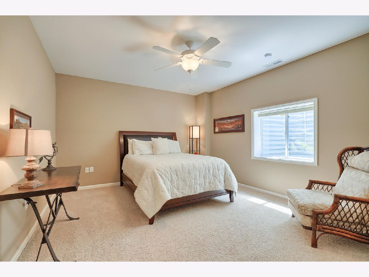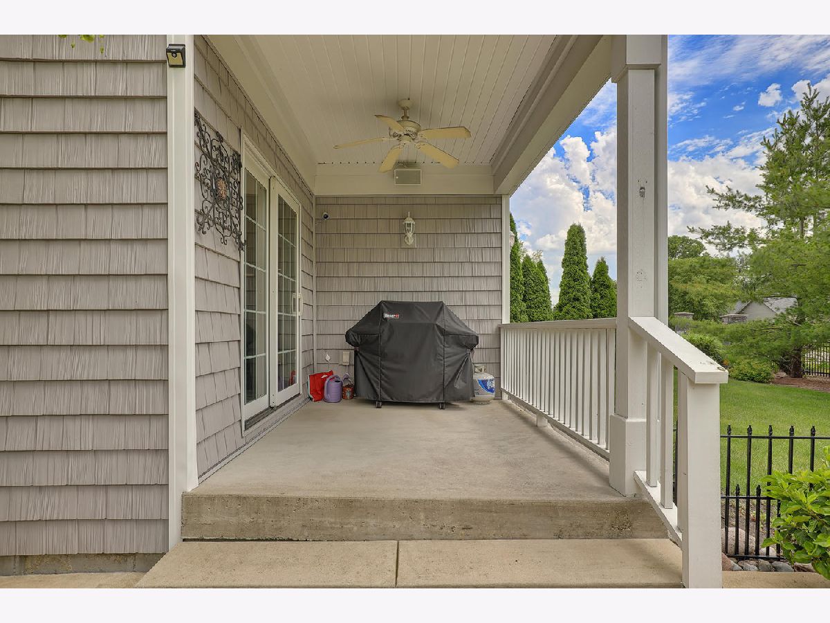 This beautiful condo at The Greens at Lincolnshire Fields will leave you breathless with it's amazing floor plan, tall ceilings, and gorgeous interior features! The first floor opens to a spacious foyer enriched with beautiful dark hardwood floors and high-end crown molding throughout. The sunny and open living room is adorned with large picturesque windows, dramatic vaulted ceilings, and a stunning gas log fireplace with brick surround and built in bookcases. Adjacent is the expertly designed kitchen which offers granite countertops, white cabinets, under-the-cabinet lighting, well-chosen light fixtures, and a stunning glass tile backsplash which creates the perfect blend of style and functionality with its high-end stainless-steel appliances, double oven, vented range hood that is vented to the outside, and a breakfast bar with a roomy dining area. Off the dining area is a sliding glass door entrance to the comfortable covered porch leading to the back private patio and fenced-in backyard, all perfectly situated on the end unit lot creating ample amounts of yard space to enjoy. The main floor also includes a very organized and functional laundry room with tons of cabinet space and a convenient sink, two bedrooms; one being the impressive master which includes two full master baths and an oversized master closet that connects the two bathrooms. One master bath includes a jetted tub and the other offers a walk-in shower increasing the overall functionality of the home and creating a sense of ease. The finished basement provides a gracious 3rd bedroom with double closets, full bath, large family room and two additional rooms for storage. Not without mention, this home has wonderful curb appeal with its timeless stone exterior, professional landscaping, and a nicely sized two-car garage. Peace of mind maintenance includes a pre-inspection for buyers convenience, updated light fixtures throughout, newer washer and dryer that stays with the home and newer paint throughout. HOA fee covers exterior maintenance, snow removal, lawn care, exterior insurance, and trash removal. The commons area features putting greens and a fire pit for added enjoyment. Come view this immaculate condo today!