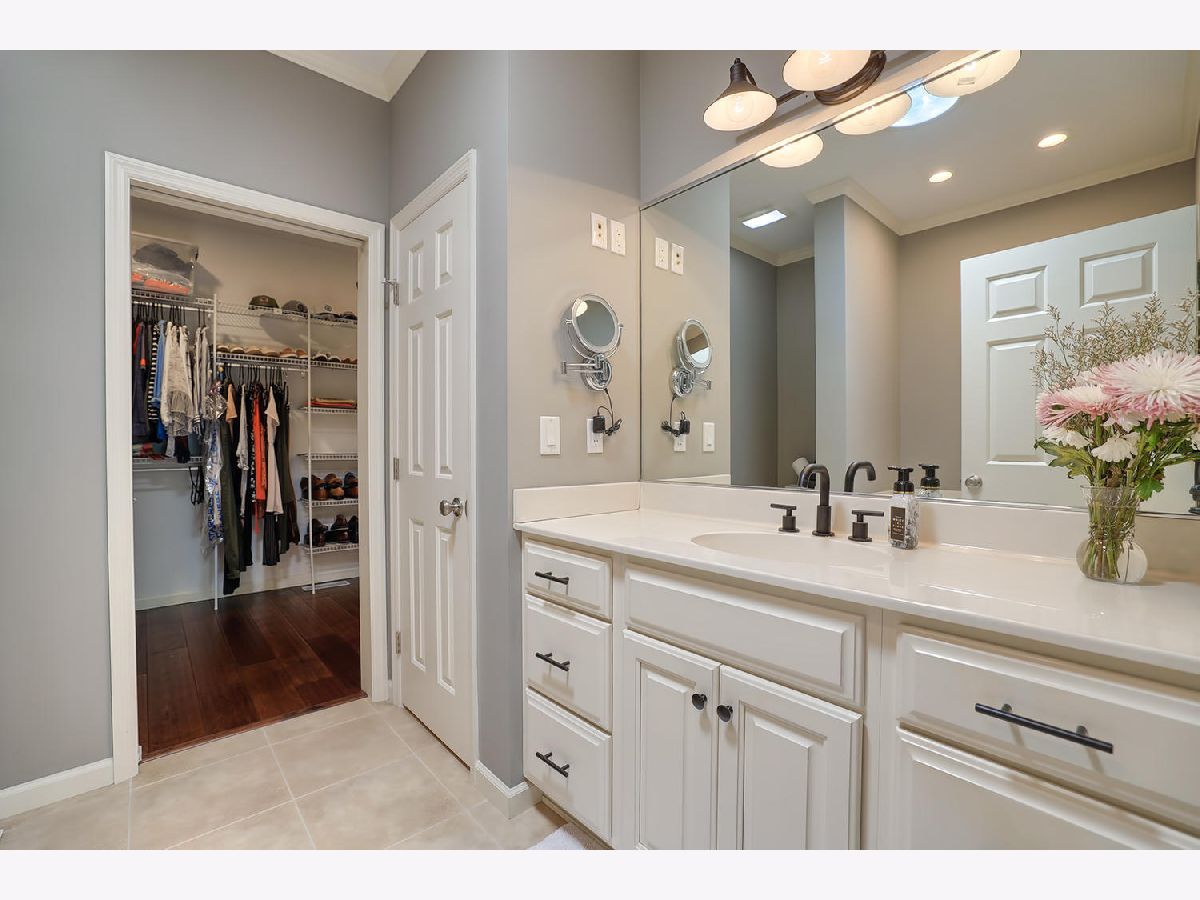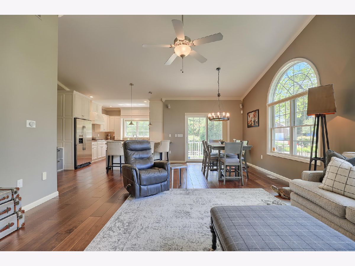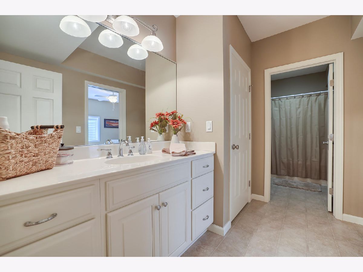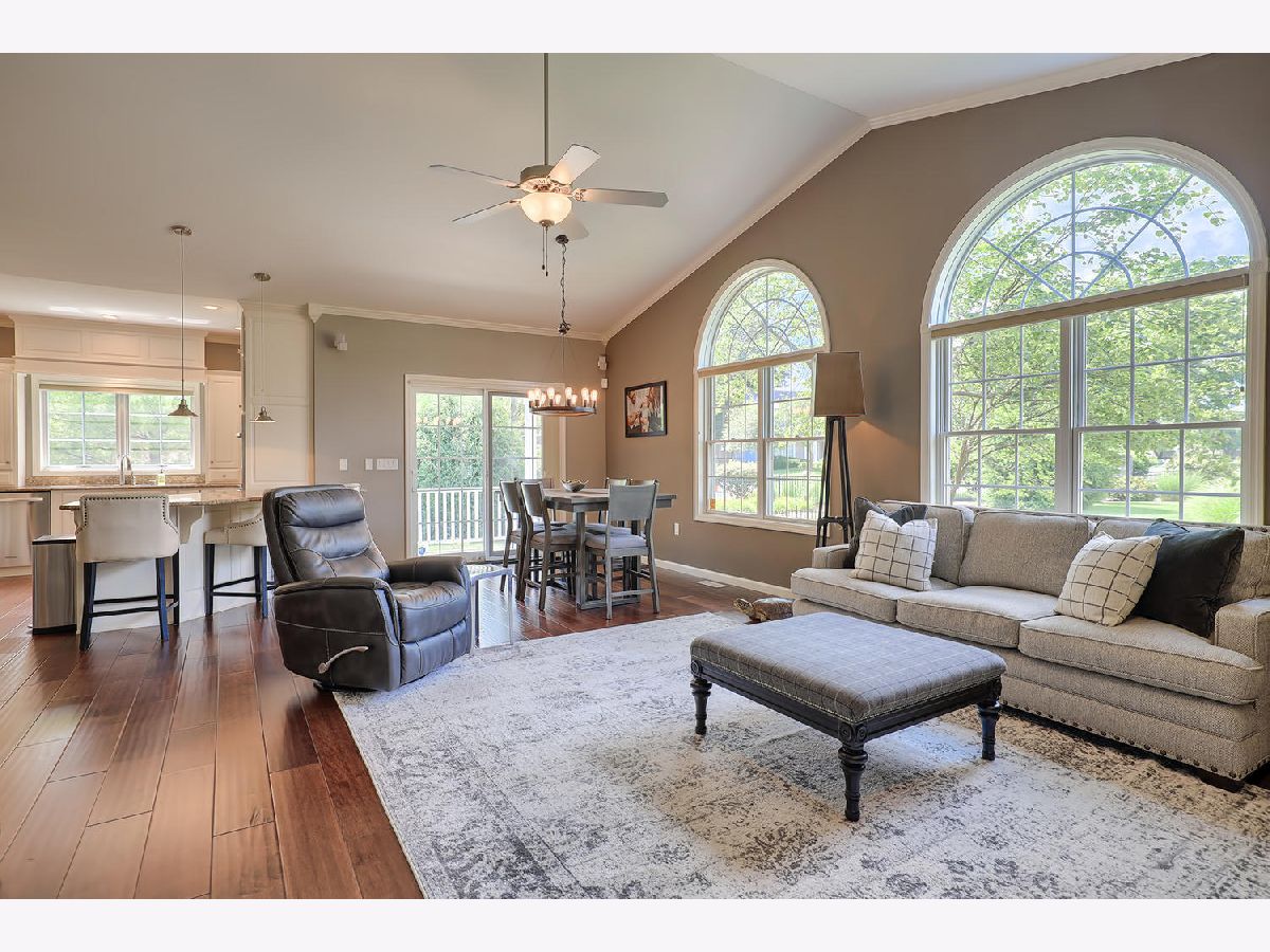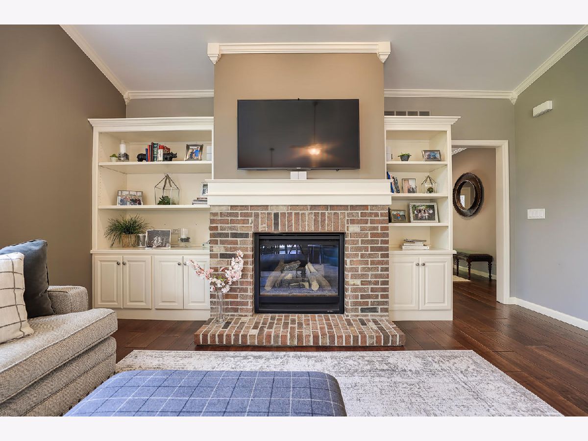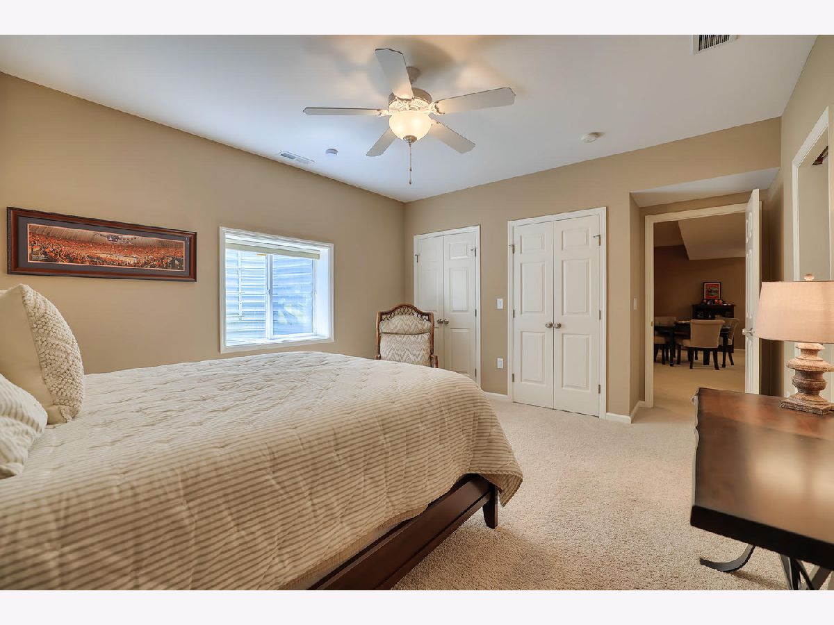 This beautiful condo at The Greens at Lincolnshire Fields will leave you breathless with it's amazing floor plan, tall ceilings, and gorgeous interior features! The first floor opens to a spacious foyer enriched with beautiful dark hardwood floors and high-end crown molding throughout. The sunny and open living room is adorned with large picturesque windows, dramatic vaulted ceilings, and a stunning gas log fireplace with brick surround and built in bookcases. Adjacent is the expertly designed kitchen which offers granite countertops, white cabinets, under-the-cabinet lighting, well-chosen light fixtures, and a stunning glass tile backsplash which creates the perfect blend of style and functionality with its high-end stainless-steel appliances, double oven, vented range hood that is vented to the outside, and a breakfast bar with a roomy dining area. Off the dining area is a sliding glass door entrance to the comfortable covered porch leading to the back private patio and fenced-in backyard, all perfectly situated on the end unit lot creating ample amounts of yard space to enjoy. The main floor also includes a very organized and functional laundry room with tons of cabinet space and a convenient sink, two bedrooms; one being the impressive master which includes two full master baths and an oversized master closet that connects the two bathrooms. One master bath includes a jetted tub and the other offers a walk-in shower increasing the overall functionality of the home and creating a sense of ease. The finished basement provides a gracious 3rd bedroom with double closets, full bath, large family room and two additional rooms for storage. Not without mention, this home has wonderful curb appeal with its timeless stone exterior, professional landscaping, and a nicely sized two-car garage. Peace of mind maintenance includes a pre-inspection for buyers convenience, updated light fixtures throughout, newer washer and dryer that stays with the home and newer paint throughout. HOA fee covers exterior maintenance, snow removal, lawn care, exterior insurance, and trash removal. The commons area features putting greens and a fire pit for added enjoyment. Come view this immaculate condo today!