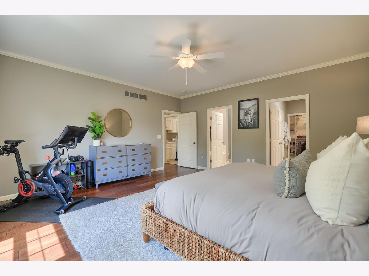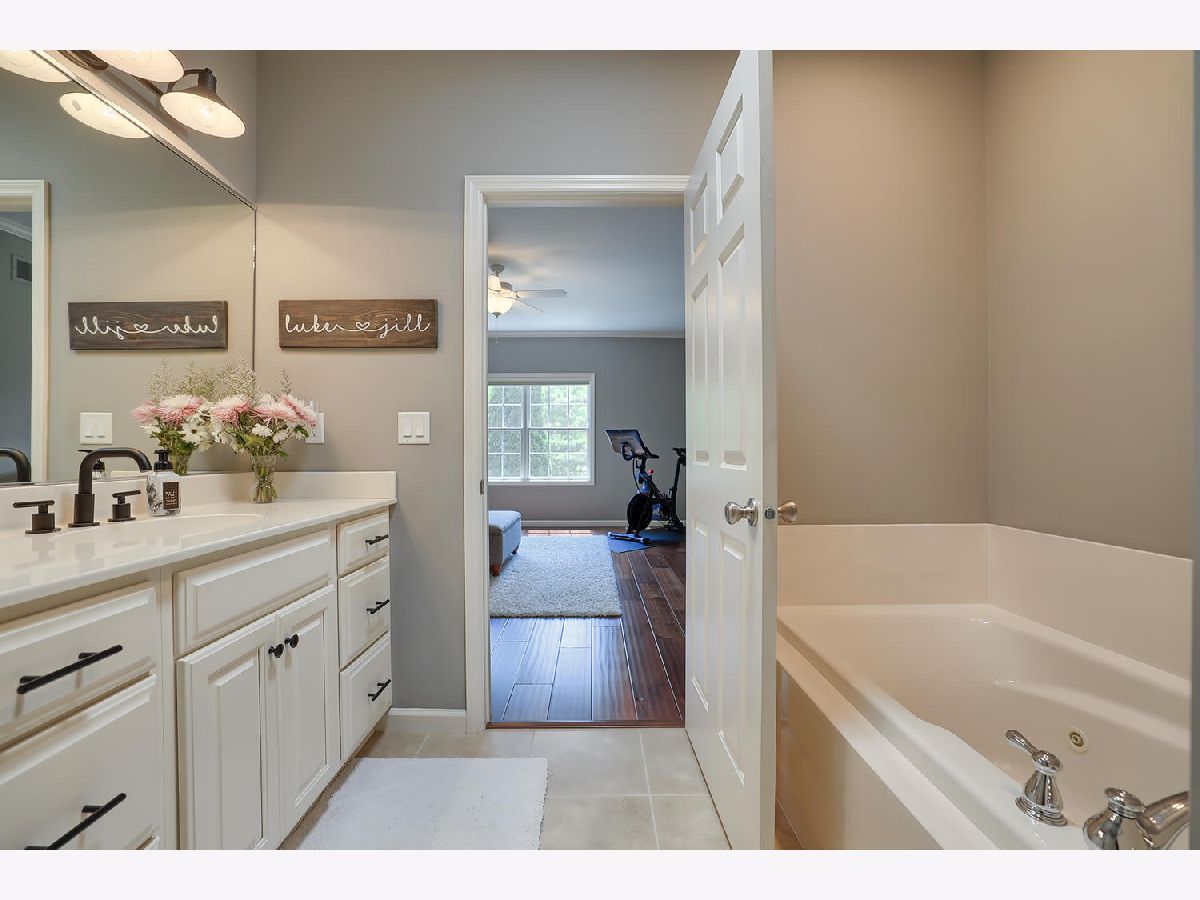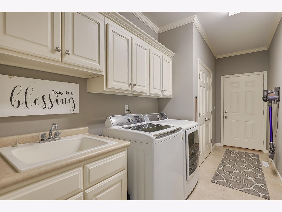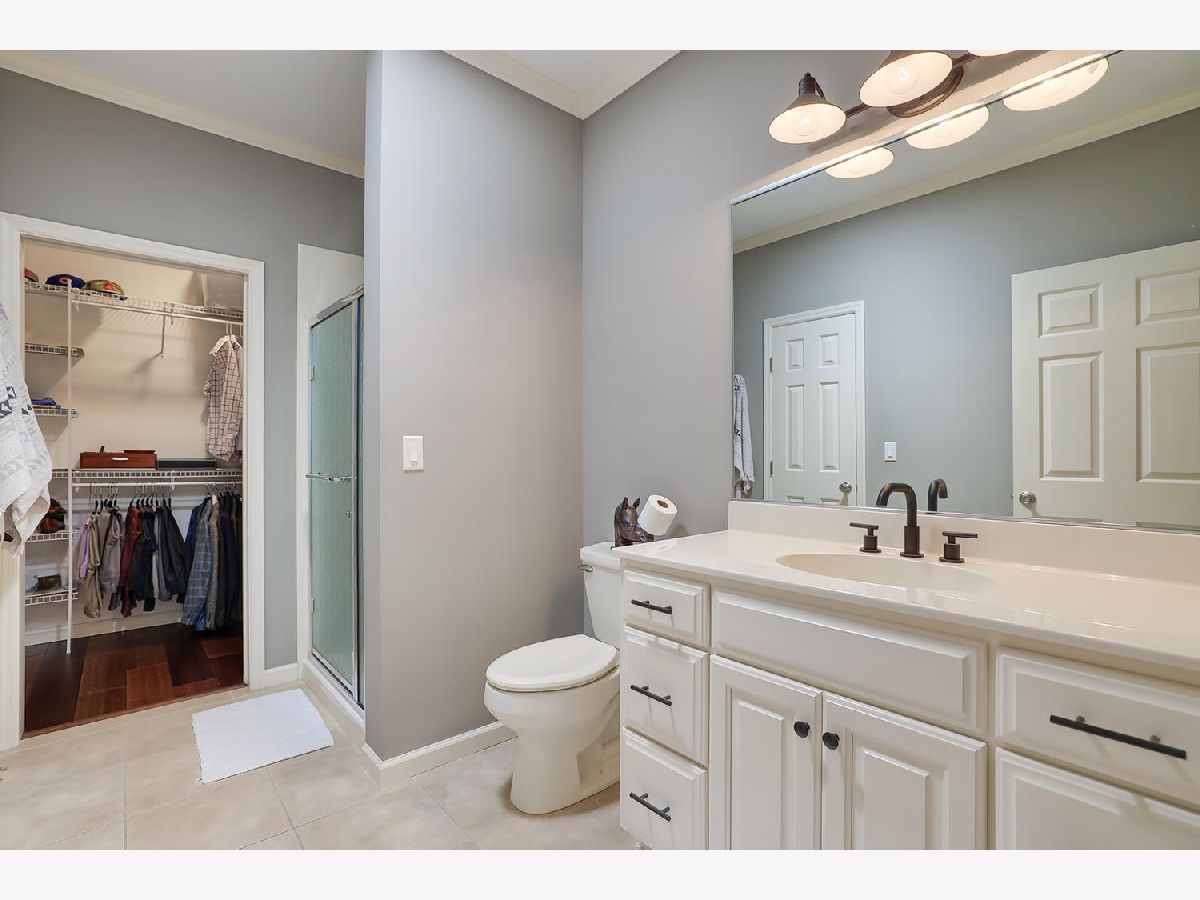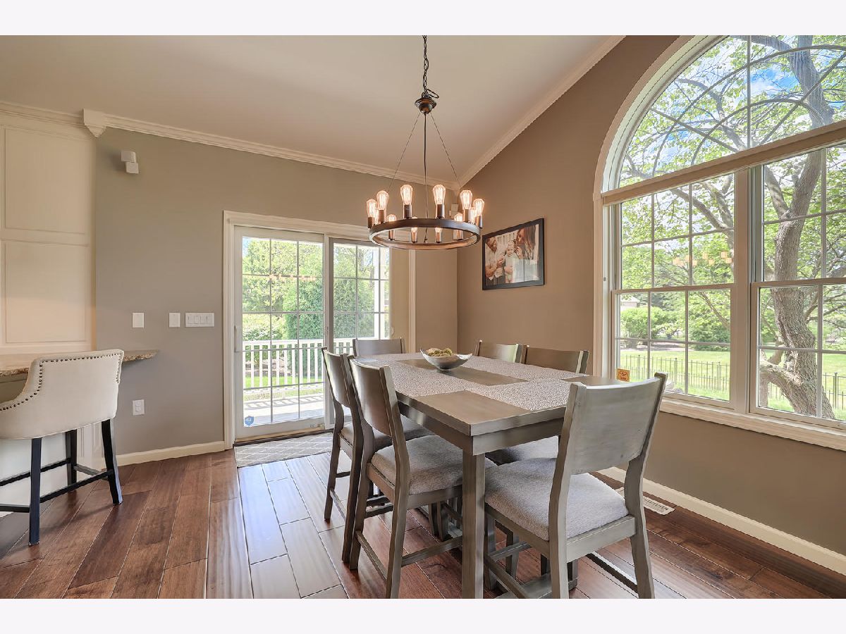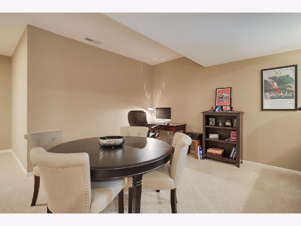 This beautiful condo at The Greens at Lincolnshire Fields will leave you breathless with it's amazing floor plan, tall ceilings, and gorgeous interior features! The first floor opens to a spacious foyer enriched with beautiful dark hardwood floors and high-end crown molding throughout. The sunny and open living room is adorned with large picturesque windows, dramatic vaulted ceilings, and a stunning gas log fireplace with brick surround and built in bookcases. Adjacent is the expertly designed kitchen which offers granite countertops, white cabinets, under-the-cabinet lighting, well-chosen light fixtures, and a stunning glass tile backsplash which creates the perfect blend of style and functionality with its high-end stainless-steel appliances, double oven, vented range hood that is vented to the outside, and a breakfast bar with a roomy dining area. Off the dining area is a sliding glass door entrance to the comfortable covered porch leading to the back private patio and fenced-in backyard, all perfectly situated on the end unit lot creating ample amounts of yard space to enjoy. The main floor also includes a very organized and functional laundry room with tons of cabinet space and a convenient sink, two bedrooms; one being the impressive master which includes two full master baths and an oversized master closet that connects the two bathrooms. One master bath includes a jetted tub and the other offers a walk-in shower increasing the overall functionality of the home and creating a sense of ease. The finished basement provides a gracious 3rd bedroom with double closets, full bath, large family room and two additional rooms for storage. Not without mention, this home has wonderful curb appeal with its timeless stone exterior, professional landscaping, and a nicely sized two-car garage. Peace of mind maintenance includes a pre-inspection for buyers convenience, updated light fixtures throughout, newer washer and dryer that stays with the home and newer paint throughout. HOA fee covers exterior maintenance, snow removal, lawn care, exterior insurance, and trash removal. The commons area features putting greens and a fire pit for added enjoyment. Come view this immaculate condo today!