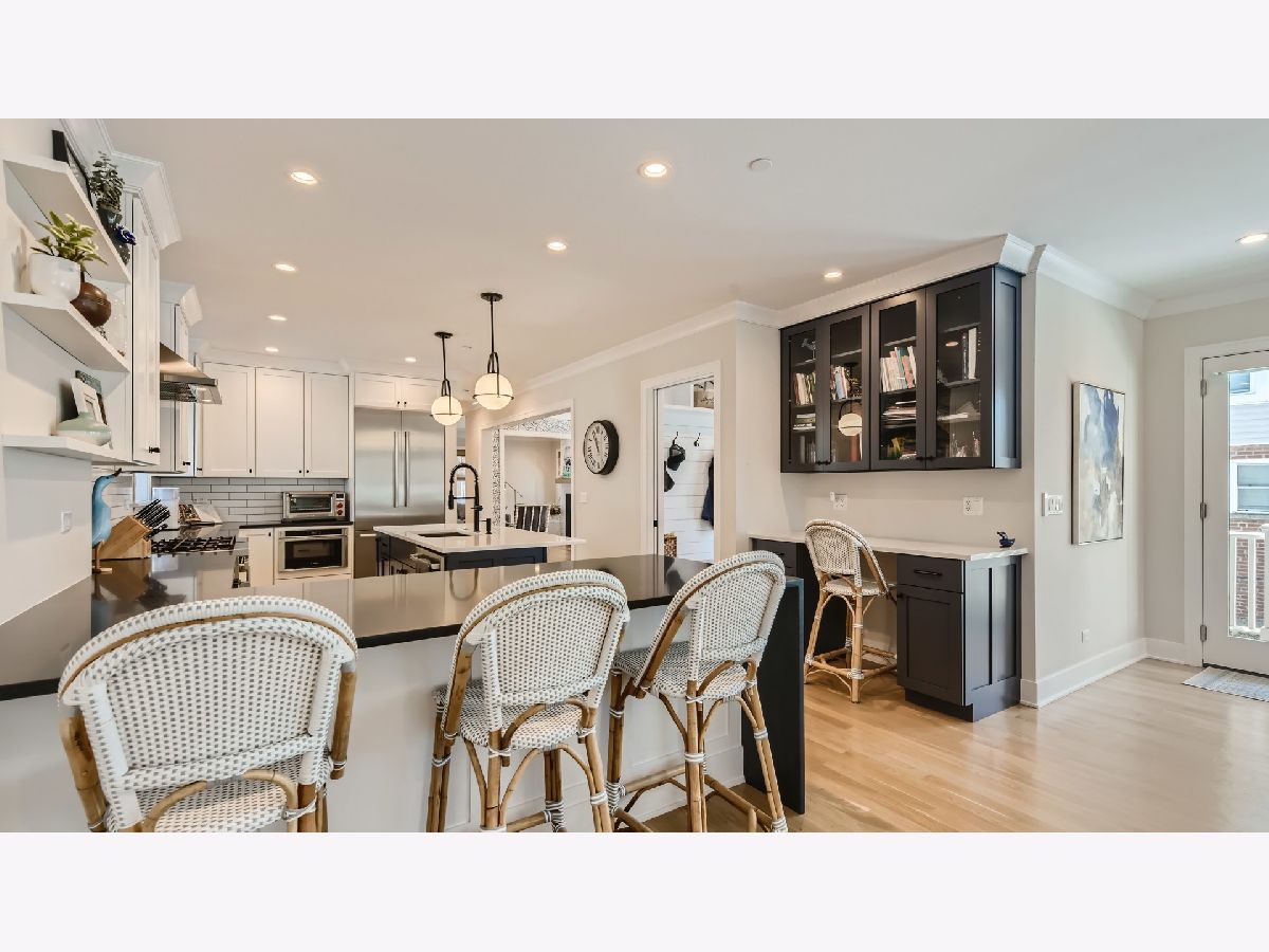 If the only time you see your dream home is when you're asleep we've got great news for you! Welcome to 1608 Courtland, the home that can turn that dream into reality. Built in 2021, this 5 bed (4 up/1 basement), 3.1 bath, 2.5 car detached garage home has every high end feature your heart could desire and a build quality that's second to none. Inviting from the moment you approach the wrap around porch provides a cozy place to relax and enjoy your peaceful tree lined street. The first-floor features hardwood floors and crown molding throughout. The living room off the entry offers lots of natural light and is centered around a handsome stone fireplace with wood accent wall. The formal dining room features gorgeous designer wallpaper and eye catching light fixture that make it the perfect setting for family meals. Your clean and chic kitchen checks all the boxes for impeccable design, high end finishes and functionality. The perimeter features honed absolute black counters, breakfast bar, range with hood, subway tile back-splash and white shaker cabinets. Contrasting large center island with Carrara Everest Quartz countertop, black cabinets and show stopping pendant light fixtures is as functional as it is beautiful providing additional prep space, sink and dishwasher. No matter if you're a Michelin starred chef or merely a novice this kitchen is all you could want and more. Rounding out the first floor is a family room with gas fireplace, mudroom off the driveway entrance and half bath. The second level of the home features 4 bedrooms all with hardwood floors, including a primary suite with vaulted ceiling, his and hers walk in closets and bathroom with dual vanity, spa-like walk in shower and separate water closet. Additionally, the second floor features another full bath with dual vanity and shower/tub combo and a 2nd floor laundry room. The full finished basement has a 5th bedroom that could also be a home office, wet-bar, full bath with walk-in shower, storage, 2nd laundry room and large family room. Out back you'll find a fenced yard with electronic security fence at the driveway, 2.5 car detached garage and custom paver-brick patio perfect for enjoying the approaching summer! All of this paired with amazing Park Ridge location that has highly rated schools, close to O'Hare, interstates, restaurants and entertainment make this a not to miss opportunity to make the house you've been dreaming about the house you actually live in.