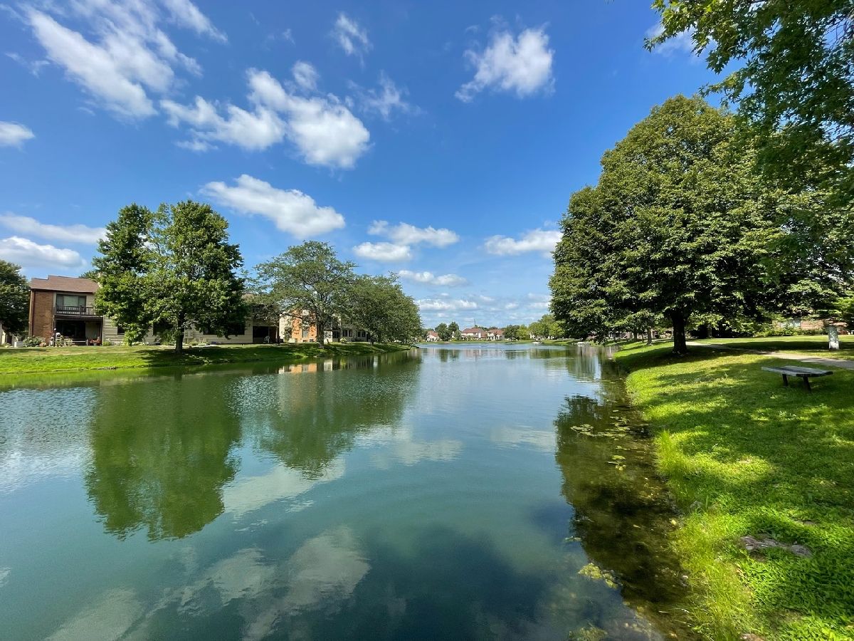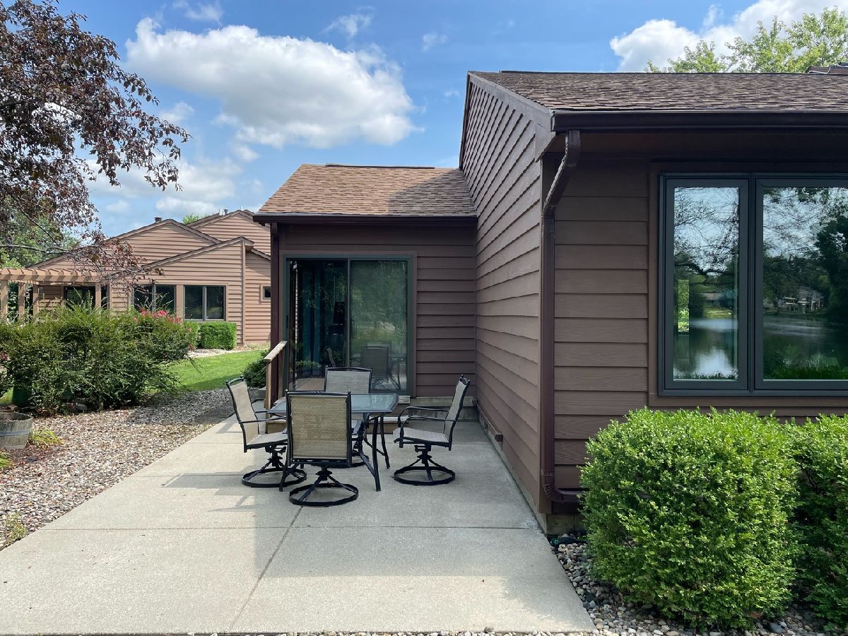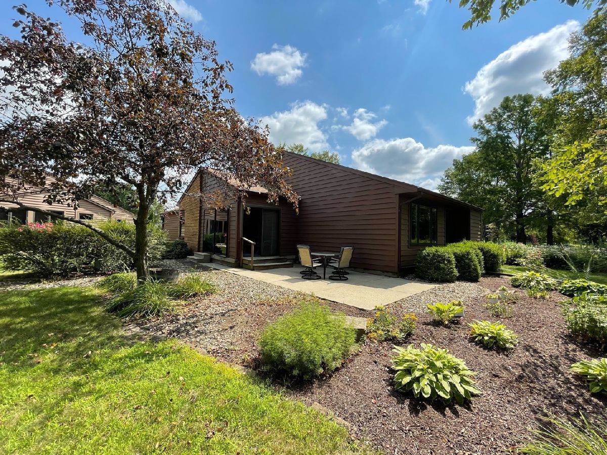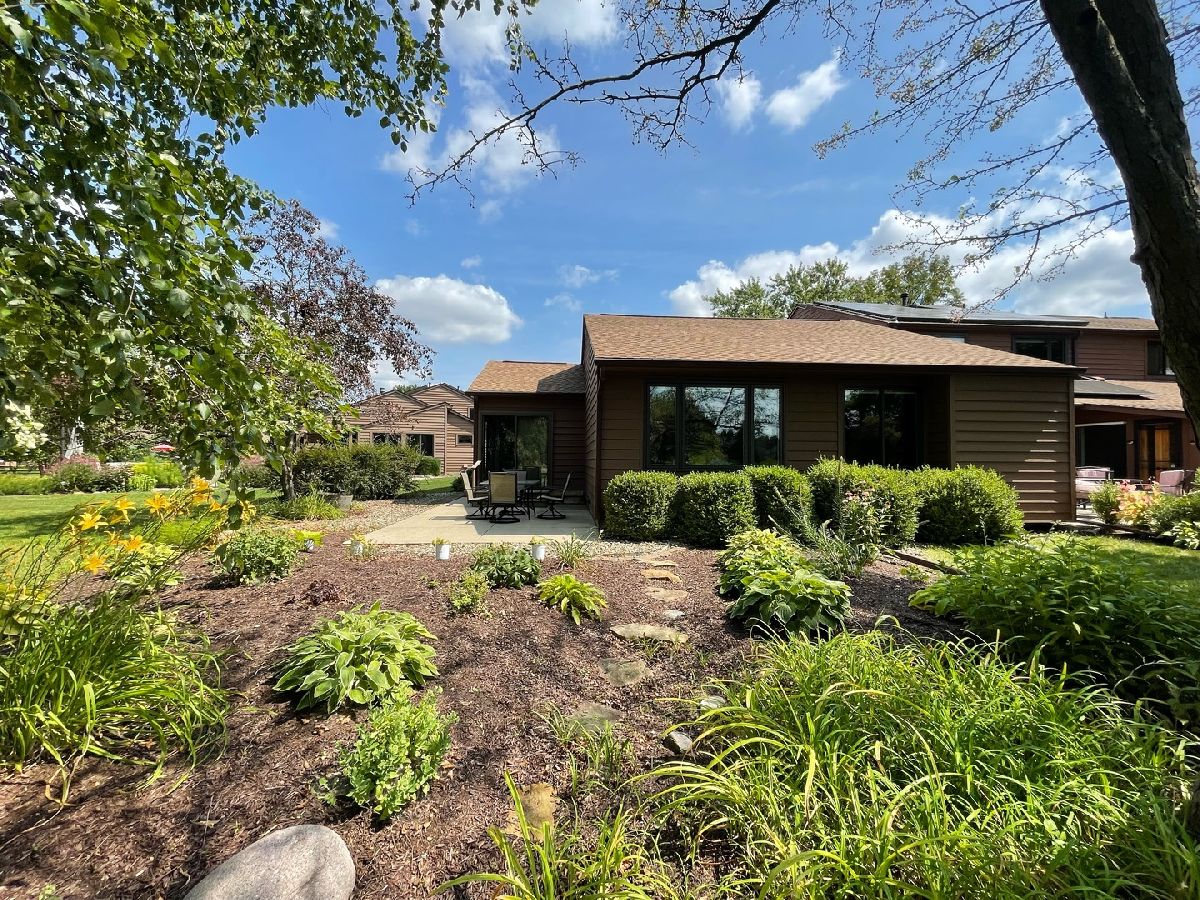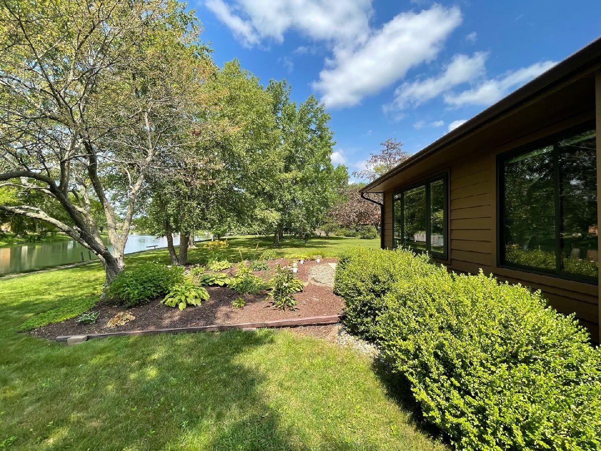Easy living awaits in this one story zero lot sitting back on a cul-de-sac with multiple water views just off Devonshire Dr in Champaign! A beautifully landscaped path leads inside where you'll discover a spacious living room highlighted by vaulted ceilings and grand fireplace. The galley kitchen open to a breakfast nook and incredible sunroom with spectacular views. The primary bedrooms offers another water view plus a private half bath. A second bedroom and full bath complete the tour. Enjoy the gorgeous sunshine and peaceful water out on the back patio!