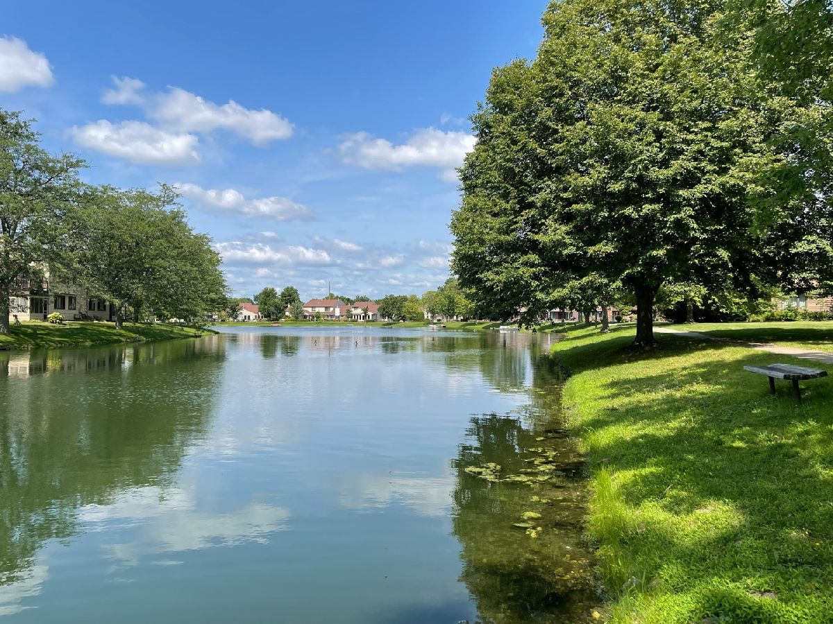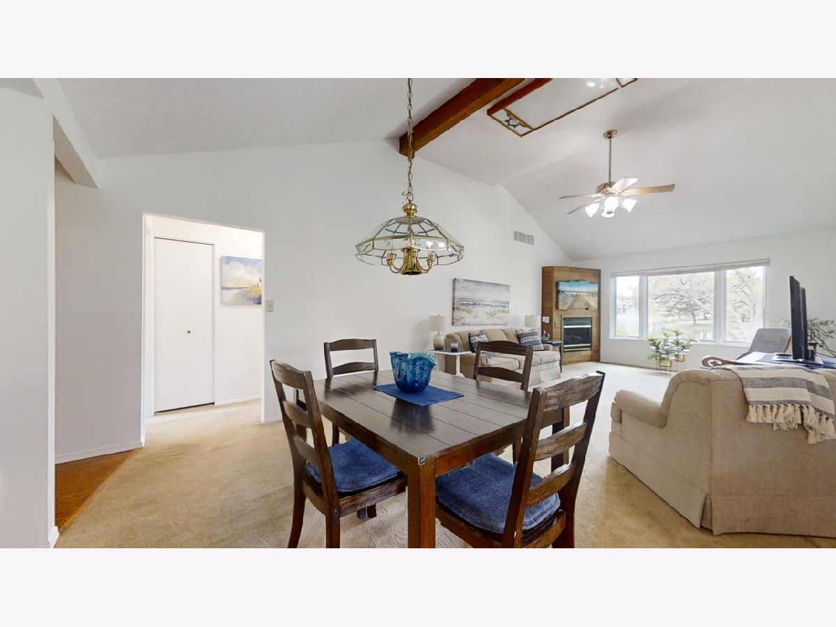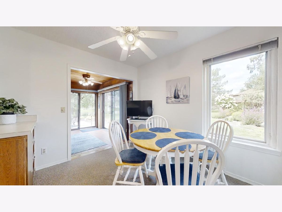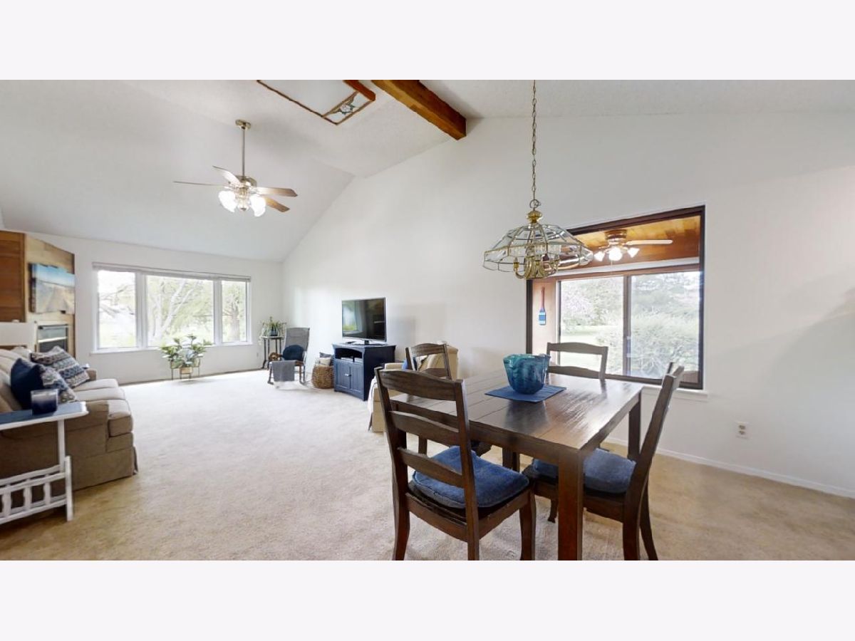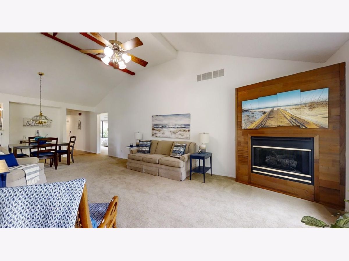 Easy living awaits in this one story zero lot sitting back on a cul-de-sac with multiple water views just off Devonshire Dr in Champaign! A beautifully landscaped path leads inside where you'll discover a spacious living room highlighted by vaulted ceilings and grand fireplace. The galley kitchen open to a breakfast nook and incredible sunroom with spectacular views. The primary bedrooms offers another water view plus a private half bath. A second bedroom and full bath complete the tour. Enjoy the gorgeous sunshine and peaceful water out on the back patio!