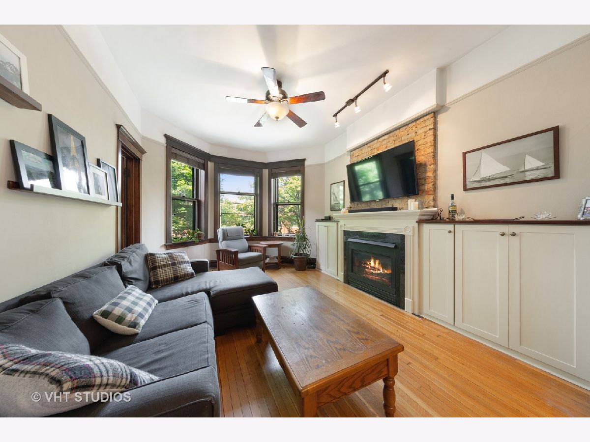 Rare 3 bed/1.5 bath greystone condo with exclusive rooftop right available in highly sought after Ravenswood/Lakeview. This condo offers 3 bedrooms PLUS a sunroom/office. This home is the perfect blend of classic vintage greystone character and modern updates for today's living. The spacious living room features hardwood floors, huge bay windows, exposed brick, remote control gas fireplace, custom built-in bookshelves and leads into the dining room for plenty of living and entertaining space. The kitchen was updated and includes custom white cabinetry, Bosch stainless steel appliances, in-unit laundry, granite counters, and subway tile backsplash. The kitchen opens up to the sunroom providing a sun-drenched oasis making this the perfect space to enjoy your morning coffee or to create your office space. All three bedrooms have ample closet space, rare for a greystone. Shared basement includes private walk-in storage along with an additional washer dryer belonging to this unit. Backyard space is shared and the perfect size for entertaining! This intimate 2-unit building is ideally located on tree-lined Belle Plaine Avenue, with Ravenswood School only a couple blocks away. A short walk from the CTA Brown Line, Starbucks around the corner, close to Wrigley, the shops on Southport, and the breweries in Ravenswood. This unit has EXCLUSIVE ROOFTOP RIGHTS! Build additional garden space, rooftop patio and living space and make this truly feel like a SFH! CENTRAL A/C
