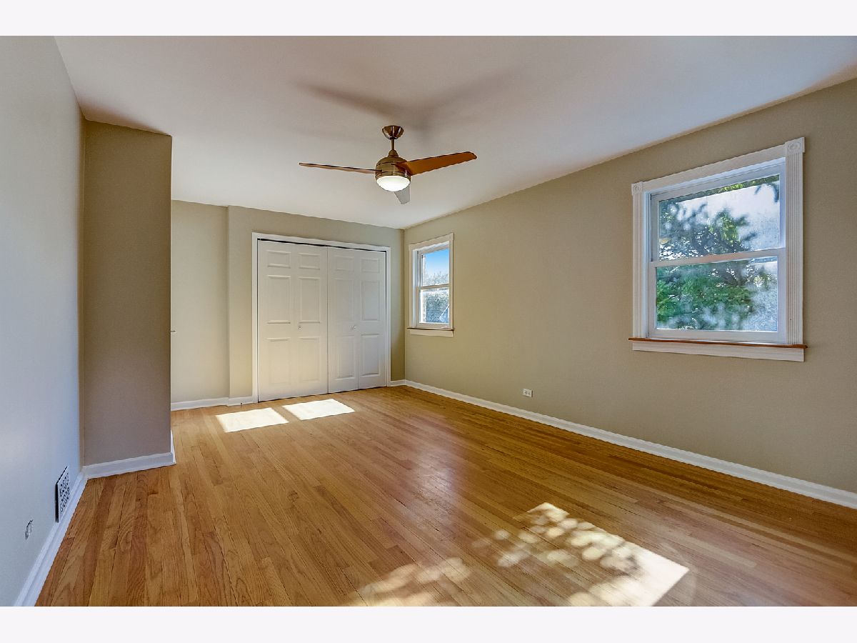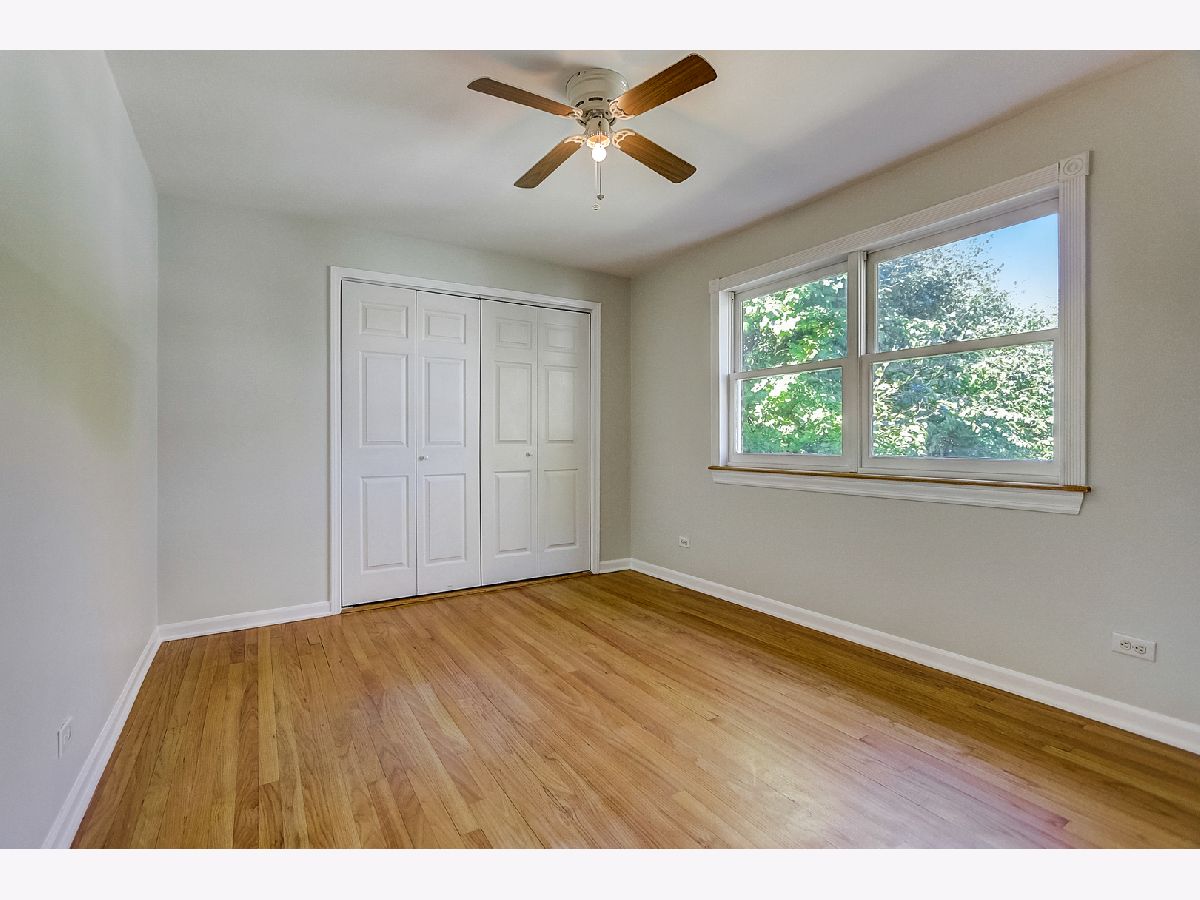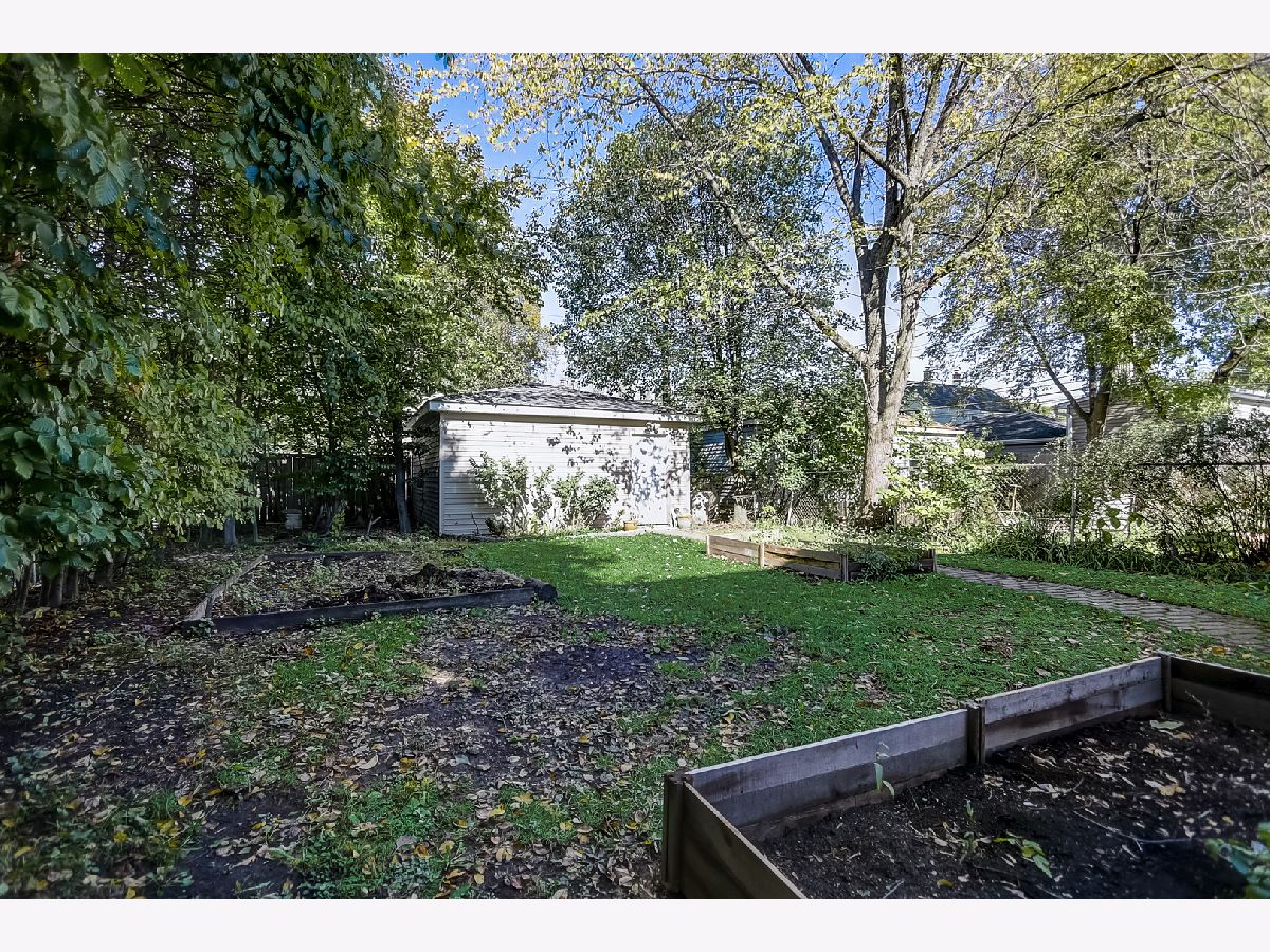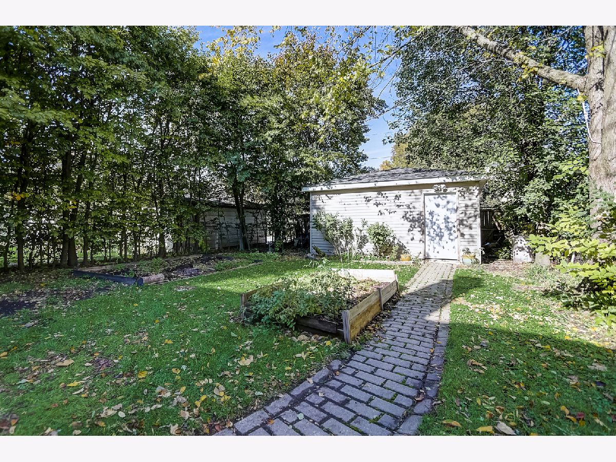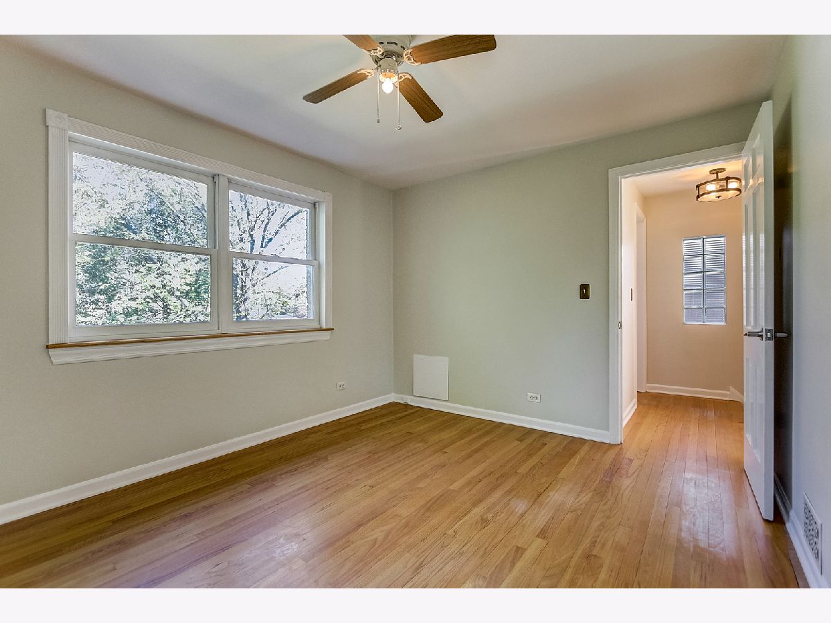 Light and bright, this brick Georgian features hardwood floors, classic trim, and original interior doors. Updated kitchen with newer stainless steel appliances and breakfast bar that opens to the sunny dining room overlooking the wooded backyard. 2 bedrooms upstairs feature ceiling fans, oversized closets with built-in wooden organizers, and tree-top views. Shared bathroom on the second floor. The finished basement consists of a family room that can easily be converted to a third bedroom, a full bathroom, laundry, and large storage room. This home has a flood control drain tile system (transferable for the life of the new owner) plus a sump pump for added protection. Ample storage on each floor. Additional upgrades include new roof and gutters (2021), new kitchen tile (2021), newer furnace (2017), and tasteful, fresh paint throughout the home. Private fully fenced backyard with perennials, flowering bushes and trees (including magnolia and forsythia), vegetable plots, and a 2-car garage off the alley. Ideal location within walking distance of great schools, shopping, transit and parks. Perfect as a condo alternative with expansive outdoor entertaining or family space. Welcome home!