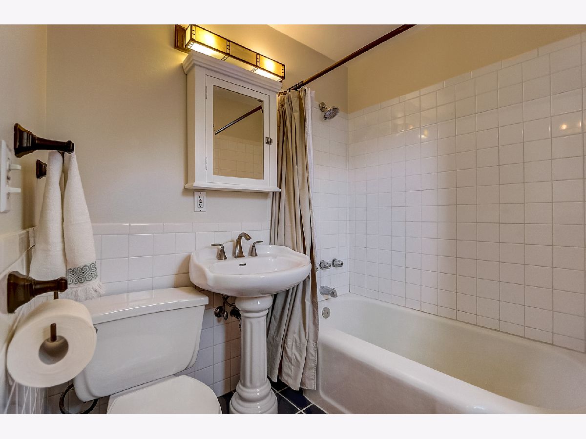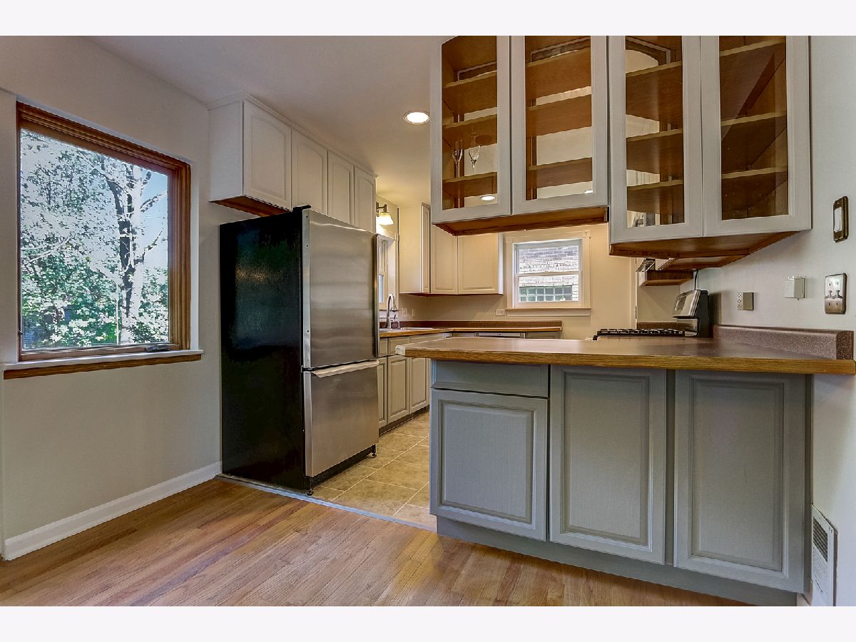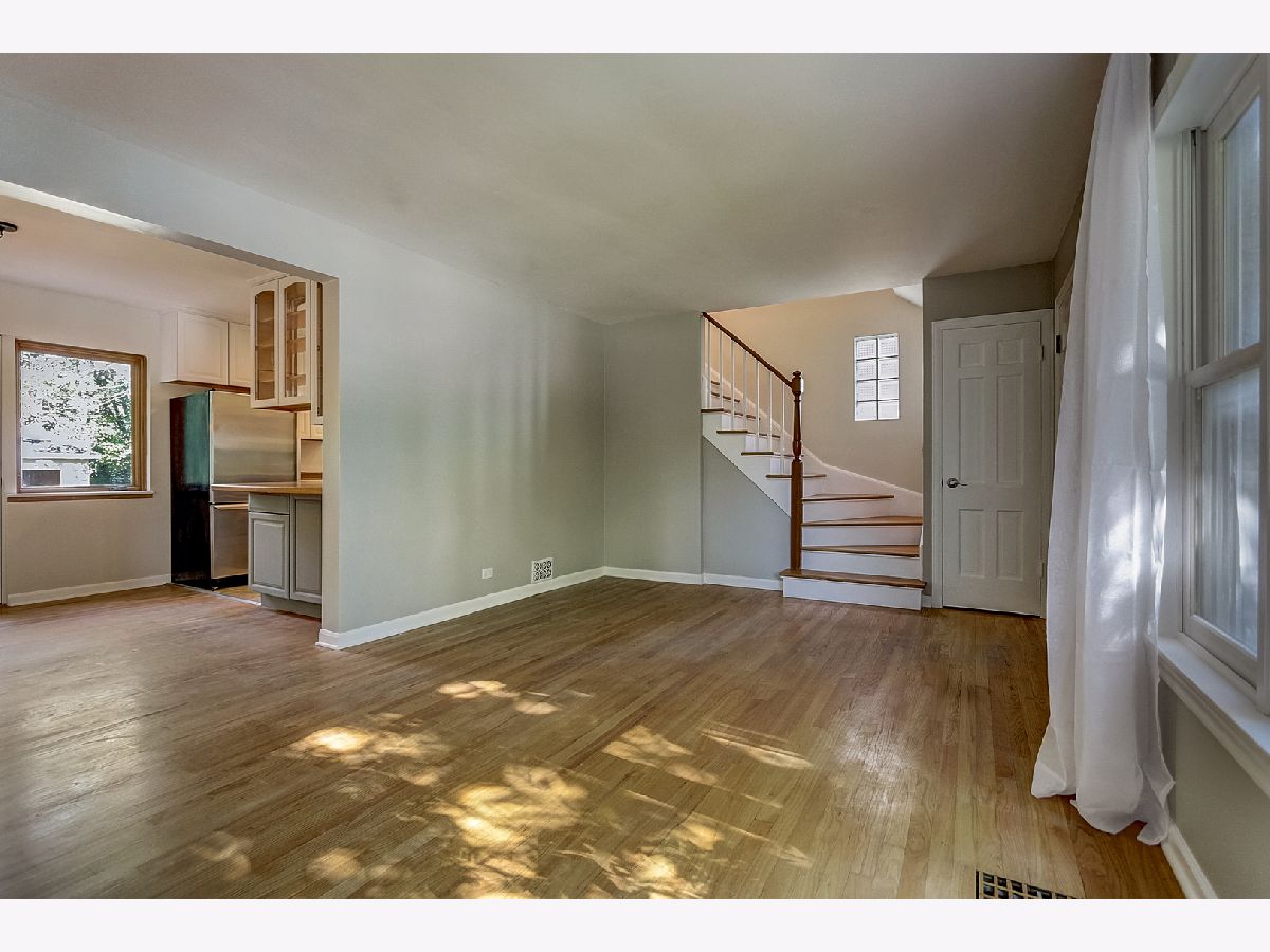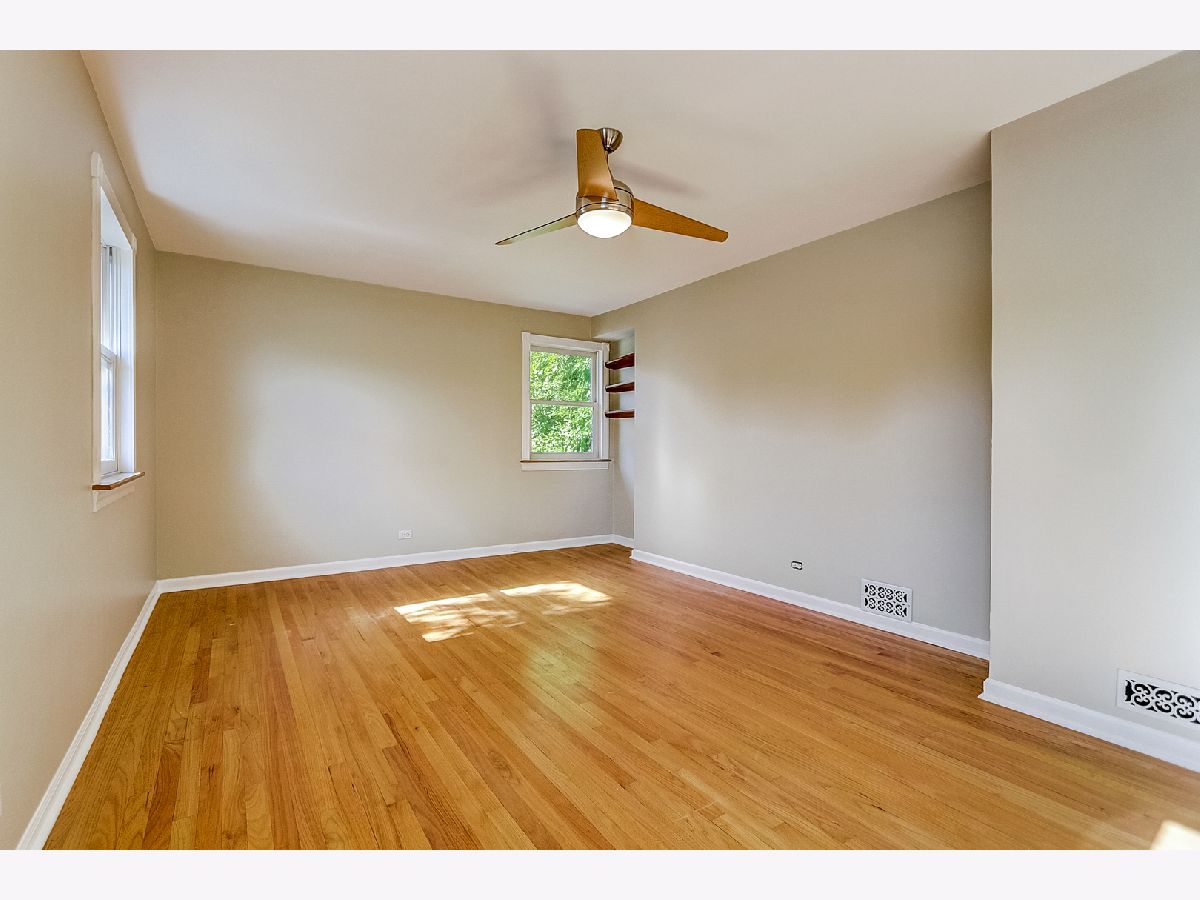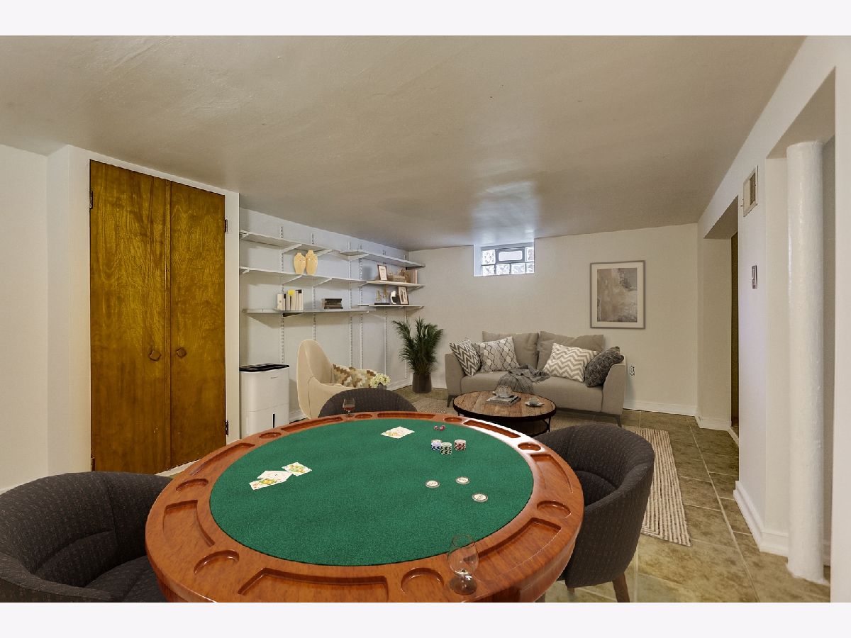 Light and bright, this brick Georgian features hardwood floors, classic trim, and original interior doors. Updated kitchen with newer stainless steel appliances and breakfast bar that opens to the sunny dining room overlooking the wooded backyard. 2 bedrooms upstairs feature ceiling fans, oversized closets with built-in wooden organizers, and tree-top views. Shared bathroom on the second floor. The finished basement consists of a family room that can easily be converted to a third bedroom, a full bathroom, laundry, and large storage room. This home has a flood control drain tile system (transferable for the life of the new owner) plus a sump pump for added protection. Ample storage on each floor. Additional upgrades include new roof and gutters (2021), new kitchen tile (2021), newer furnace (2017), and tasteful, fresh paint throughout the home. Private fully fenced backyard with perennials, flowering bushes and trees (including magnolia and forsythia), vegetable plots, and a 2-car garage off the alley. Ideal location within walking distance of great schools, shopping, transit and parks. Perfect as a condo alternative with expansive outdoor entertaining or family space. Welcome home!