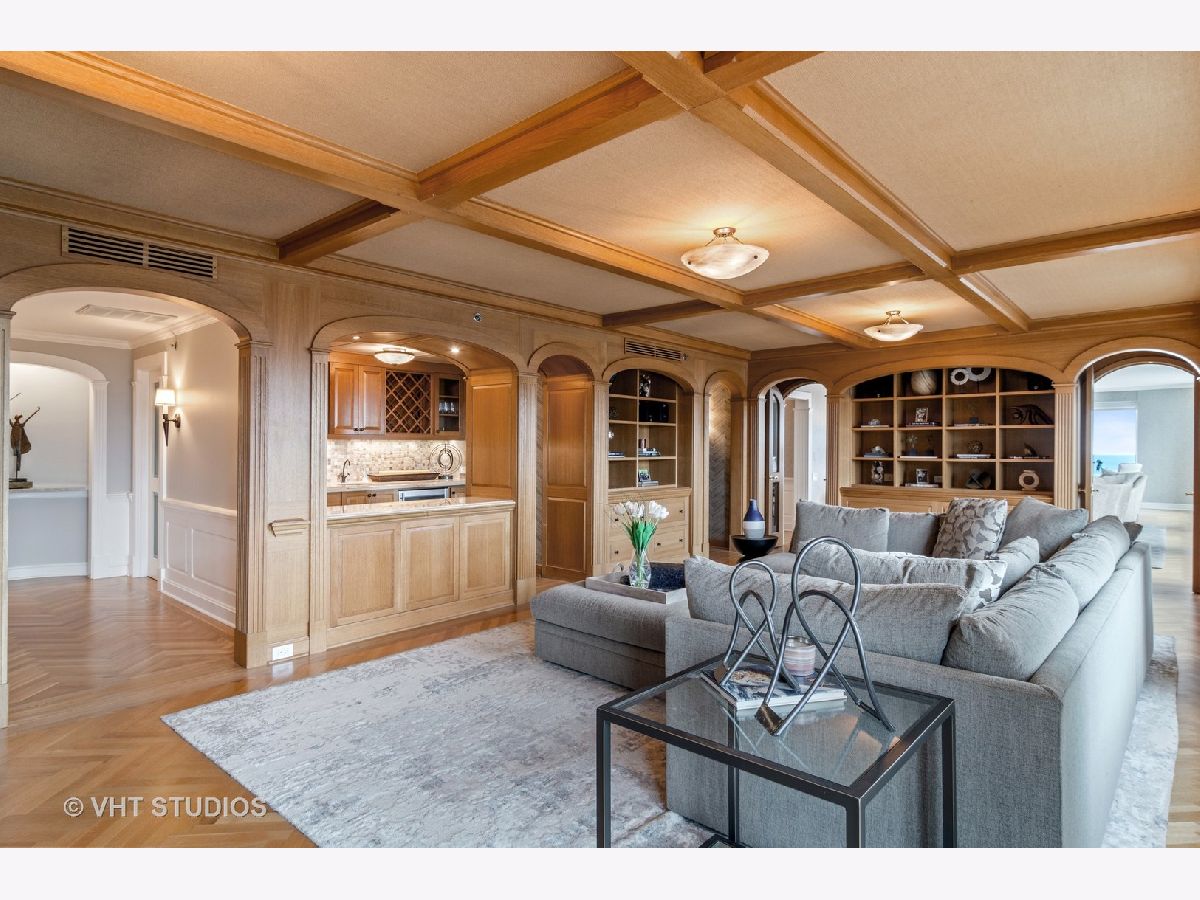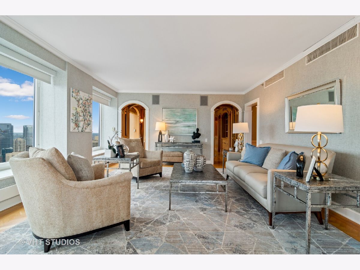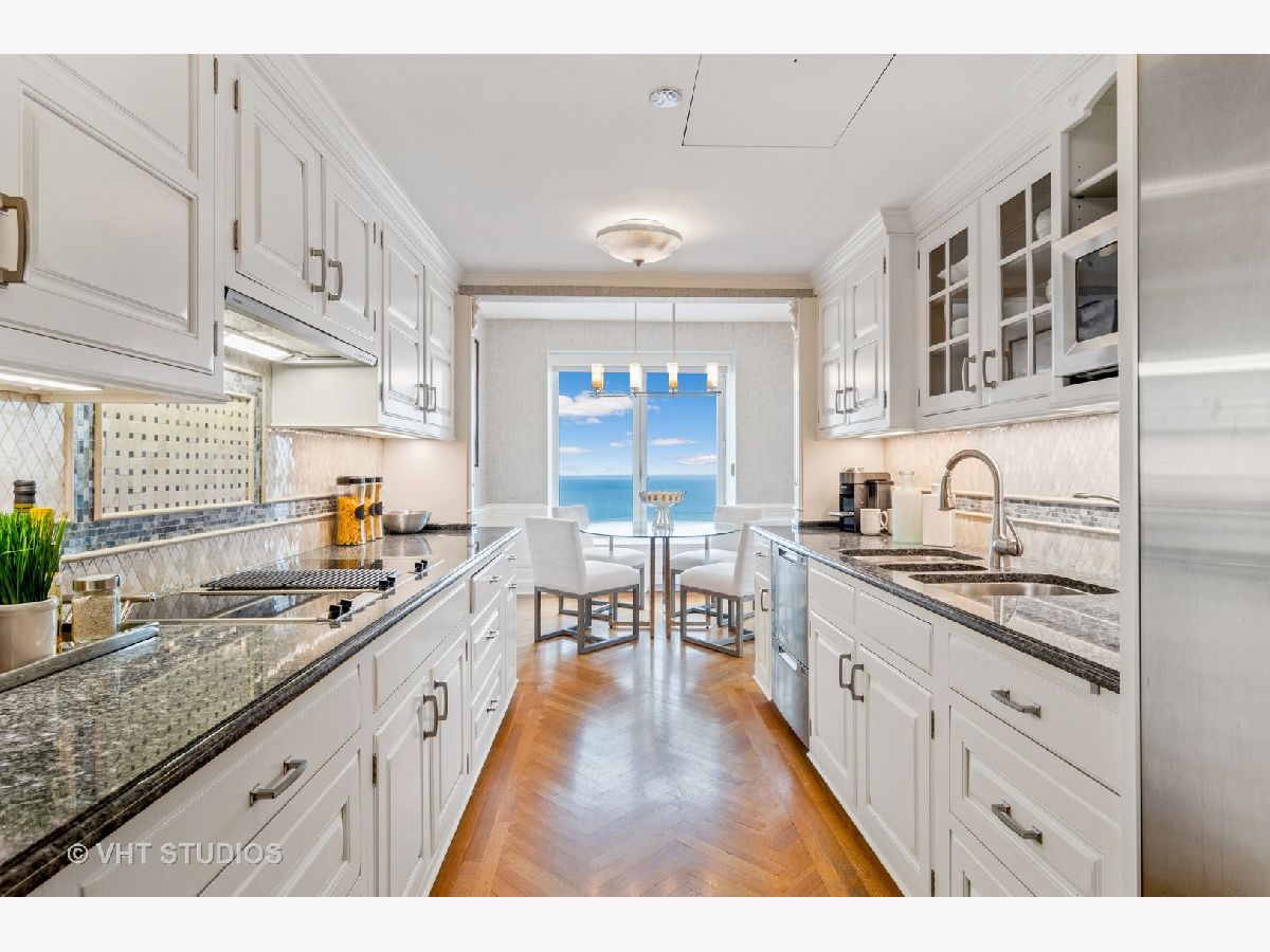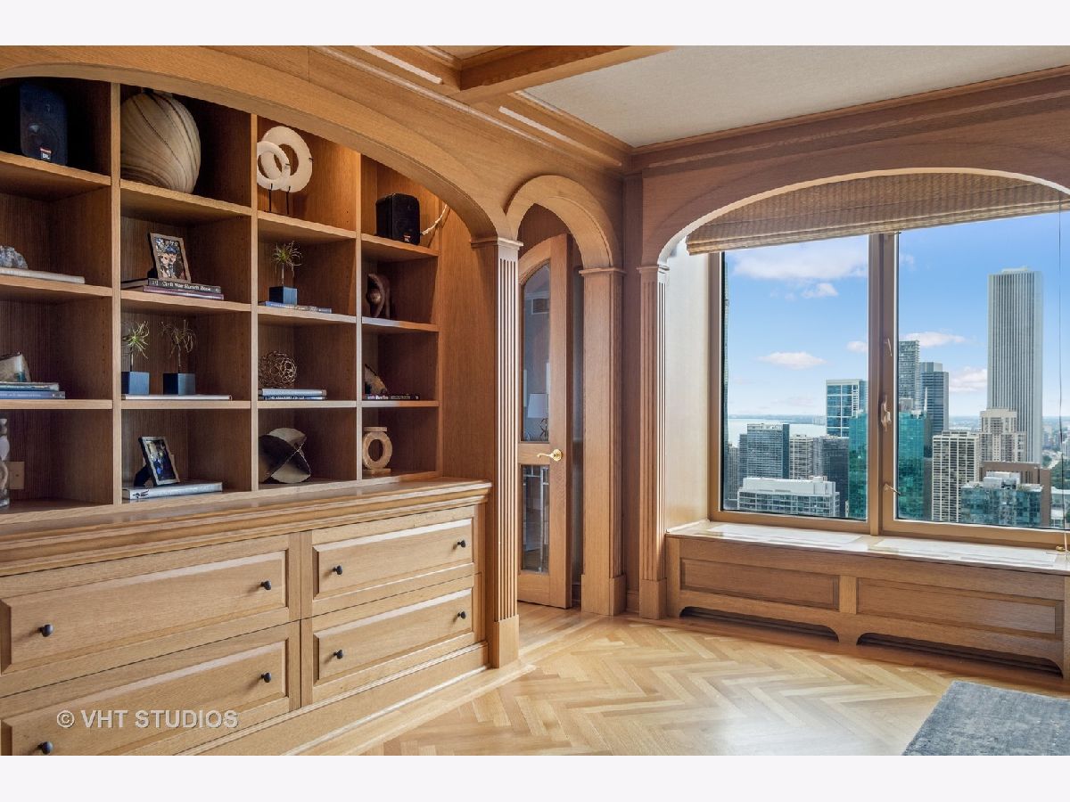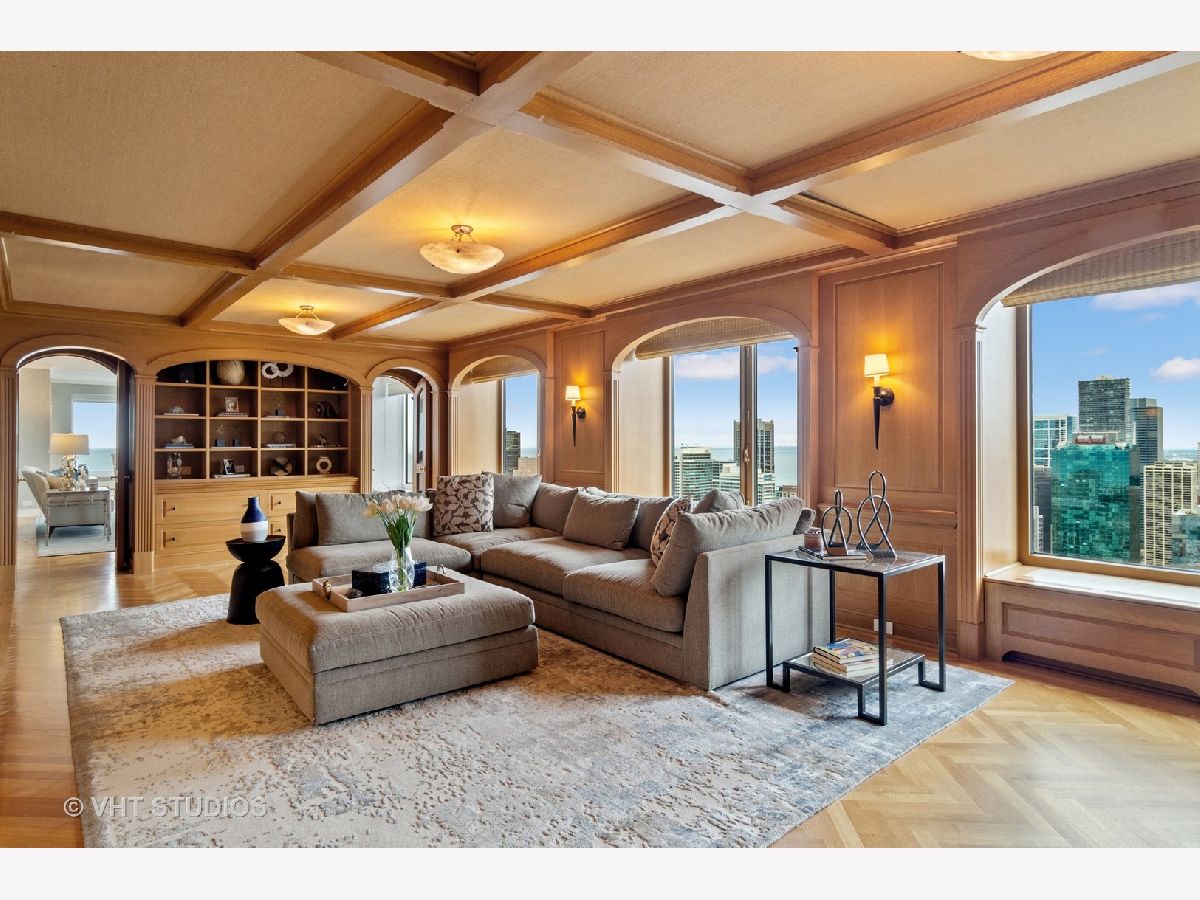 LIVES LIKE AN EXPANSIVE SFH PERCHED ON THE 48tH FLOOR! Views Views Views from EVERY WINDOW, lake skyline park! Prime South East CORNER loaded with sunlight! Thoughtfully laid out with split bedroom floor plan, every bedroom with en-suite bathrooms! STUNNING CUSTOM PANELED FAMILY ROOM with a full wet bar! Extensive millwork throughout, herringbone floors, arched doorways, frosted glass doors! Stunning classic kitchen with Gaggenau, Miele and an ensuite breakfast room with views!! TONS OF STORAGE throughout!