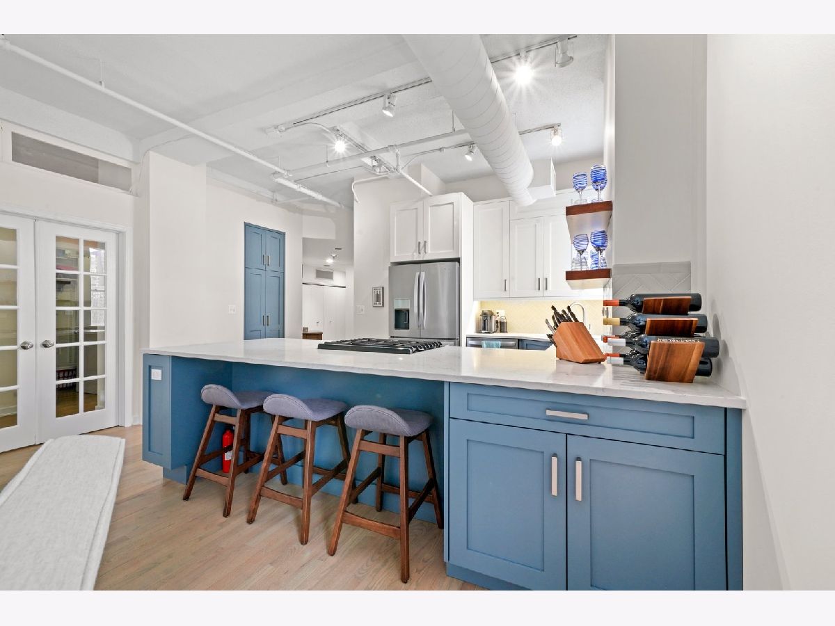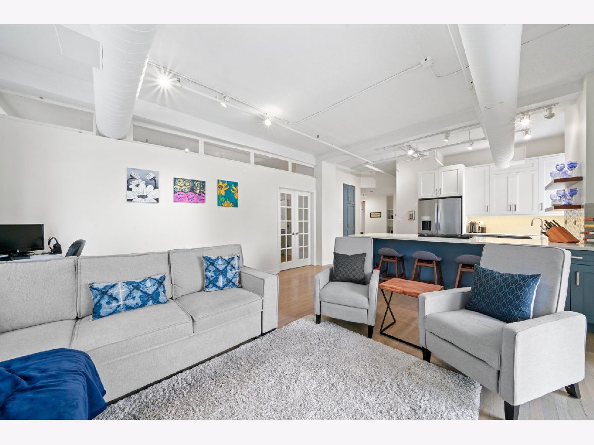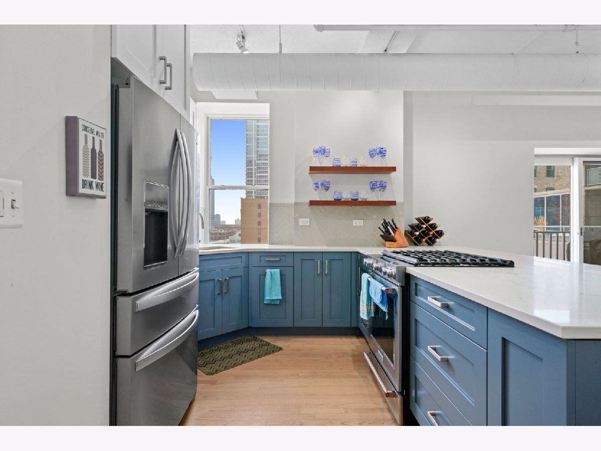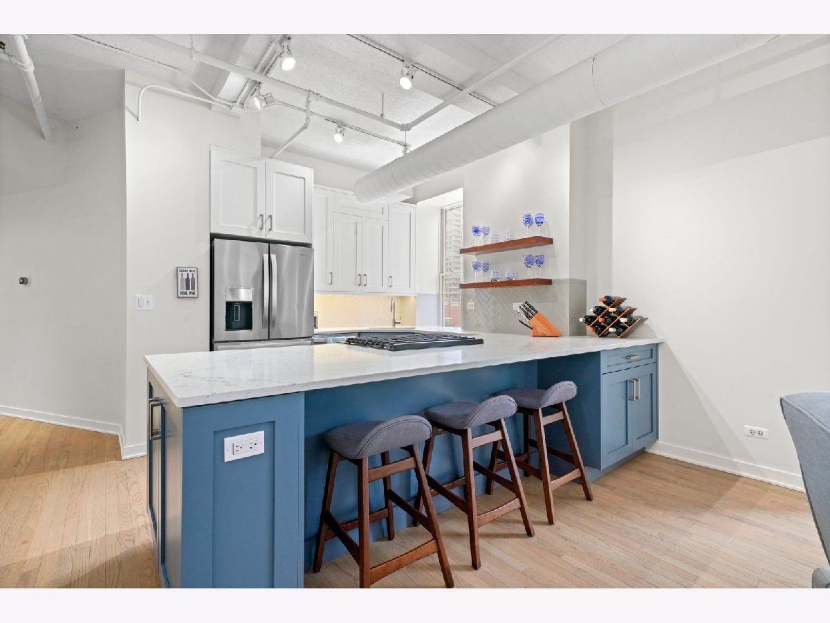 Take a 3D Tour, CLICK on the 3D BUTTON & Walk Around. Watch a Custom Drone Video Tour, Click on Video Button! This modern & sleek 2 bed/2 bath soft loft will check all your move in ready boxes located in the heart of South Loop. Beautiful, newly remodeled kitchen will inspire your inner chef clad with quartz countertops, custom cabinetry, premium stainless steel appliances, and expansive island. The open concept living room is ideal for entertaining complete with soaring ceiling, hardwood floors, and oversized windows that flood the space with natural light. BONUS private balcony with fabulous city views is great for relaxing in the warmer months. Retreat to your expansive master suite featuring customized walk in closet and en-suite spa like bath with dual vanity and separate shower with bench. The generous sized enclosed 2nd bedroom can be used for a guest room, home office, or personal gym. Other highlights include new HVAC, in unit washer/dryer, and additional storage. One garage parking space for $35,000 extra. Well managed building with friendly door staff, bike room, party room, and beautiful common roof deck with grill! Spectacular location and steps from the riverwalk, dog park, multiple forms of public transportation, expressways, restaurants, nightlife, and more!