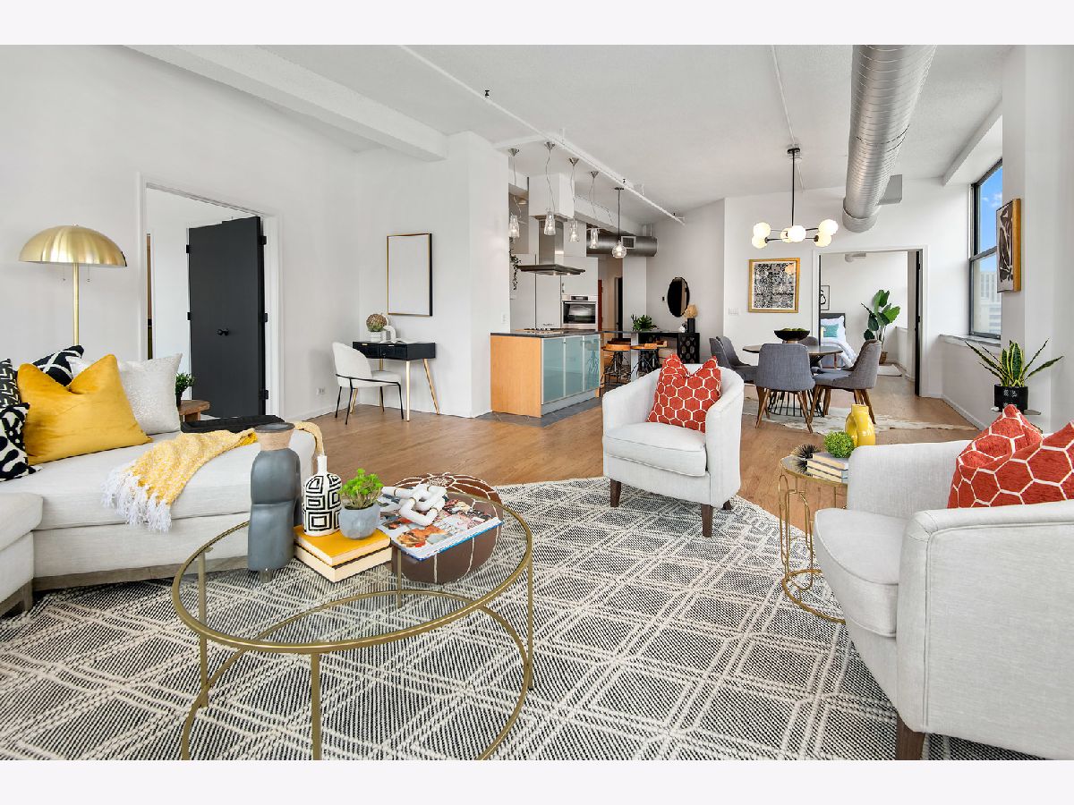 THIS COULD QUITE POSSIBLY BE THE COOLEST LOFT IN THE CITY OF CHICAGO! LOCATED IN A PREMIER, PROFESSIONALLY MANAGED BUILDING IN THE HEART OF PRINTER'S ROW, THIS QUIET, 1570 SQ FT, BEAUTIFULLY UPGRADED & RECENTLY RENOVATED CORNER UNIT BOASTS HIGH CEILINGS, HUGE WINDOWS & STUNNING PANORAMIC CITY VIEWS. ENTER INTO A 8' X 5' FOYER W/ A COAT CLOSET & WALK-IN LAUNDRY RM W/ EXCELLENT STORAGE. FABULOUS PROFESSIONAL GRADE GOURMET KITCHEN OFFERS TOP-OF-THE-LINE STAINLESS STEEL APPLIANCES, GRANITE COUTERTOPS, CUSTOM BACKSPASH, ABUNDANT CABINETS & BREAKFAST BAR. THE KITCHEN OPENS INTO A DINING RM THAT CAN EASILY ACCOMMODATE A LARGE TABLE & A HUGE SUN-FILLED LIVING RM IDEAL FOR FAMILY LIVING & ENTERTAINING. BOTH BR'S ARE VERY LARGE, FULLY ENCLOSED & ENSUITE. THE DESIGNER BTH IN THE 2ND BR THOUGHTFULLY ACCESSES THE FOYER & DOUBLES AS A POWDER RM TUCKED AWAY FROM THE MAIN LIVING AREA. THE LUXURIOUS PRIMARY SUITE FEATURES A 7' X 5' WALK-IN CLOSET & SPACIOUS SPA BTH W/ TWO SEPARATE VANITIES, LARGE SOAKING TUB & SEPARATE WALK-IN SHOWER. CUSTOM PAINT, WINDOW TREATMENTS & NEW DESIGNER LIGHTING THROUGHOUT. GORGEOUS, NEW HARDWOOD FLOORS. LARGE PRIVATE WALK-IN STORAGE UNIT. BUILDING FEATURES DOOR PERSON, BIKE RM & ROOF TOP SUNDECK W/ TREX DECKING & SKYLINE VIEWS. MONTHLY ASSESSMENTS ARE VERY REASONABLE WHEN YOU TAKE INTO CONSIDERATION THAT THEY INCLUDE INDIVIDUALLY CONTROLLED GAS FORCED AIR HEAT/CENTRAL AIR, COOKING GAS, WATER, WI-FI & CABLE -- ALL YOU PAY IS AN ELECTRIC BILL. UNBEATABLE LOCATION STEPS TO THE LAKE, THE BIKE PATH, THE "L", MUSEUMS, RESTAURANTS, CAFES, COFFEE SHOPS, BOUTIQUES, GROCERIES, PARKS, HEALTH CLUBS & ALL THAT THE CITY HAS TO OFFER. DEEDED PARKING IN THE ATTACHED, HEATED GARAGE IS AVAILABLE FOR $30,000.