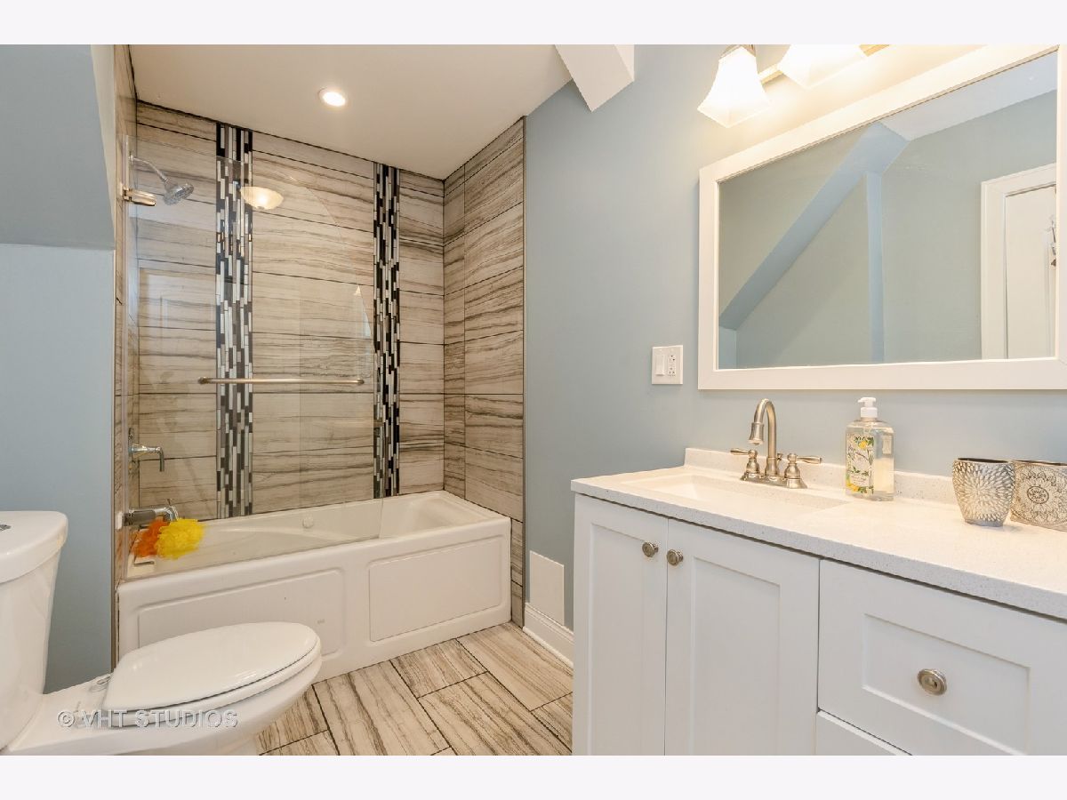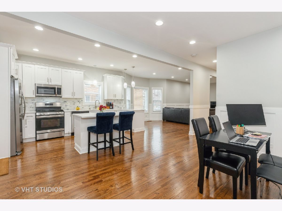 Beautiful, fully renovated home awaits! Upon entering the front door, you're greeted by an enclosed interior porch, a perfect space for extended living. This 3-story home boasts a spacious open concept first floor, which includes a living area, dining space, office/flex space, large kitchen and a full bathroom. The kitchen features an island and a peninsula, 42 inch cabinets, quartz countertops, marble subway backsplash and stainless steel appliances. Hardwood flooring throughout the first floor. The second level has three large bedrooms and 1 full bath along with a laundry room. The primary suite sits atop the home on the 3rd level, the full bathroom includes a dual vanity. The finished, lower level also has a full bathroom and additional laundry hook-up, offering a 2nd laundry location. Rear deck and fenced yard space along with a 2 car garage. Easy access to public transit.
