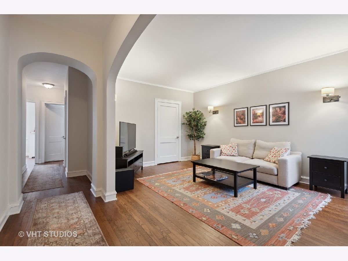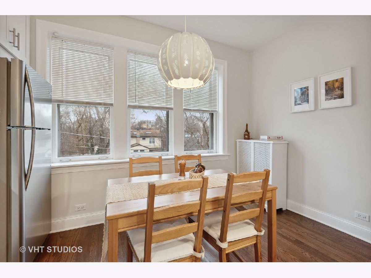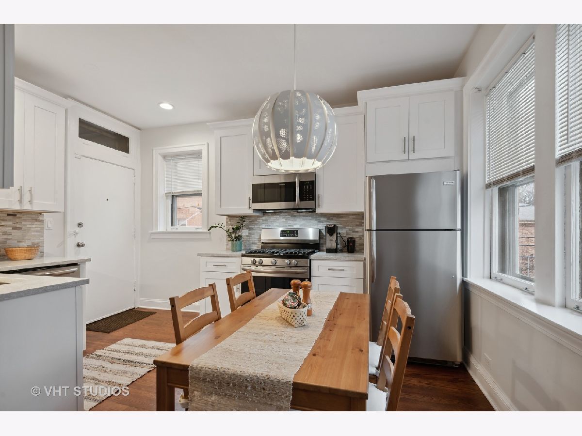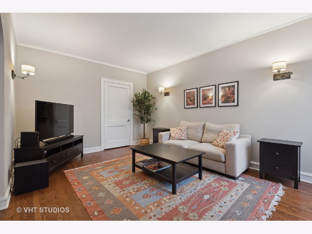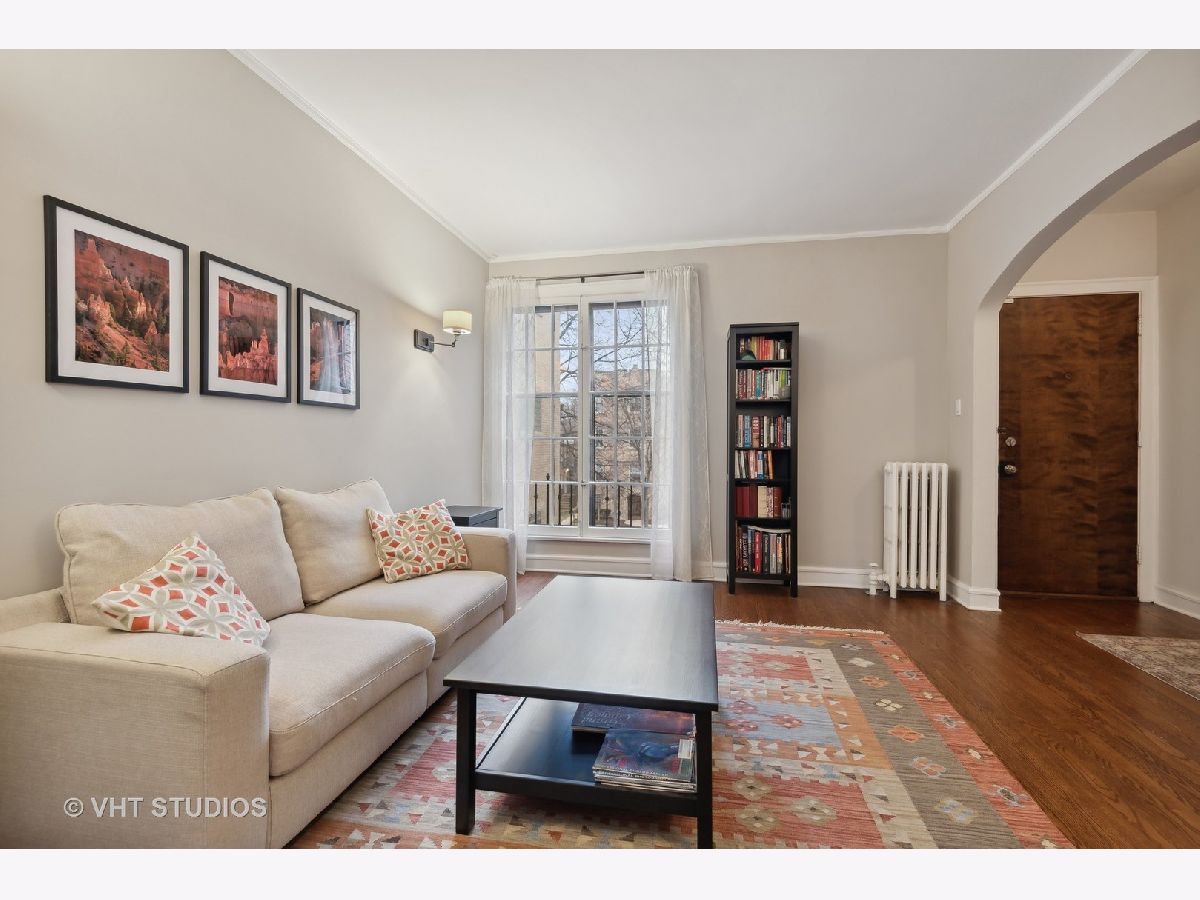 Welcome to this idyllic setting, blocks from the New 2020 built Robert Crown Community Center, which features an Evanston public library branch and a multi-sports/ice arena. Located on a wide, one-way (East) treelined street, comes the perfect oasis of classically restored vintage coziness. Meticulously renovated for the homeowners' own use, with renovation and expansion of former studio sized kitchen. Permit pulled for kitchen remodeling bringing the kitchen electrical and plumbing systems up to code, including adding additional circuits for the appliances and replacing an electrical box. The kitchen renovation includes addition of dishwasher, new white cabinets, stainless appliances, lighting, countertops, and backsplash. Very tastefully done. The bathroom has been renovated as well. Dark walnut stained flooring and entire place repainted and walls repaired where needed with plaster. Drywall used to accommodate the kitchen build out. Charming features to enjoy in this home are a spacious living room accented with sconces. Beautiful floor to ceiling vintage casement window in living room, allows courtyard breezes and unrivaled views. Revised eat-in dining area seamlessly flows into your new open kitchen layout. Vintage details include hardwood floors, crown molding, and two arched doorways, detailed wood trim and wall sconces. New door lever hardware, original windows revised to function accordingly. Truly nothing to do but pack up and move in! LOW taxes. Assessments cover heat and water. Laundry and extra storage on site. Intimate 10-unit building. Pet friendly building with 100% occupancy. Amazing location -Metra and "el" trains, parks, and vibrant Main St. shopping/ dining area.