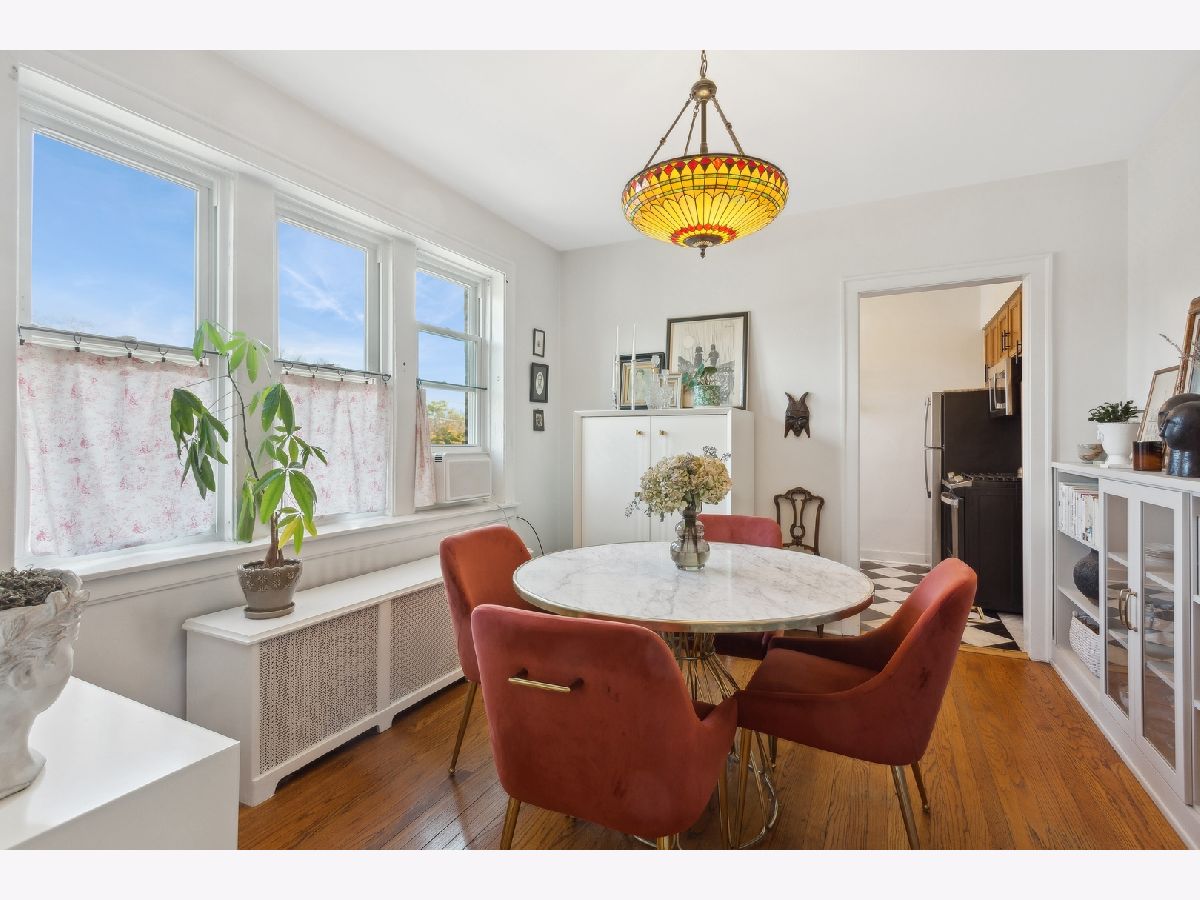 Enjoy tree-top views from this spacious top-floor condo. East, west and northern exposures provide plenty of natural light. No shared walls with neighbors will ensure extra privacy. This beautiful vintage, intimate 10-unit brick building is just a few blocks from the new Crown Community Center featuring a library, fitness center, ice skating rink and much more. Close to Northwestern University, downtown Evanston, Starbucks and a variety of stores. Beautiful hardwood floors, tall ceilings and elegant vintage details throughout. Walk-in closet off front foyer is customized by California closets and provides maximum usage. Newer Frigidaire stove, range hood and refrigerator. Bathtub re-glazed in 2020. Clean and quiet radiator heat is included in monthly assessment. Small back porch ledge for summer plants. Newer Smoke/CO detector, 10 yr. warranty. Brand new free community washers and dryers -- so well executed. Easy street parking. Self-managed building. (NO INVESTORS, RENTAL RESTRICTIONS).