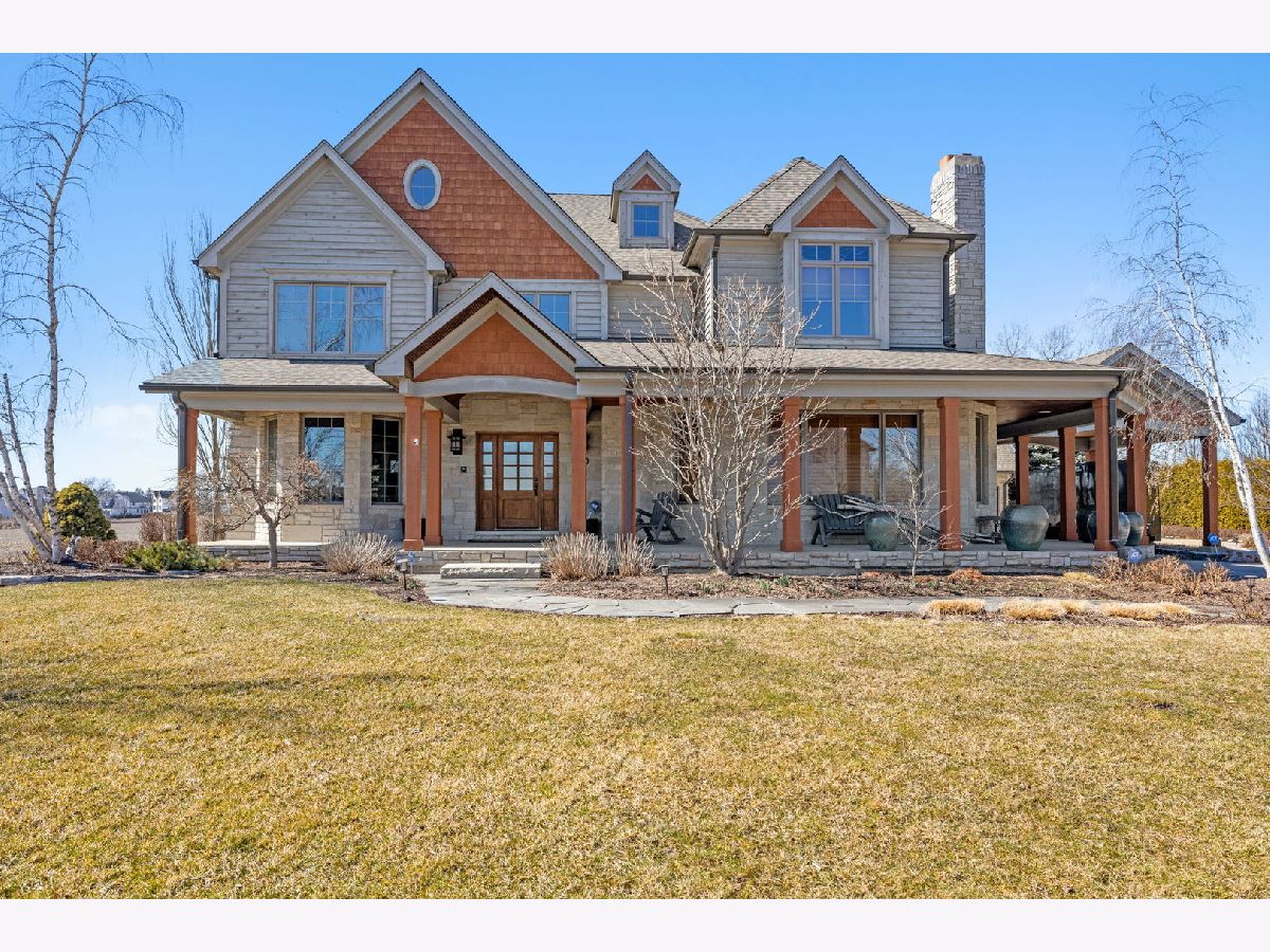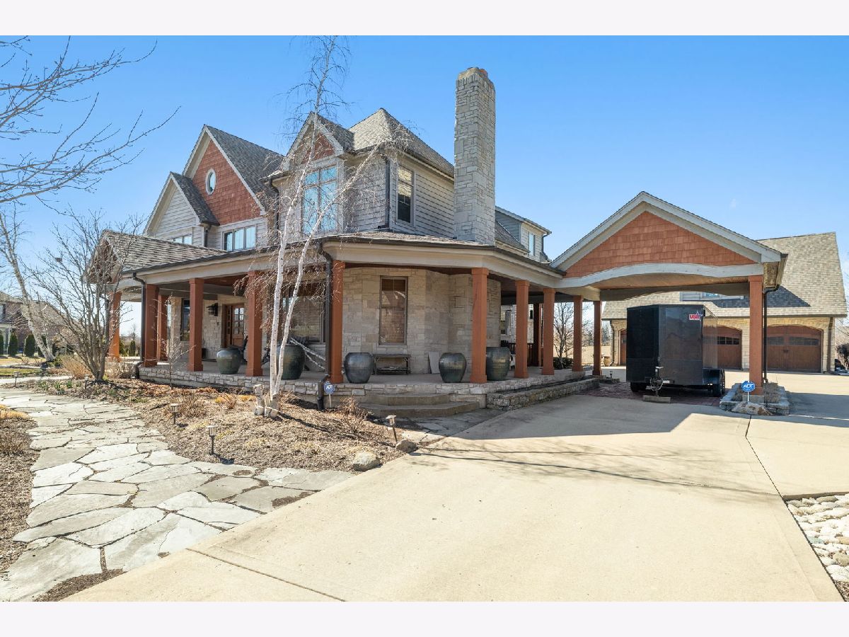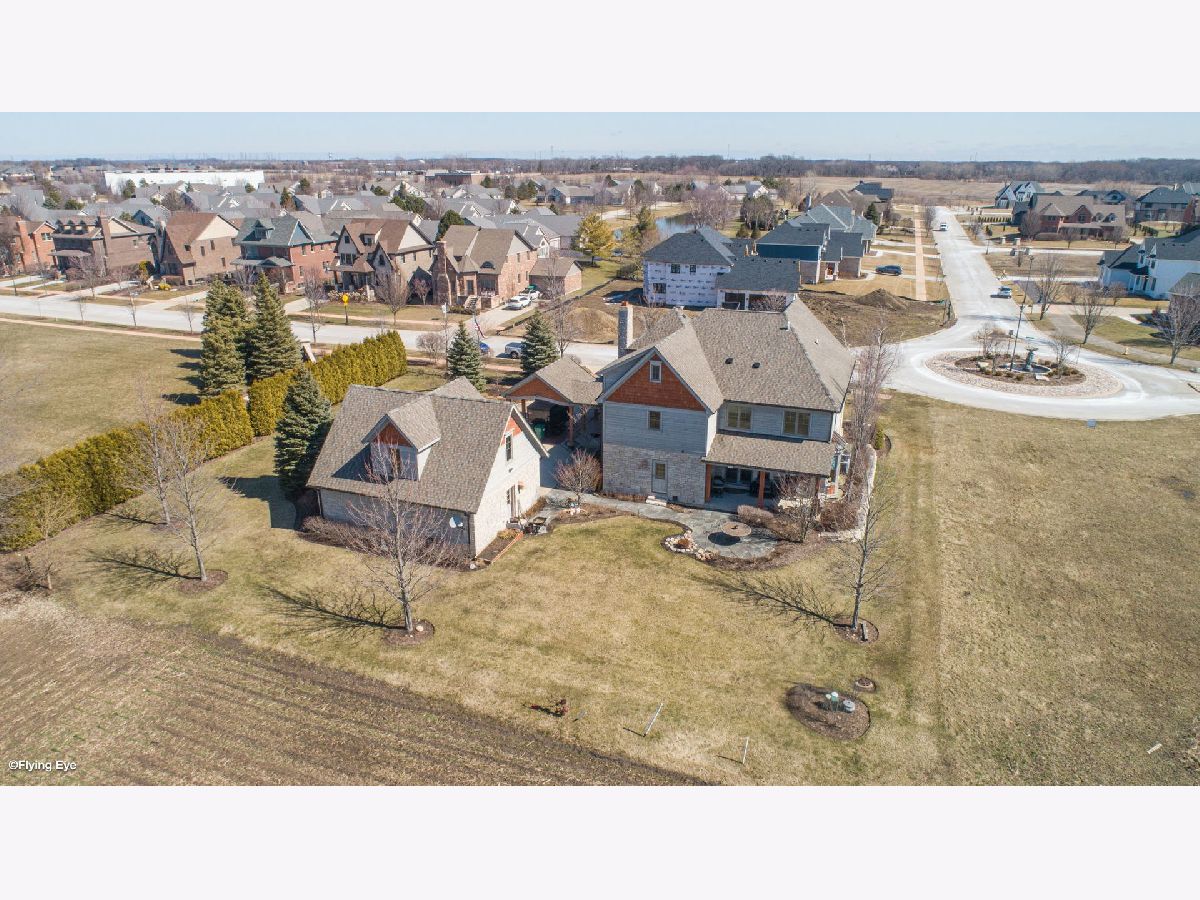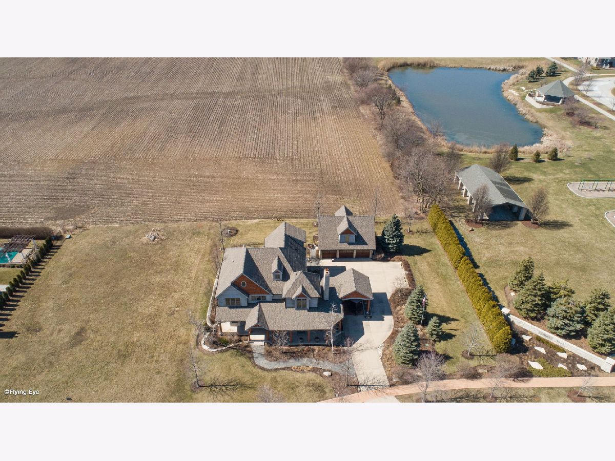 On over half an acre of resort like property sits this custom designed, one of a kind, 3 story home in the private subdivision of Evlyn's Gate. Constructed in every way with extreme attention to detail, this 4 bedroom / 5 bathroom home truly stands alone. Enjoy mornings and evenings under the expansive wrap around front porch or covered, west facing back porch. Interior details include 9 foot volume ceilings, oversized trim and baseboards, Alderwood floors, surround sound throughout. Entertain your guests at your custom designed bar within the great room, complete with custom commercial grade beverage equipment and kegerator included with the home. HUGE gourmet chef's kitchen includes a Wolf range top, stainless steel double ovens, walk in pantry and cherry cabinets. Adjacent to the kitchen is a perfectly placed, south and west facing sunroom. There's also a study, a beautifully appointed formal dining room and two half baths on the main level. Upstairs you'll find the primary suite which includes a large bedroom with volume ceiling, 2 generously sized walk in closets with custom built closet organizing systems and a private bathroom with dual sinks, extra large shower and sunk in, jetted bath. Bedrooms 2 and 3 also have walk in closets and share a jack and jill bathroom. Bedroom 4 is a private suite that includes a full bathroom and walk in closet. The laundry room is also located on the second floor. Bring your ideas up another flight of stairs where you'll find a great space that can be used as a large home office, recreation room or additional private suite. The basement is an entertainers dream. Waiting for your finishing touches is an extra deep 2,200+ sq ft basement with second exterior stairway. There are 10 foot ceilings, plenty of natural daylight and radiating heat throughout. The full bathroom is already framed. The basement is also home to a large wine cellar, waiting for your final ideas to make your own. The 3.5 garage is heated and upstairs you'll find a large space that could be ideal for related living. The backyard is very private with a beautiful view of the open farm field. There are 2 A/C's and furnaces zoned for maximum efficiency. The roof is newer from 2017 as well as all windows on the second floor. This neighborhood is truly unique with the multiple fishing ponds, pavilions, and children's park. Excellent location to 355, Silver Cross Hospital and within top rated school districts K-12!!