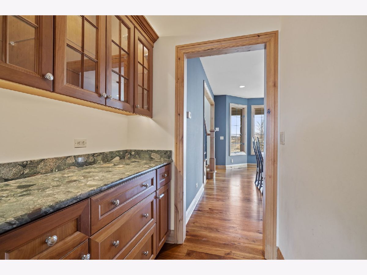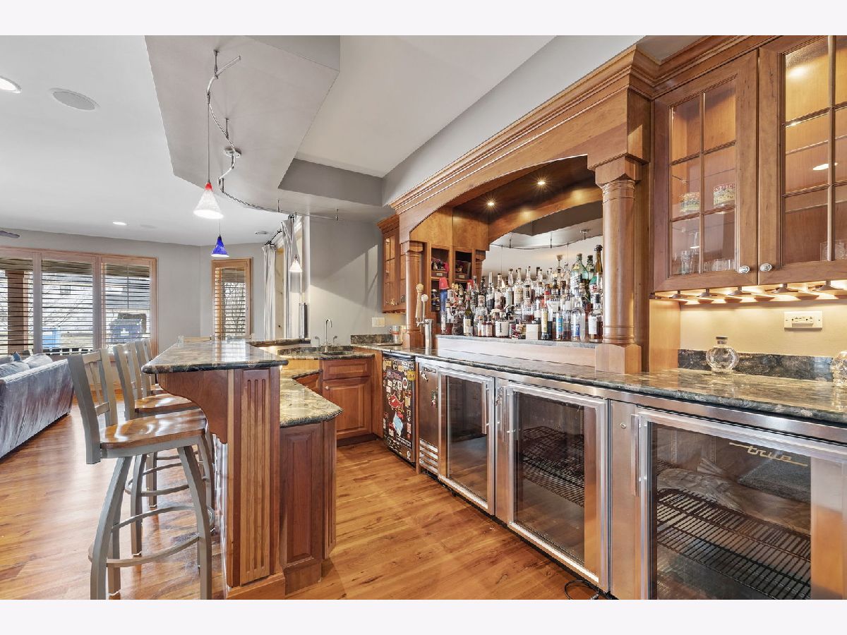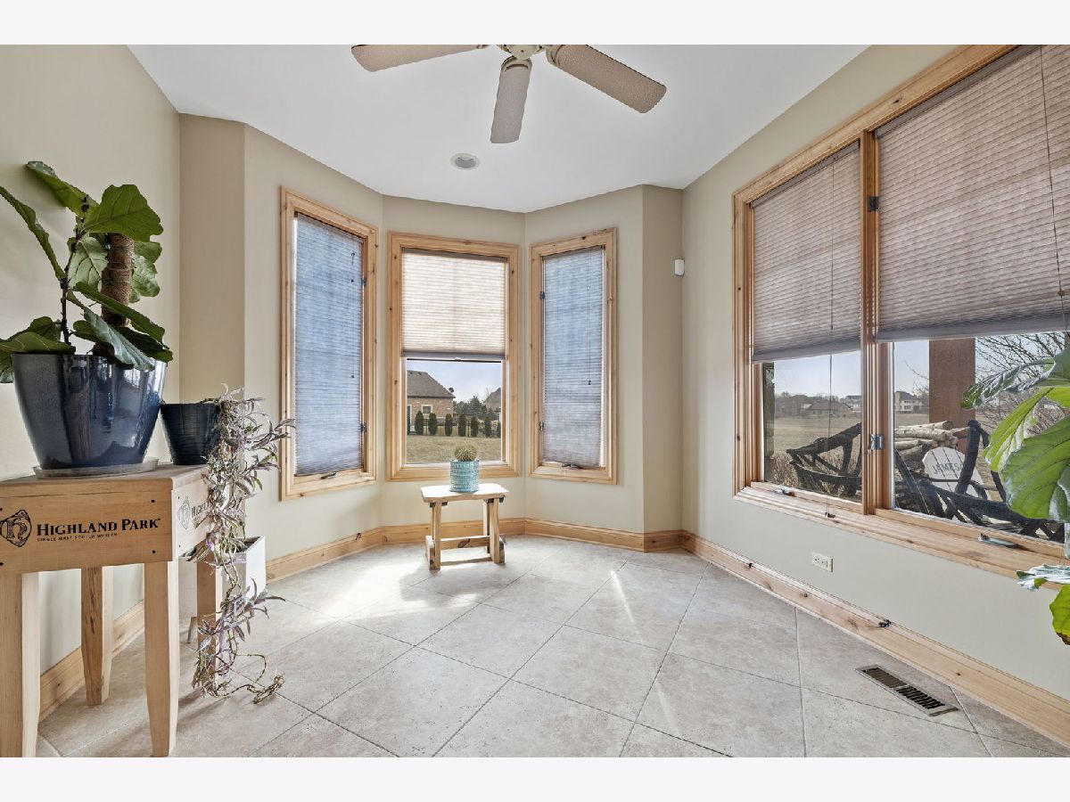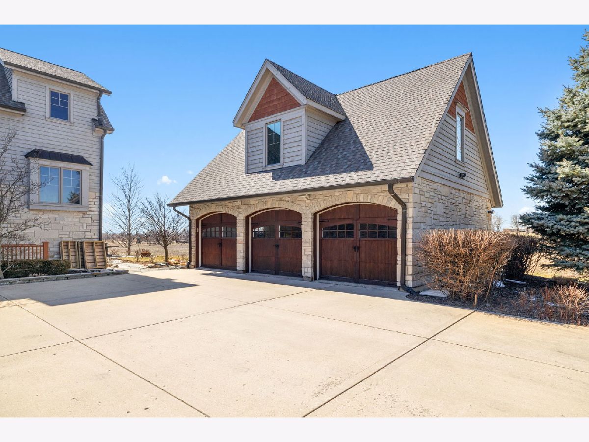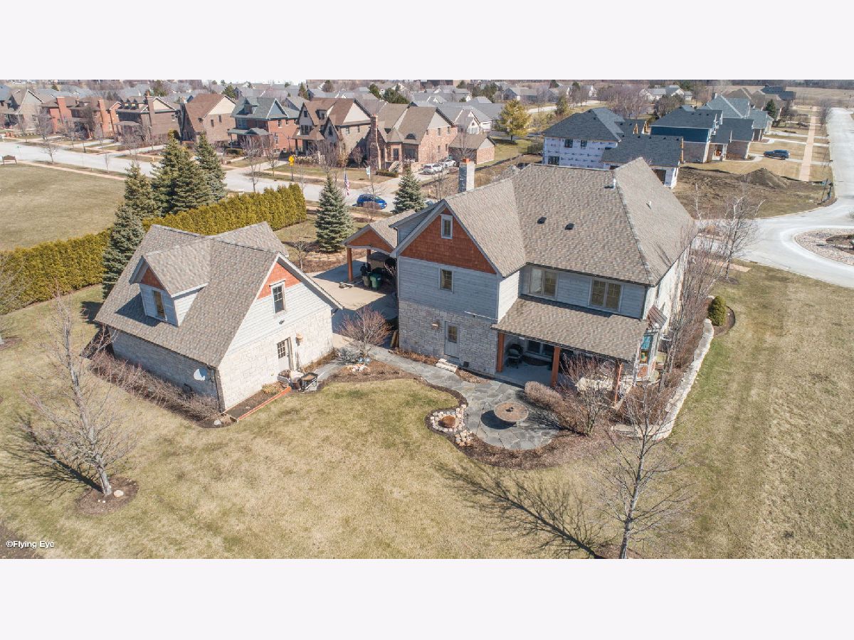 On over half an acre of resort like property sits this custom designed, one of a kind, 3 story home in the private subdivision of Evlyn's Gate. Constructed in every way with extreme attention to detail, this 4 bedroom / 5 bathroom home truly stands alone. Enjoy mornings and evenings under the expansive wrap around front porch or covered, west facing back porch. Interior details include 9 foot volume ceilings, oversized trim and baseboards, Alderwood floors, surround sound throughout. Entertain your guests at your custom designed bar within the great room, complete with custom commercial grade beverage equipment and kegerator included with the home. HUGE gourmet chef's kitchen includes a Wolf range top, stainless steel double ovens, walk in pantry and cherry cabinets. Adjacent to the kitchen is a perfectly placed, south and west facing sunroom. There's also a study, a beautifully appointed formal dining room and two half baths on the main level. Upstairs you'll find the primary suite which includes a large bedroom with volume ceiling, 2 generously sized walk in closets with custom built closet organizing systems and a private bathroom with dual sinks, extra large shower and sunk in, jetted bath. Bedrooms 2 and 3 also have walk in closets and share a jack and jill bathroom. Bedroom 4 is a private suite that includes a full bathroom and walk in closet. The laundry room is also located on the second floor. Bring your ideas up another flight of stairs where you'll find a great space that can be used as a large home office, recreation room or additional private suite. The basement is an entertainers dream. Waiting for your finishing touches is an extra deep 2,200+ sq ft basement with second exterior stairway. There are 10 foot ceilings, plenty of natural daylight and radiating heat throughout. The full bathroom is already framed. The basement is also home to a large wine cellar, waiting for your final ideas to make your own. The 3.5 garage is heated and upstairs you'll find a large space that could be ideal for related living. The backyard is very private with a beautiful view of the open farm field. There are 2 A/C's and furnaces zoned for maximum efficiency. The roof is newer from 2017 as well as all windows on the second floor. This neighborhood is truly unique with the multiple fishing ponds, pavilions, and children's park. Excellent location to 355, Silver Cross Hospital and within top rated school districts K-12!!